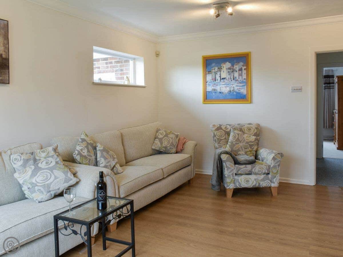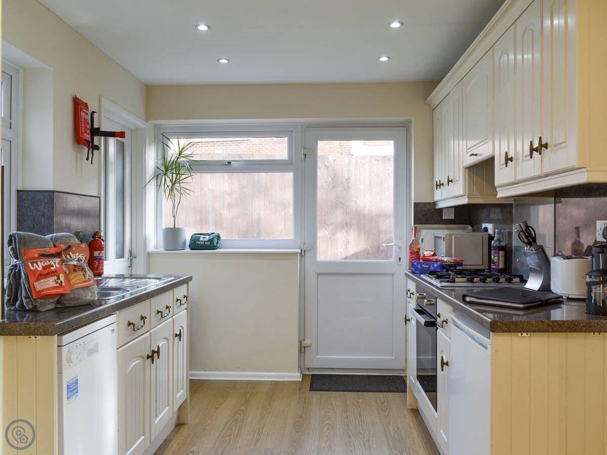 Inside, the main living room is a good size with a sofa and a big beanbag. There's a Smart TV. Through there is the open plan kitchen and dining area, which seats six. Off the kitchen is a utility room with the washing machine. There's also a separate snug room with board games.