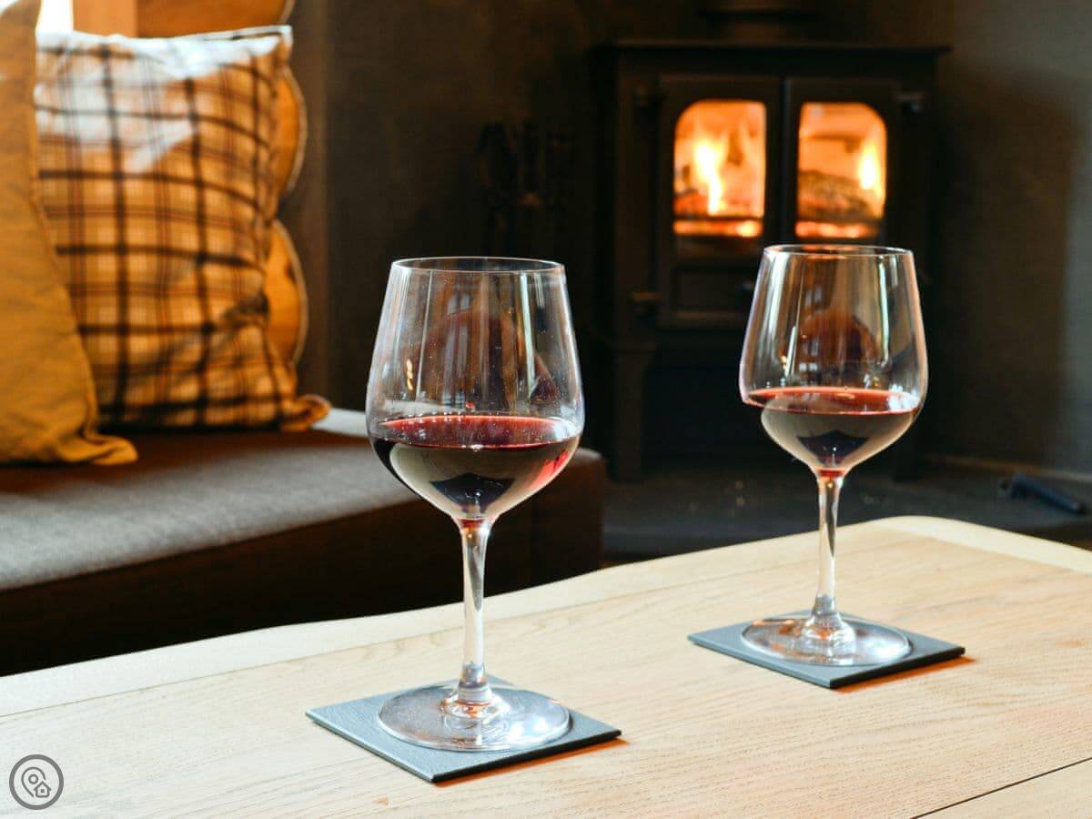 It sleeps four. Two bedrooms, one bathroom with a shower. Everything is on one level, so no stairs. It's a 4 Star place, so it's comfortable. There's a wood burner for cold nights and a hot tub outside.