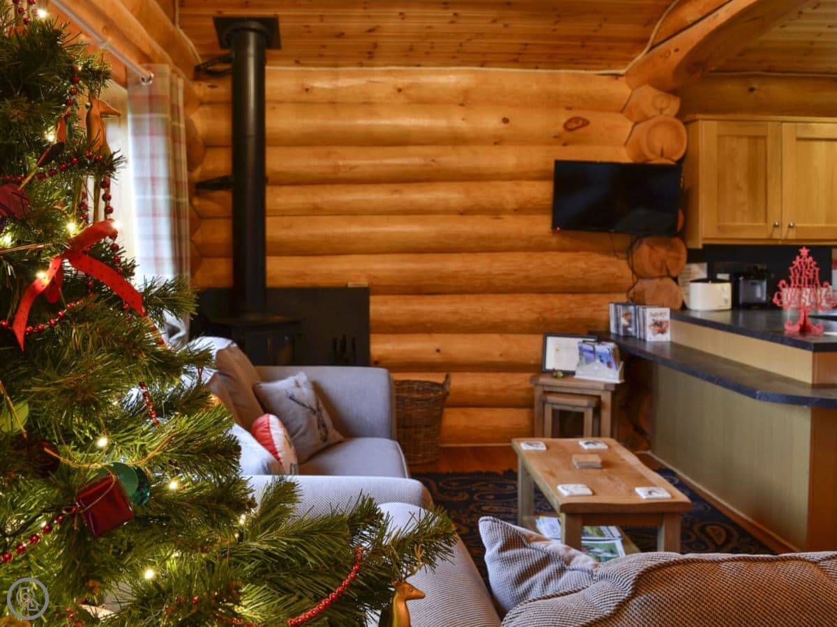 Fir Tree Lodge is a log cabin on our farm. It's one of two. It's detached, so you're on your own, just next to the other cabin.
