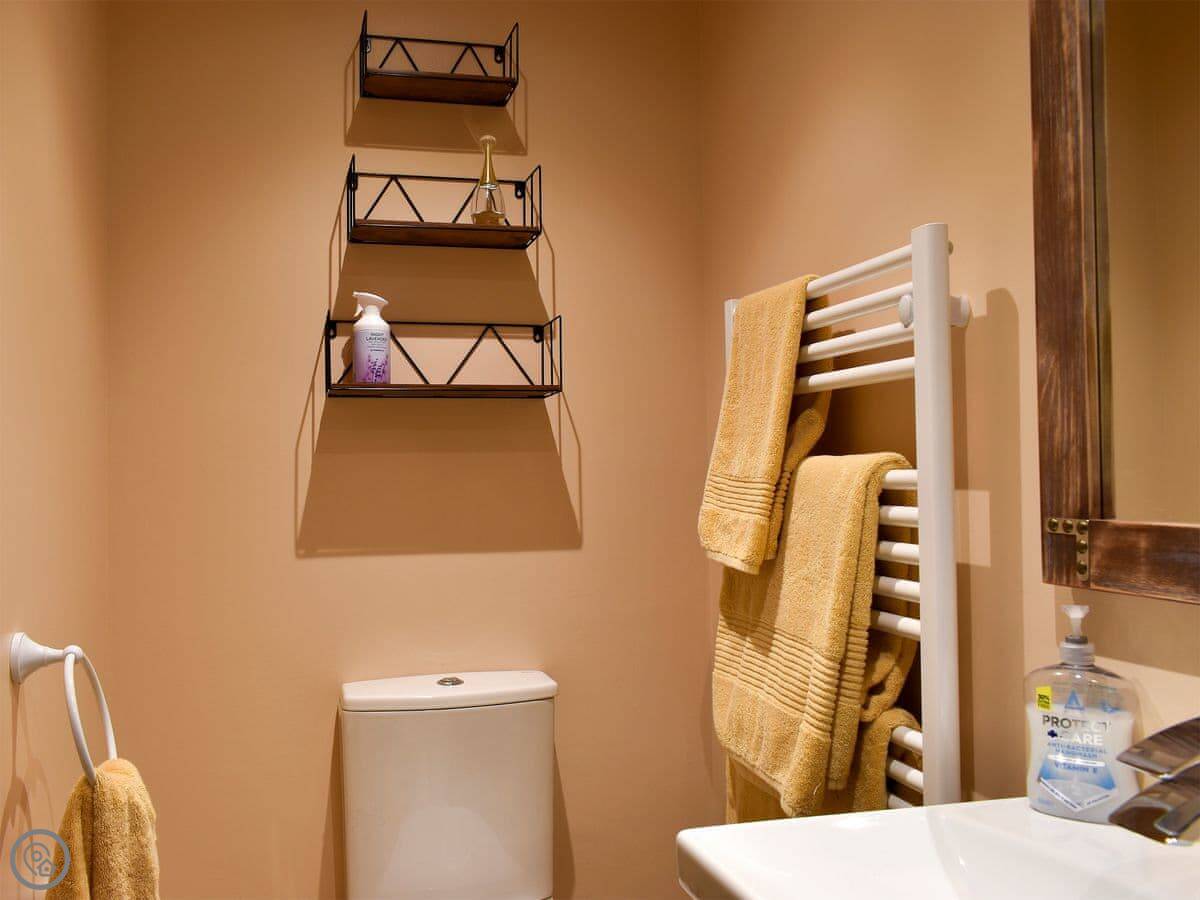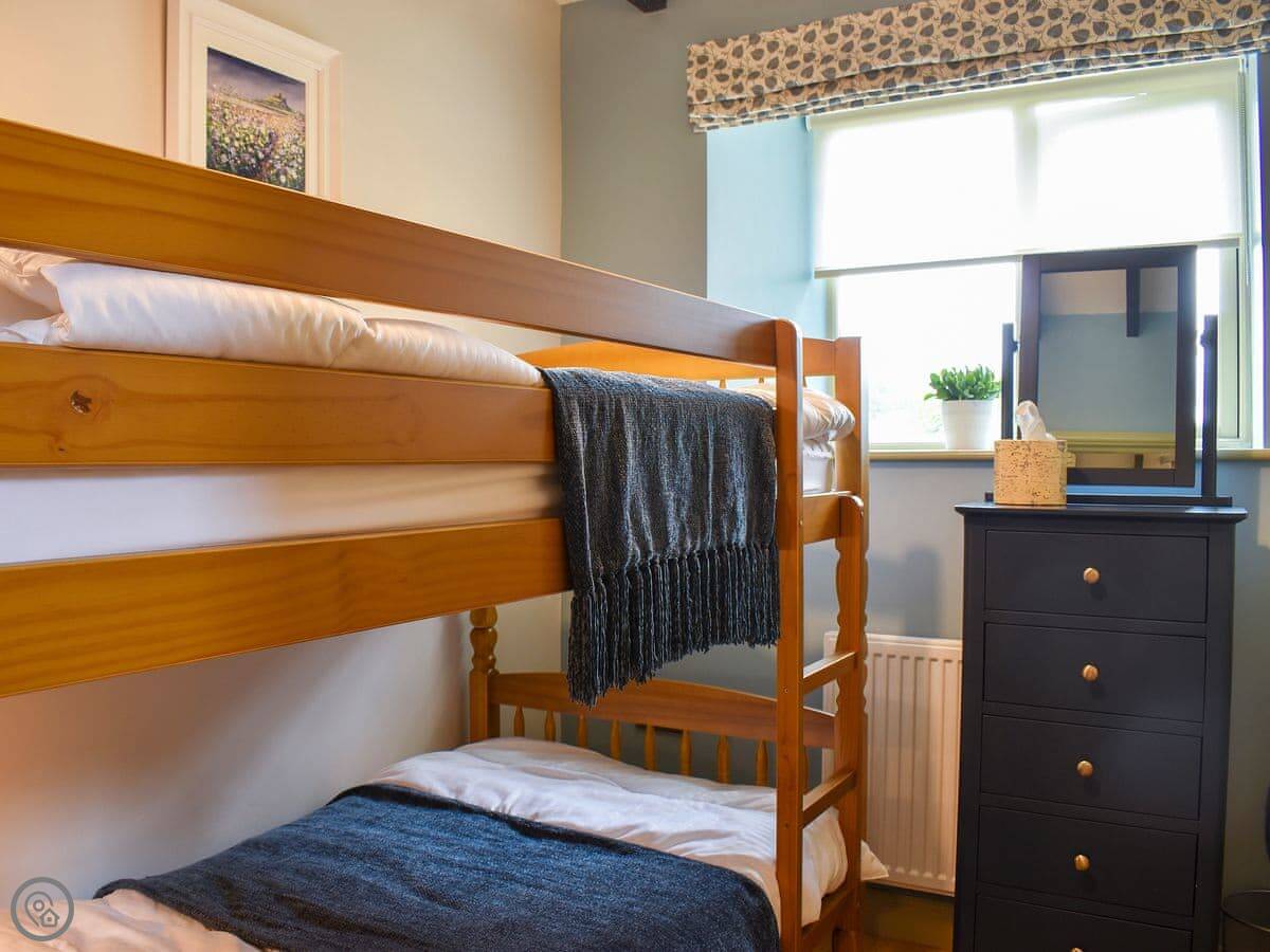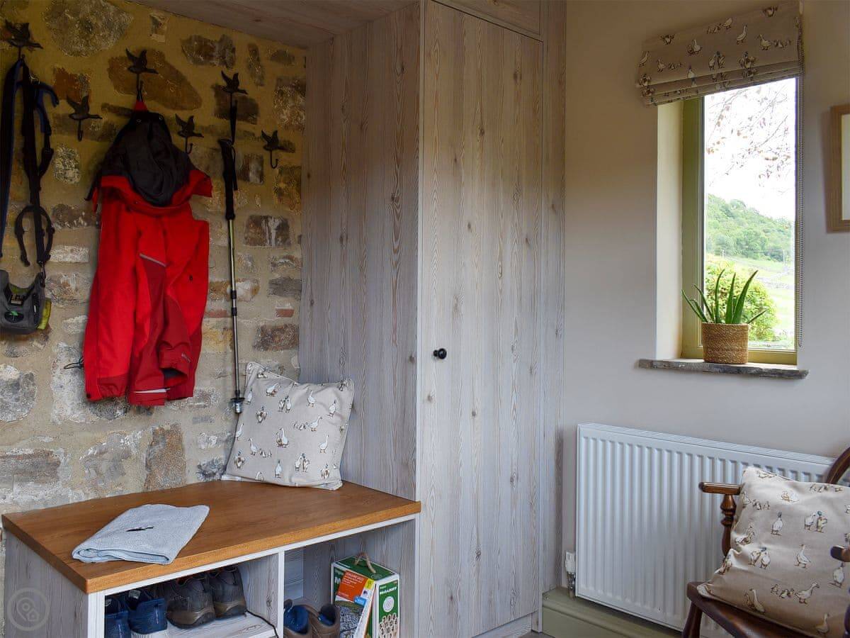Outside, there's a garden with a couple of seating areas. There's a garage you can use for bike storage. There's also a boot room by the entrance, which is useful for muddy boots and dogs.
