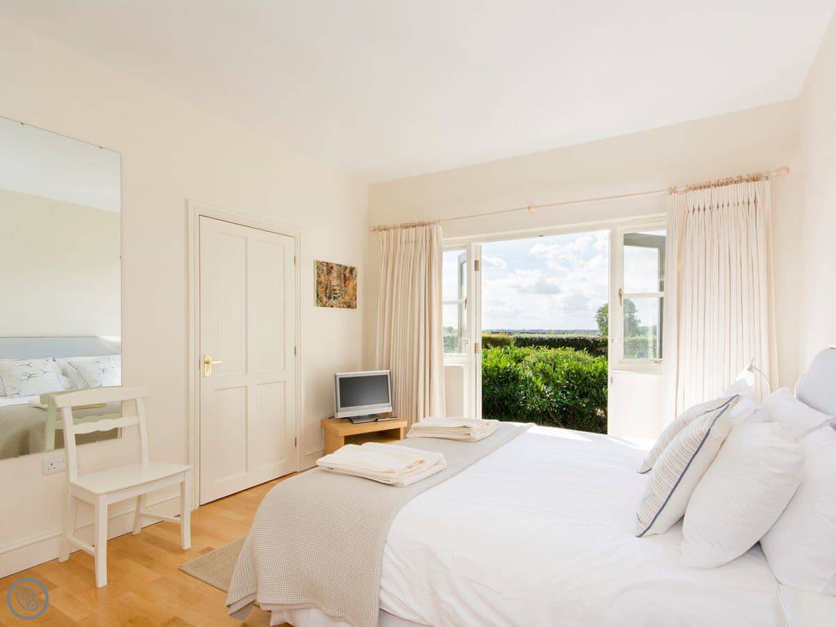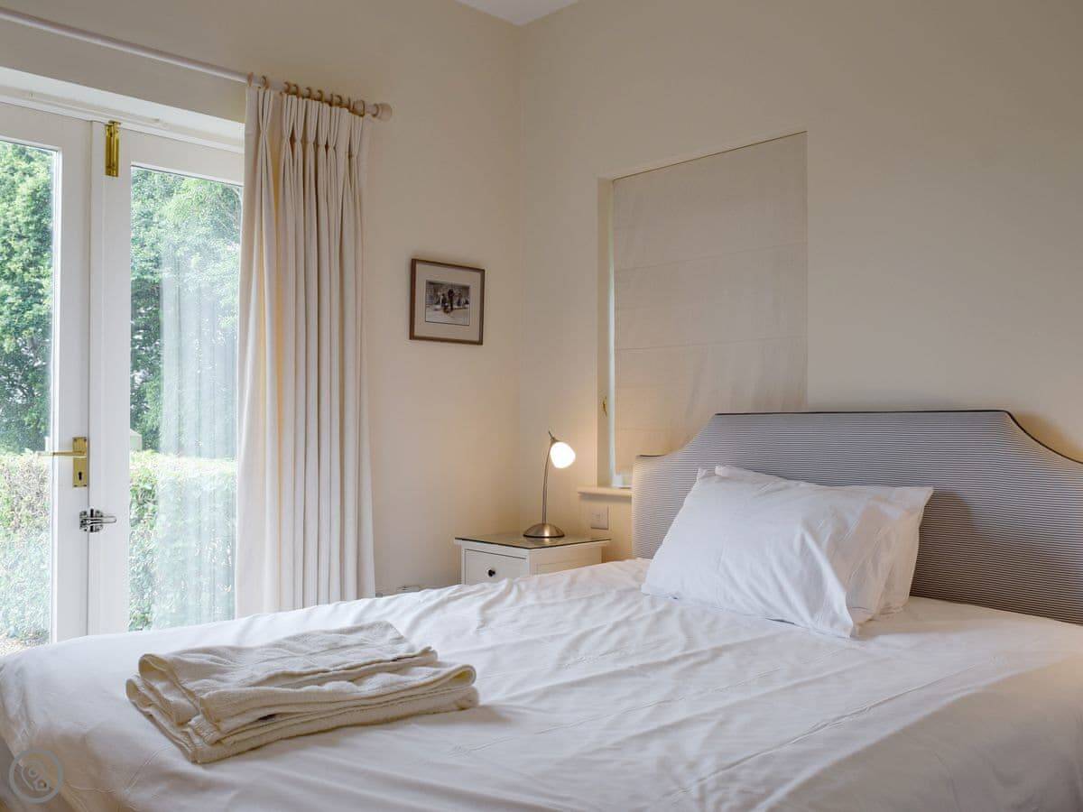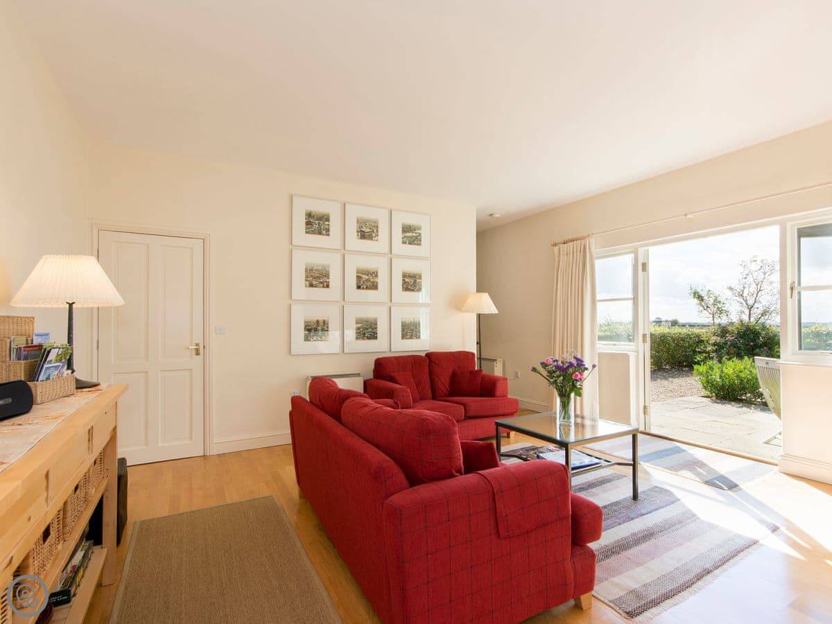 It sleeps four in two bedrooms, and has two bathrooms. It's a 5 Star place, so it's well kept and everything works as it should. You have your own enclosed garden with a patio. The view is just fields. Sunsets are good from there.
