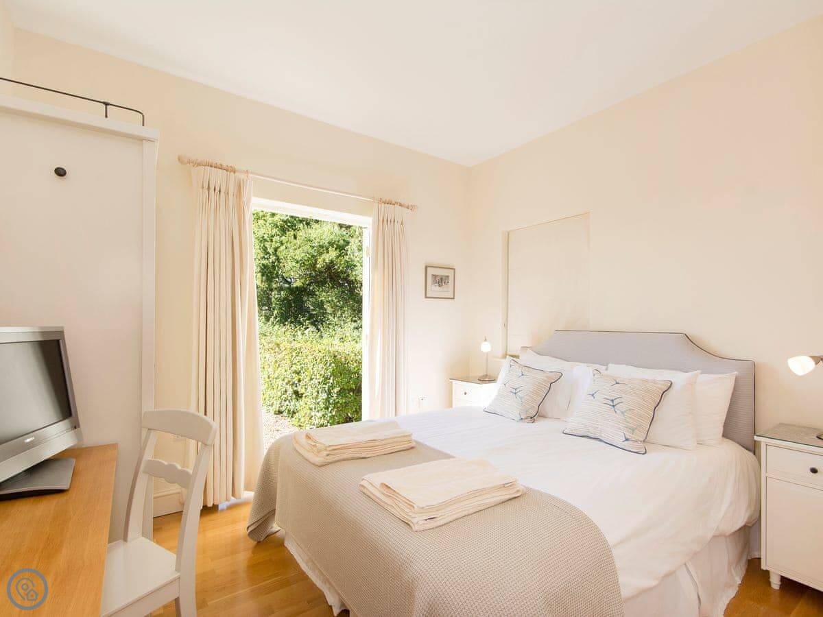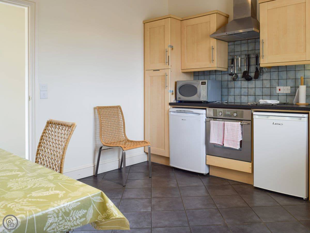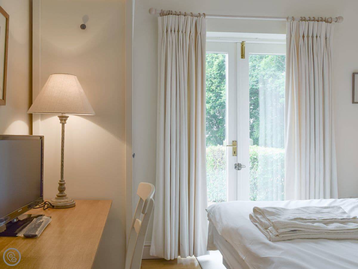 It sleeps four in two bedrooms, and has two bathrooms. It's a 5 Star place, so it's well kept and everything works as it should. You have your own enclosed garden with a patio. The view is just fields. Sunsets are good from there.