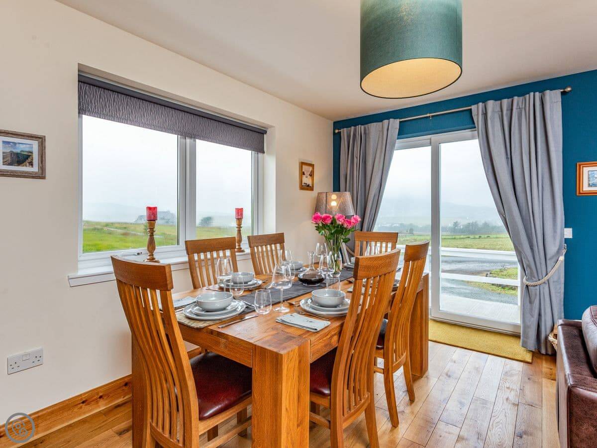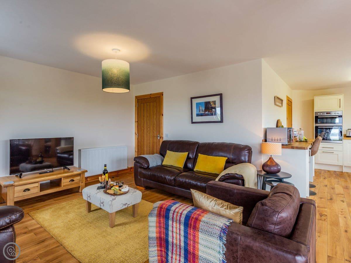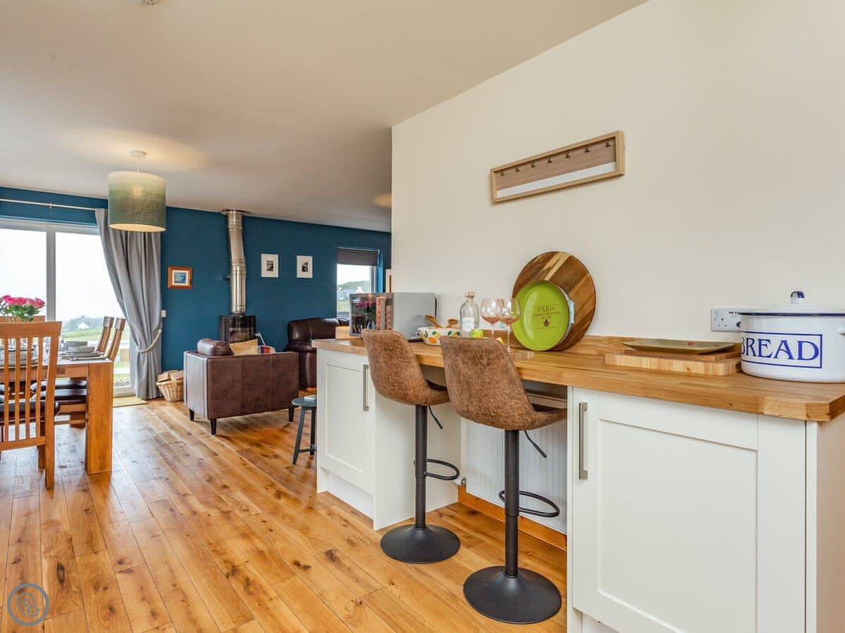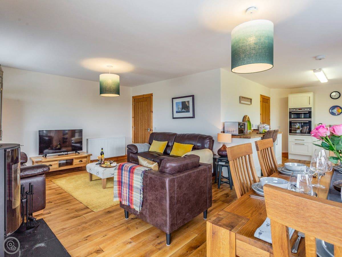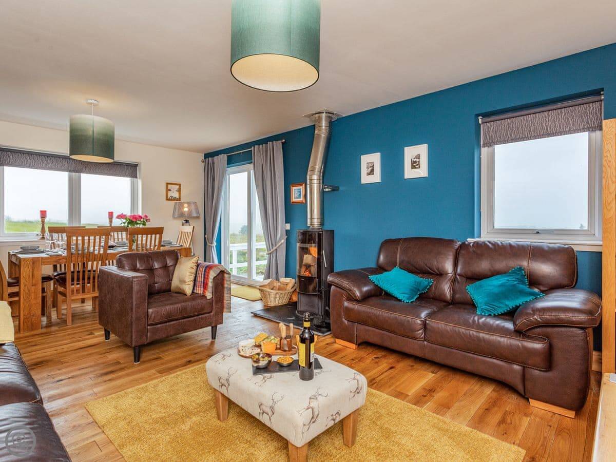 For those looking for the ideal spot to bring family or friends together, then look no further. This modern, semi-detached property delivers generous-sized rooms throughout and is also friendly for those with limited mobility. Downstairs, you’ll find a double bedroom with walk-in wardrobe and a bathroom with walk-in shower. Upstairs is a further kingsize and twin bedroom with Velux windows - perfect for star gazing or to enjoy the wonderful views with a cup of coffee from the warmth of your bed. The focal point of house has to be the open plan living space, complete with a modern multi-fuel burner and windows dotted around the room, so guests can take in the panoramic views, no matter the weather! The kitchen comes fully equipped with a small breakfast bar area. There is a large dining table for guests to entertain, and the living area has a large Smart TV to snuggle up and watch your favourite shows when the notion takes you. Outside you will find a generous verandah, where guests can sit out and enjoy a breakfast coffee or a nice cold beverage, taking in the beautiful surroundings. To the side of the property is a ramp for anyone requiring wheelchair access.