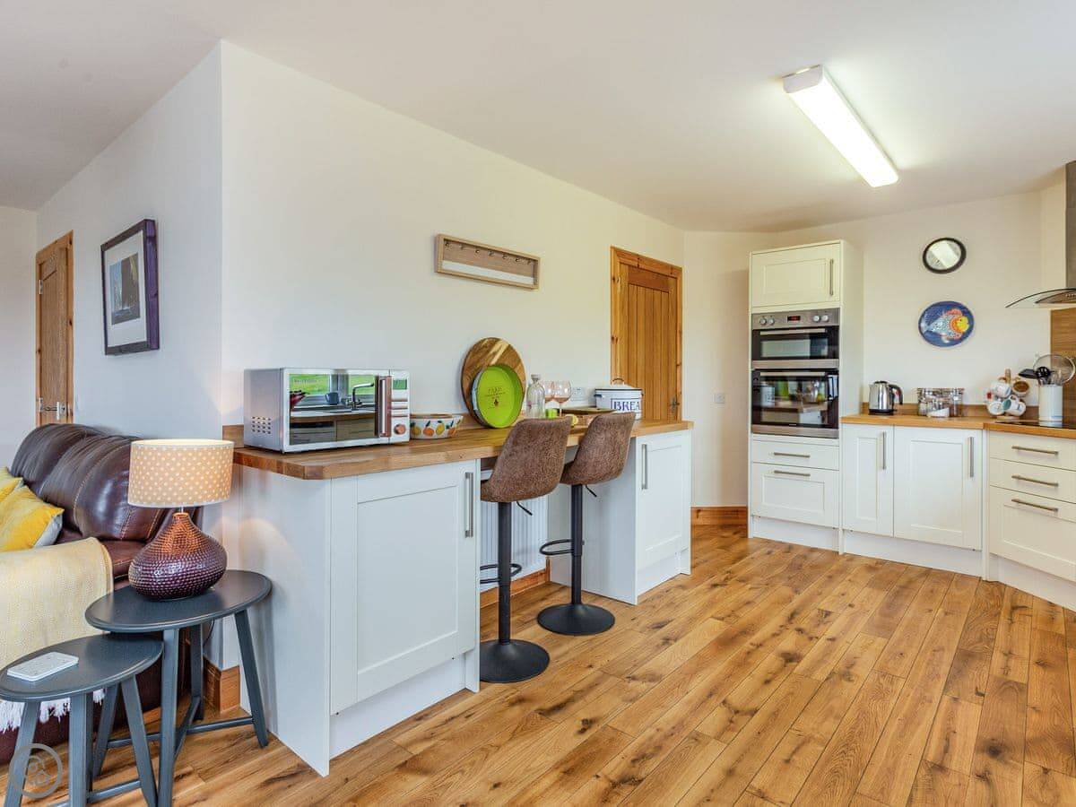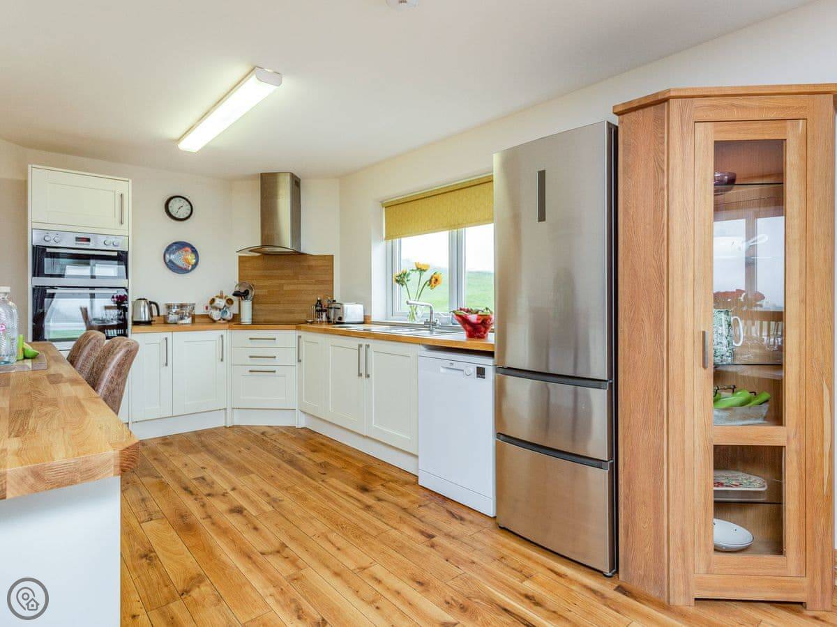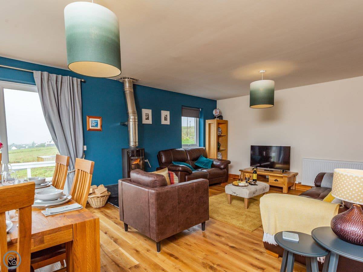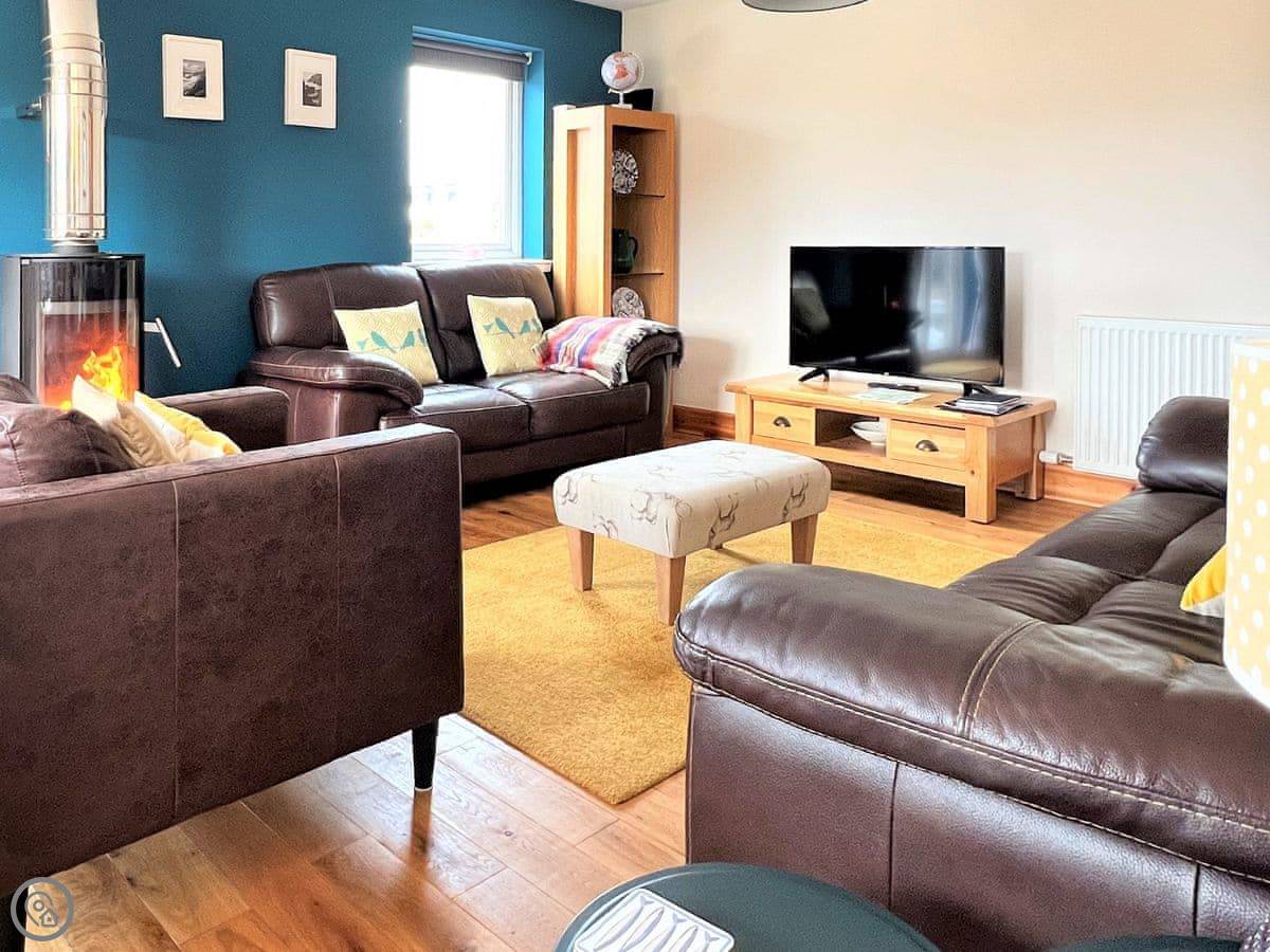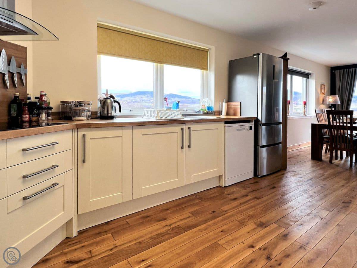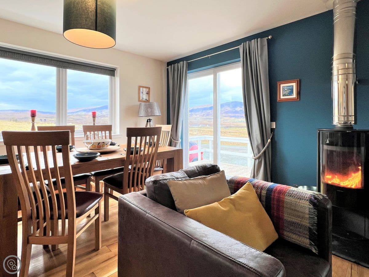 For those looking for the ideal spot to bring family or friends together, then look no further. This modern, semi-detached property delivers generous-sized rooms throughout and is also friendly for those with limited mobility. Downstairs, you’ll find a double bedroom with walk-in wardrobe and a bathroom with walk-in shower. Upstairs is a further kingsize and twin bedroom with Velux windows - perfect for star gazing or to enjoy the wonderful views with a cup of coffee from the warmth of your bed. The focal point of house has to be the open plan living space, complete with a modern multi-fuel burner and windows dotted around the room, so guests can take in the panoramic views, no matter the weather! The kitchen comes fully equipped with a small breakfast bar area. There is a large dining table for guests to entertain, and the living area has a large Smart TV to snuggle up and watch your favourite shows when the notion takes you. Outside you will find a generous verandah, where guests can sit out and enjoy a breakfast coffee or a nice cold beverage, taking in the beautiful surroundings. To the side of the property is a ramp for anyone requiring wheelchair access.