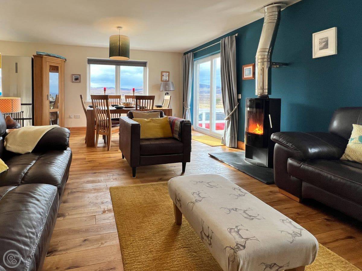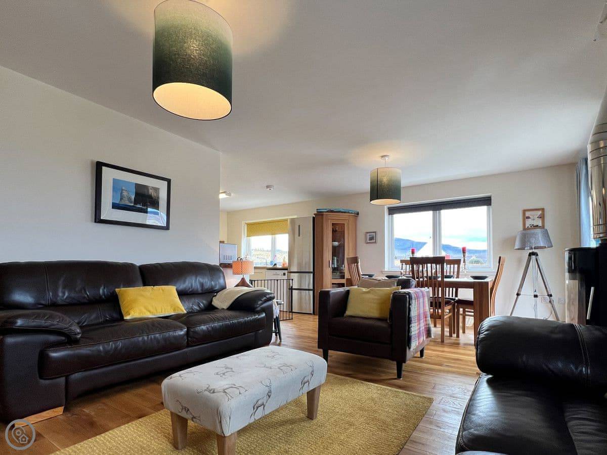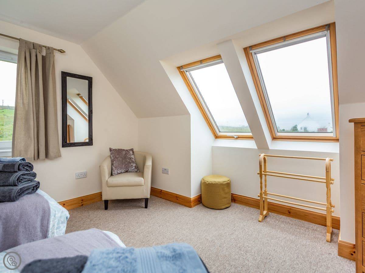 Guests will love the location, which is the perfect base for exploring the island, especially the more remote northern end, which offers some of the best walking just a short drive away. Staffin Bay is around a mile away where you can go and catch a glimpse of prehistoric dinosaur prints! Staffin is a small village on located near Old Man of Storr, Kilt rock, Quiraing, with a well-stocked local community store and a restaurant across the road. Takeaways are also available from the community shop at certain times – a rarity in these parts! Portree is just 30 minutes away by car and features a selection of restaurants, gifts shops, cinema/theatre and boat trips from Portree Harbour to see porpoise, seals, otters and sea eagles. Beach 1 mile.