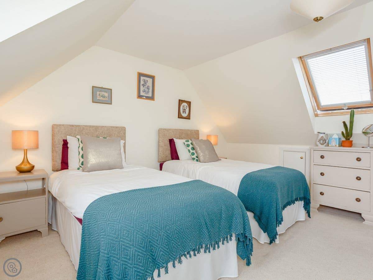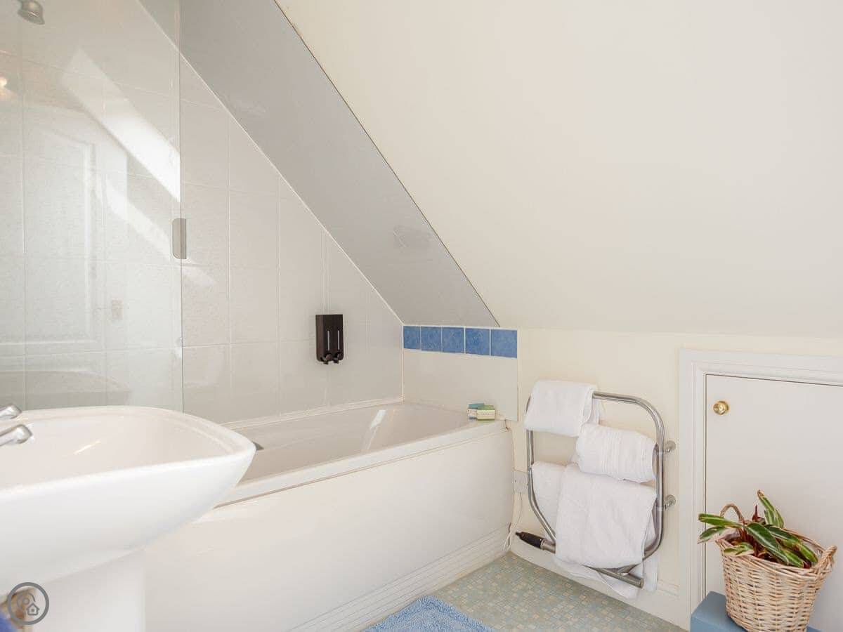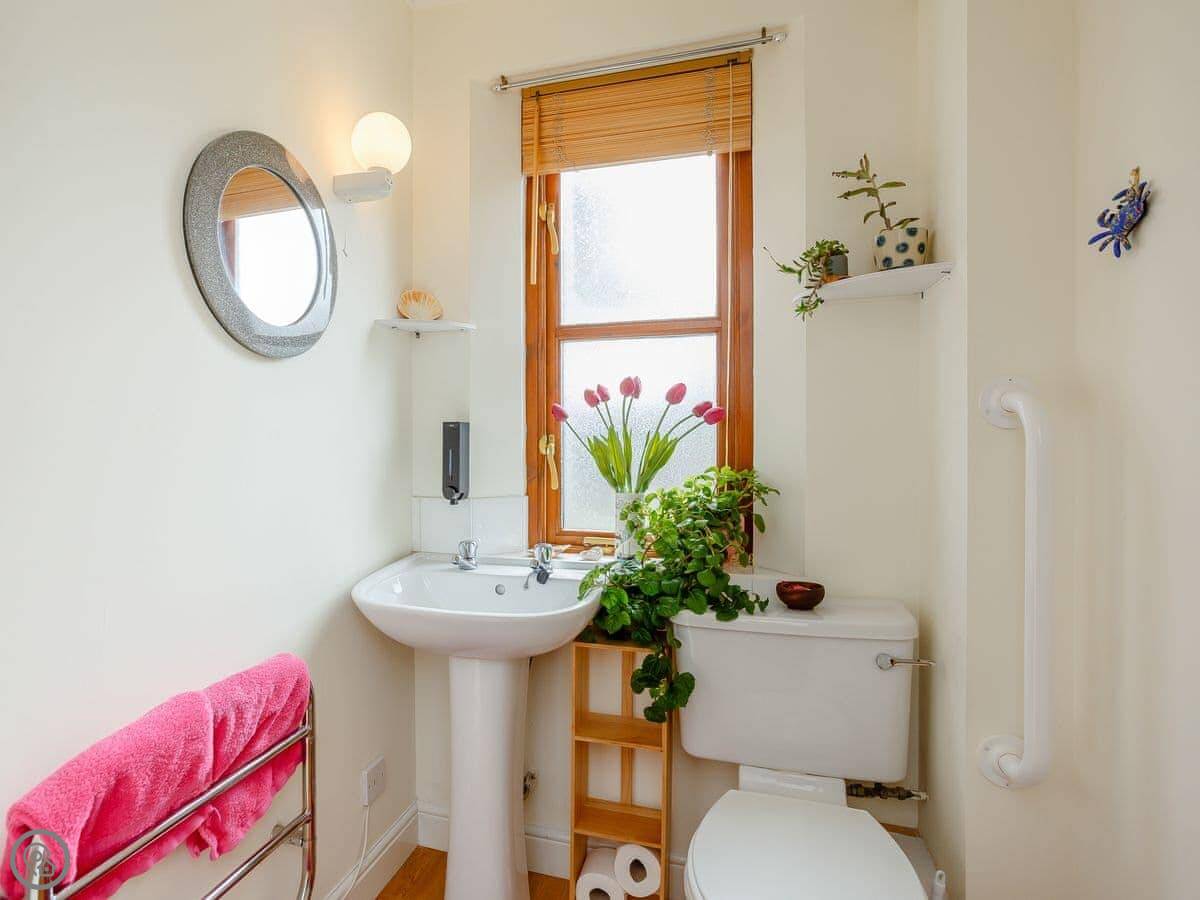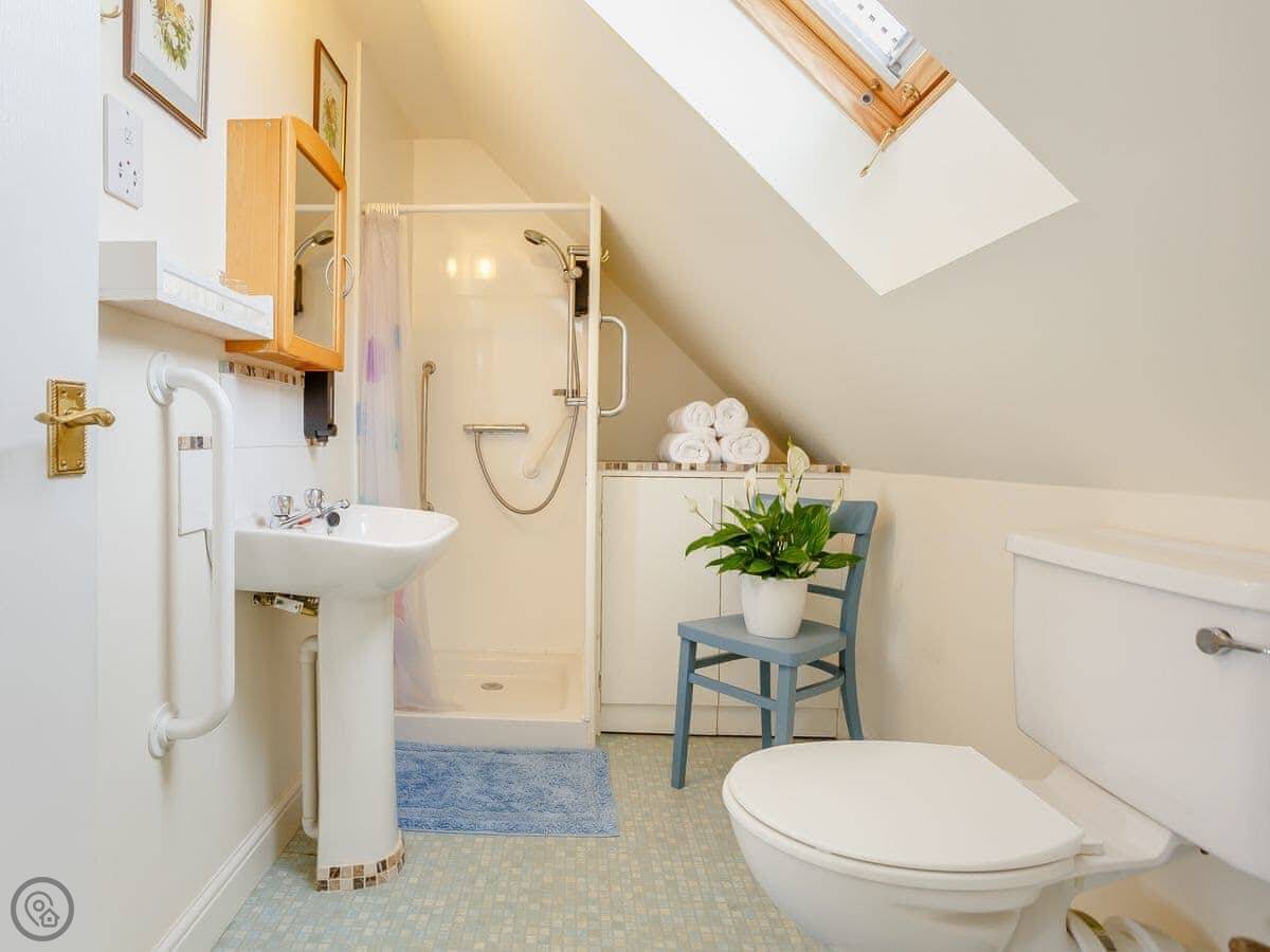 The cottage sleeps six. Three bedrooms and two bathrooms. It's got a 4 Star rating. One bedroom and a toilet are on the ground floor. There's also a stairlift to get up to the main bathroom, which is on the first floor. That's handy if stairs are a problem for anyone. The stairs themselves are normal.