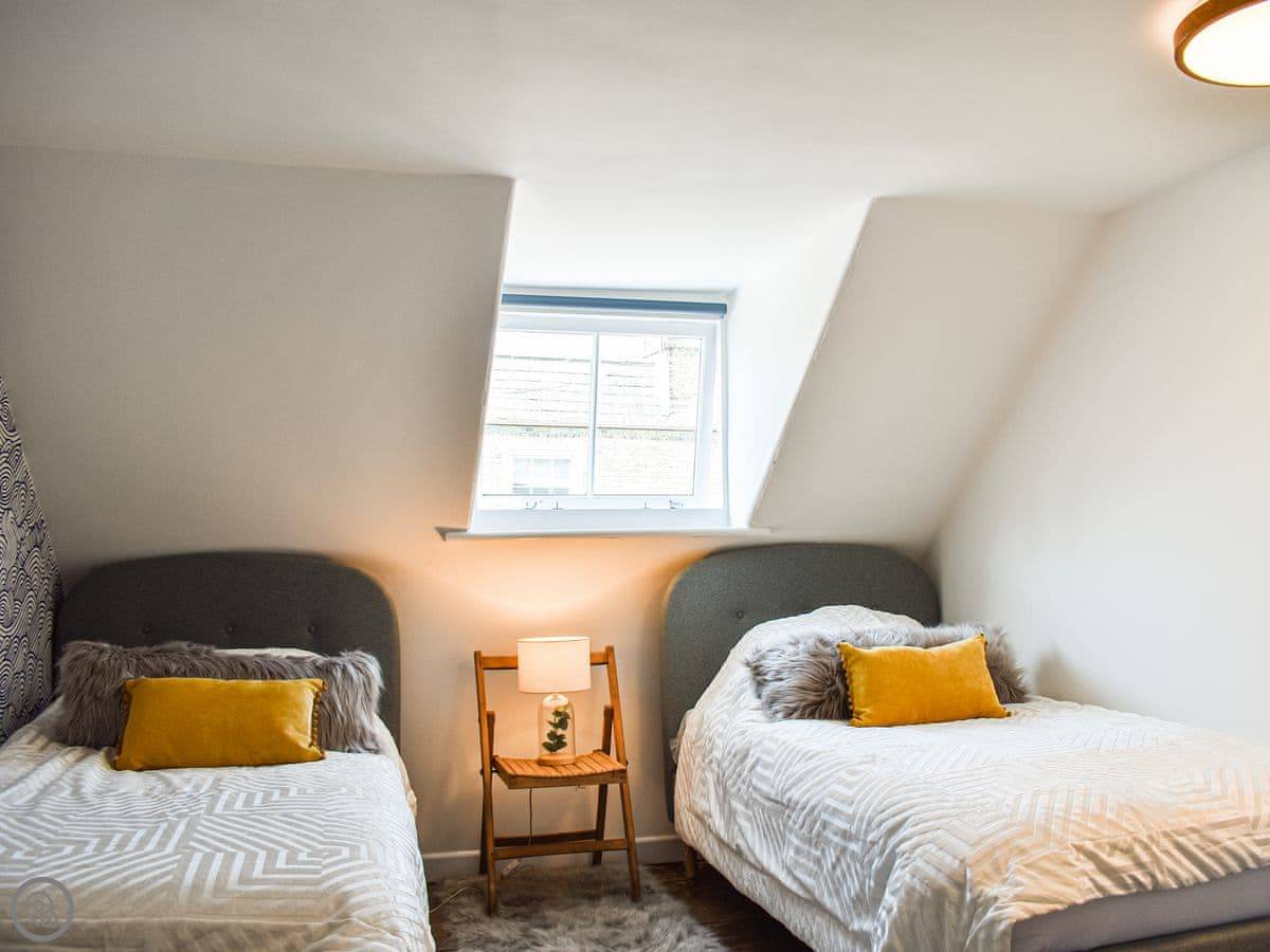 It sleeps four. Two bedrooms, one bathroom. It's got a 4 Star rating. It's been done up recently. The stairs inside are quite steep and a bit narrow.