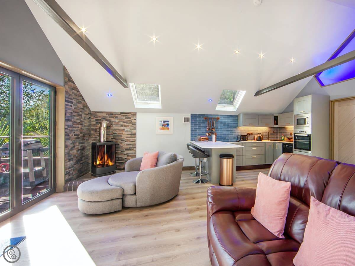 Dundonald Landing Palm 2 has been thoughtfully designed by the owner to offer luxury and comfort with flashes of brilliance! There are two spacious, comfortable bedrooms, one king-size, one twin – both with televisions and with en-suite walk-in shower rooms. Stable doors lead to the rear of the lodge and the private Hot-tub. Fitted out to provide more than the comforts of home, there’s a spacious open plan living space complete with gas-fired wood-burning effect stove, a cosy rotating snuggle sofa, LED mood lighting, a glitzy bar area for after dinner cocktails, large smart TV and to top it all, glazed doors which open up the whole front of the lodge onto a decked area with outside furniture and barbecue. A private jetty opening onto Loch Etive is available for your use - ideal to fish from, enjoy wild swimming and to keep a kayak or small boat close-by to enjoy the best of the waterside location.