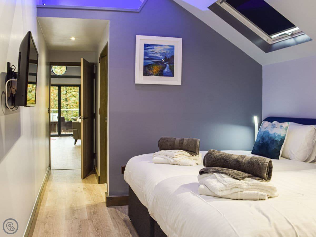 One of the twin bedrooms and its ensuite is set up for wheelchair access. The path to the lodge is a single-track road. It's fine for driving, and good for walks or a bike ride along the loch side.
