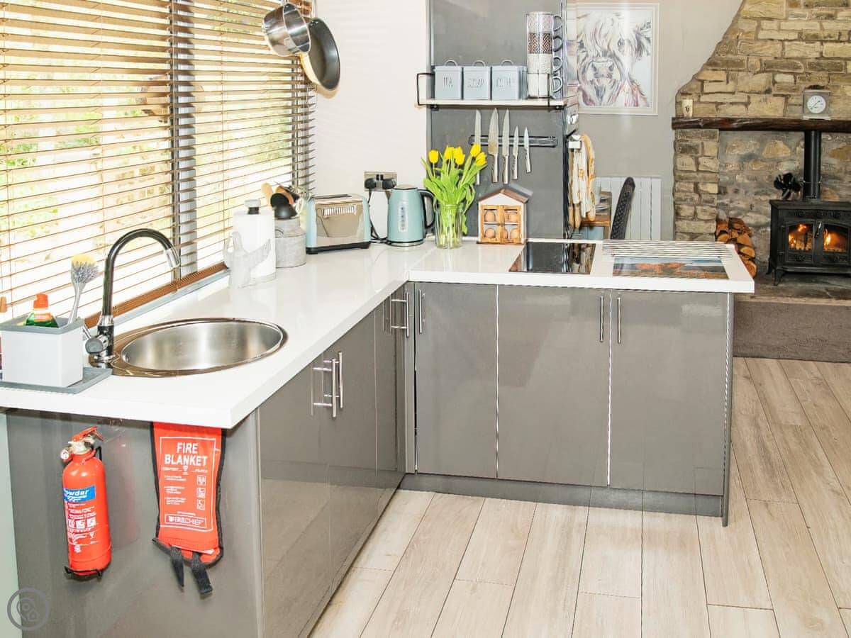 This lovely farm cottage situated in the Forest of Bowland Area of Outstanding Natural Beauty, refurbished in 2021, provides an idyllic country retreat for couples and families. The bedroom has patio doors looking out over fields so you can enjoy watching the wildlife without leaving bed. Outside, the private garden is the ideal spot to enjoy al fresco dining in the sunshine or for sitting out on a summer’s evening watching the stars. The living room provides a cosy corner to snuggle up on the sofa next to the wood burner with a glass of wine at the end of a busy day.
