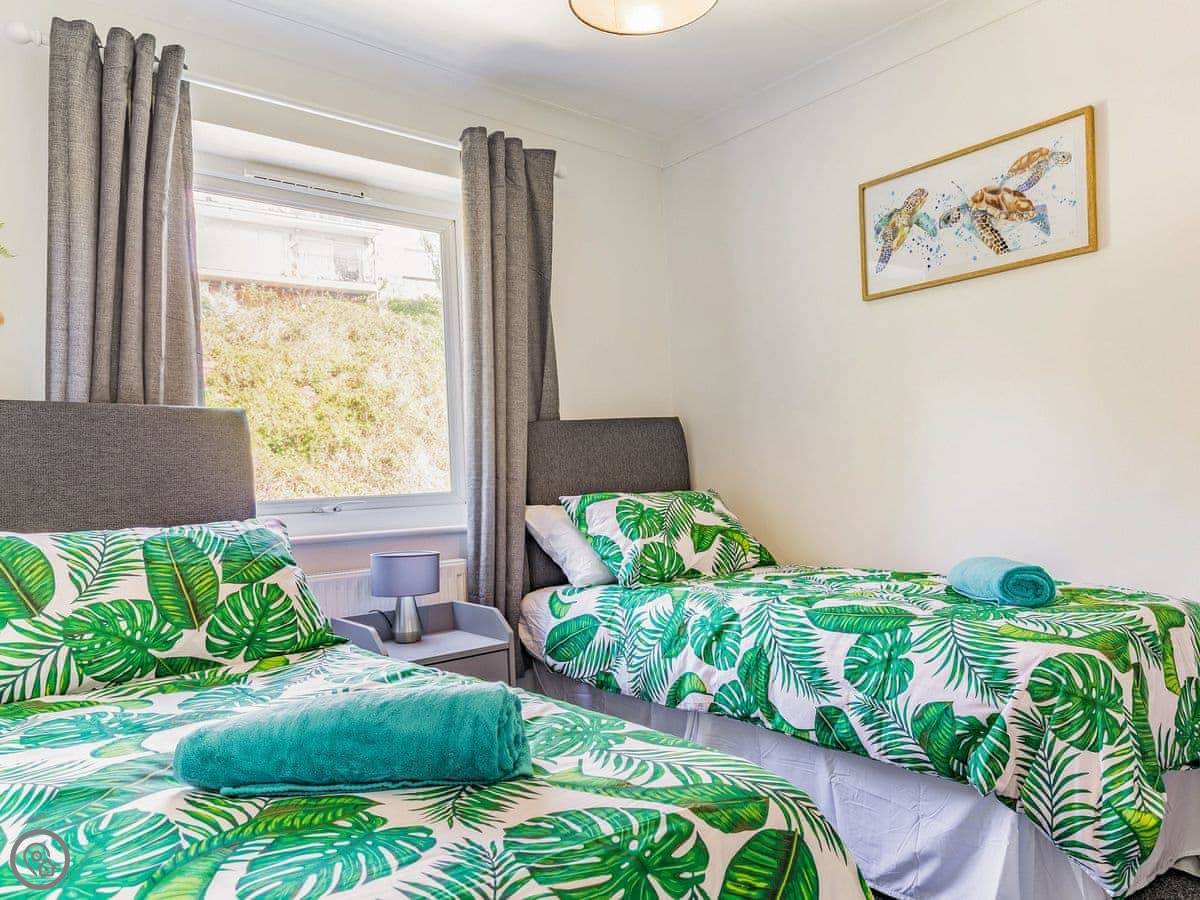 For the beach, the nearest is Babbacombe, which is just over a mile away. The harbour and marina are about a mile and a half. It's a good base for seeing the area. Brixham, Dartmouth, and Totnes are all within about half an hour's drive.