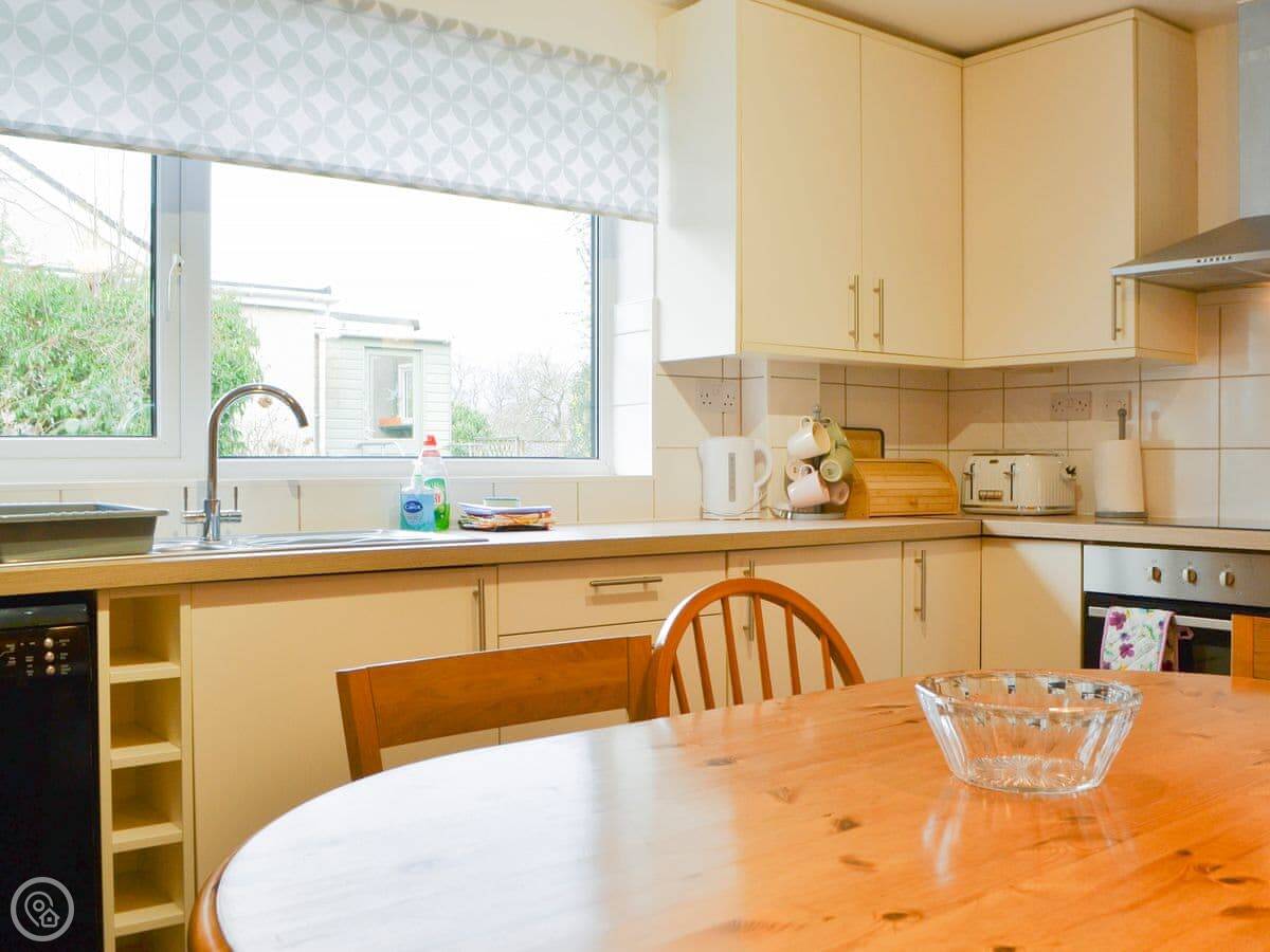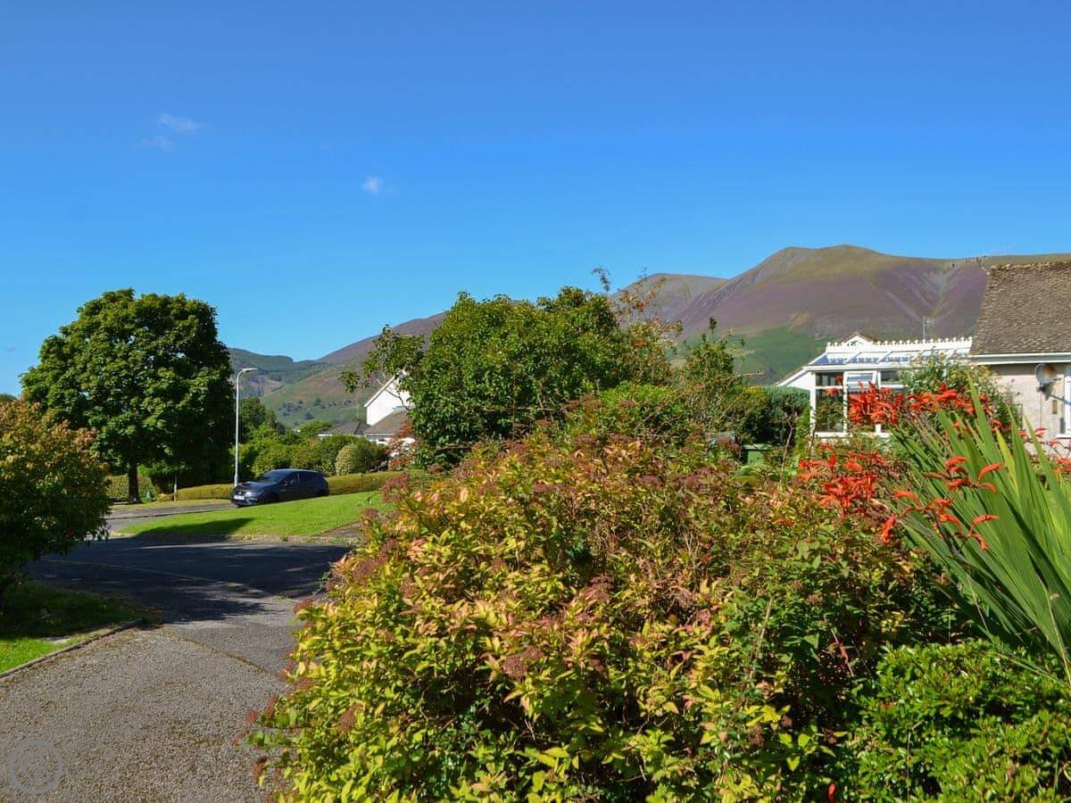 . All on the ground floor, it is ideal for couples and families. The master bedroom features a kingsize bed, the second bedroom has a double and the third has twin beds and is ideal as a kids den. There is plenty of storage and hanging space in the main bedrooms and pleasant views to the gardens. The bathroom has been adapted with a wet room shower, non-slip flooring and grab rails, so it’s ideal for the less mobile. The kitchen/dining room is a good size; its well-equipped with plenty of cupboards and prep space for creating a family banquet. The utility next door houses a fridge/freezer and washing machine. The living room has amazing views to Skiddaw at the front of the property, with plenty of easy seating and a flat screen TV, perfect for cosy nights in, there is a second toilet and hand basin in the extension to the house. The property has gardens at both the front and back with a mixture of lawn and patio, well established shrubs and off-road parking. If you want to bring your dog, this property is great for them too, plus it has a bike store so ideal for a cycling holiday.