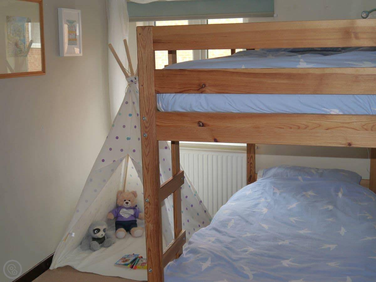 It sleeps five, in three bedrooms. There’s one bathroom with a shower. It has a 4 Star rating, which means it’s well equipped and comfortable. It’s been looked after.