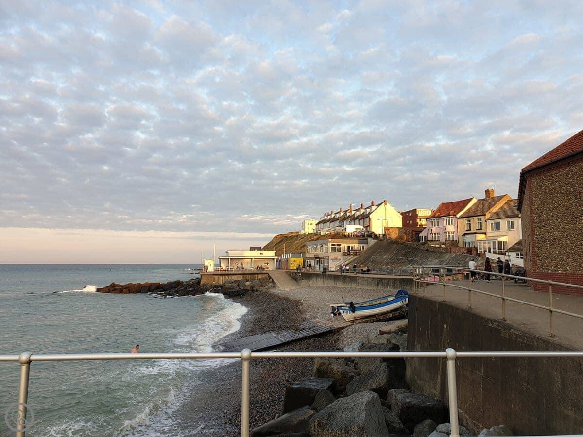 Sheringham itself is a straightforward seaside town. The beach is sand and shingle. The town has a few shops, cafes, and pubs, all within walking distance. The local pub does food. The North Norfolk Railway steam trains run from here, which is a good day out if you like that sort of thing.