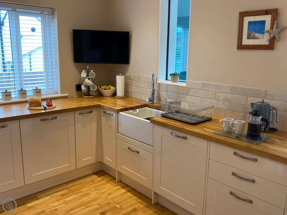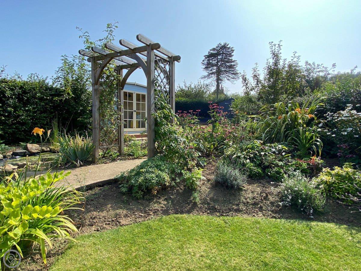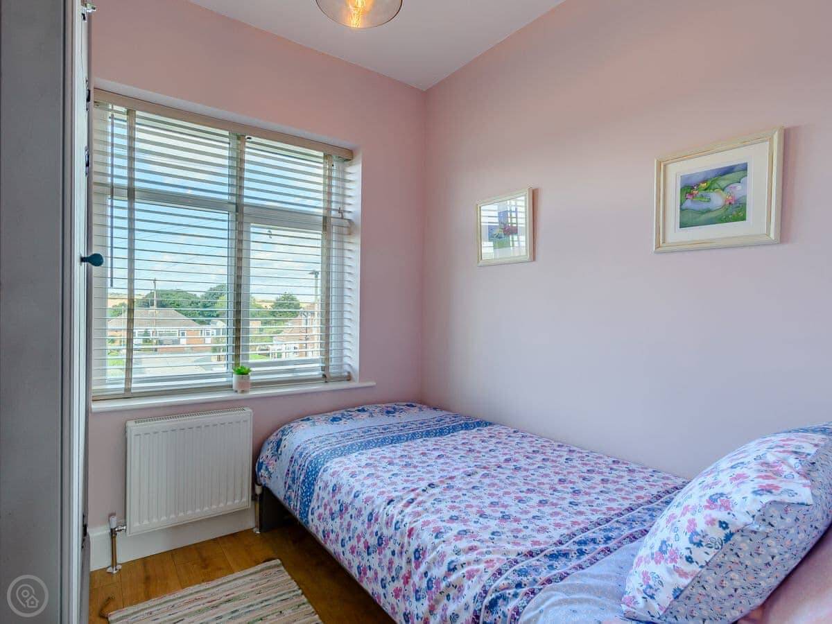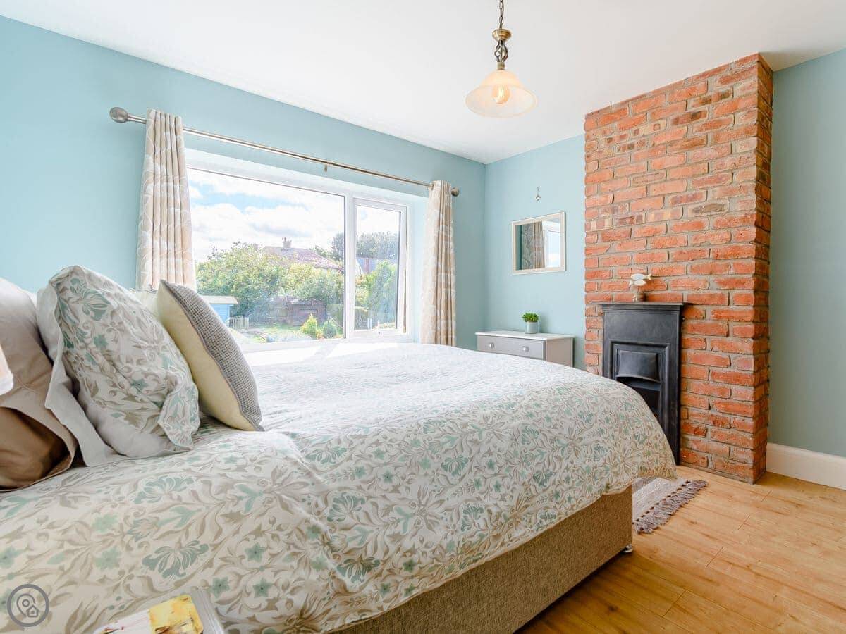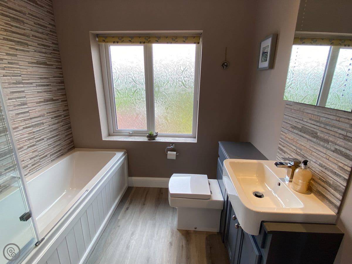Sea Fever is a fabulous holiday cottage sure to make your holiday one to remember. Beautifully furnished throughout, with careful attention to detail, it has a long private driveway so that you can conveniently park on your doorstep. Inside you step into the hallway which branches out into the rooms. At the front you have the beautiful living room with sofas around the wood burner. There’s nothing like getting cosy in front of real crackling flames. The kitchen is at the rear of the property, with French doors looking out into the stunning garden, which is bursting with colour in the summer. The kitchen has lots of character, with sweeping wooden work tops, table and chairs for a comfortable family dinner and a range cooker beside the feature fireplace. This is a great social space for enjoying meals together, or even having a games night. On sunny days why not dine al fresco in the garden, enjoying the beautiful flowers which are a haven for bees and butterflies. There is a summerhouse out on the lawn, with seats so that you can sit out peacefully in the garden, with only birdsong to break the silence. Also outside you have a utility room adjacent to the kitchen, which is ideal for washing towels and drying wetsuits after a day out at the beach. The ground floor is complete with a convenient toilet. Upstairs you have the family bathroom with a shower over the bath. There are three bedrooms, each room has built in wardrobes for all of your belongings.