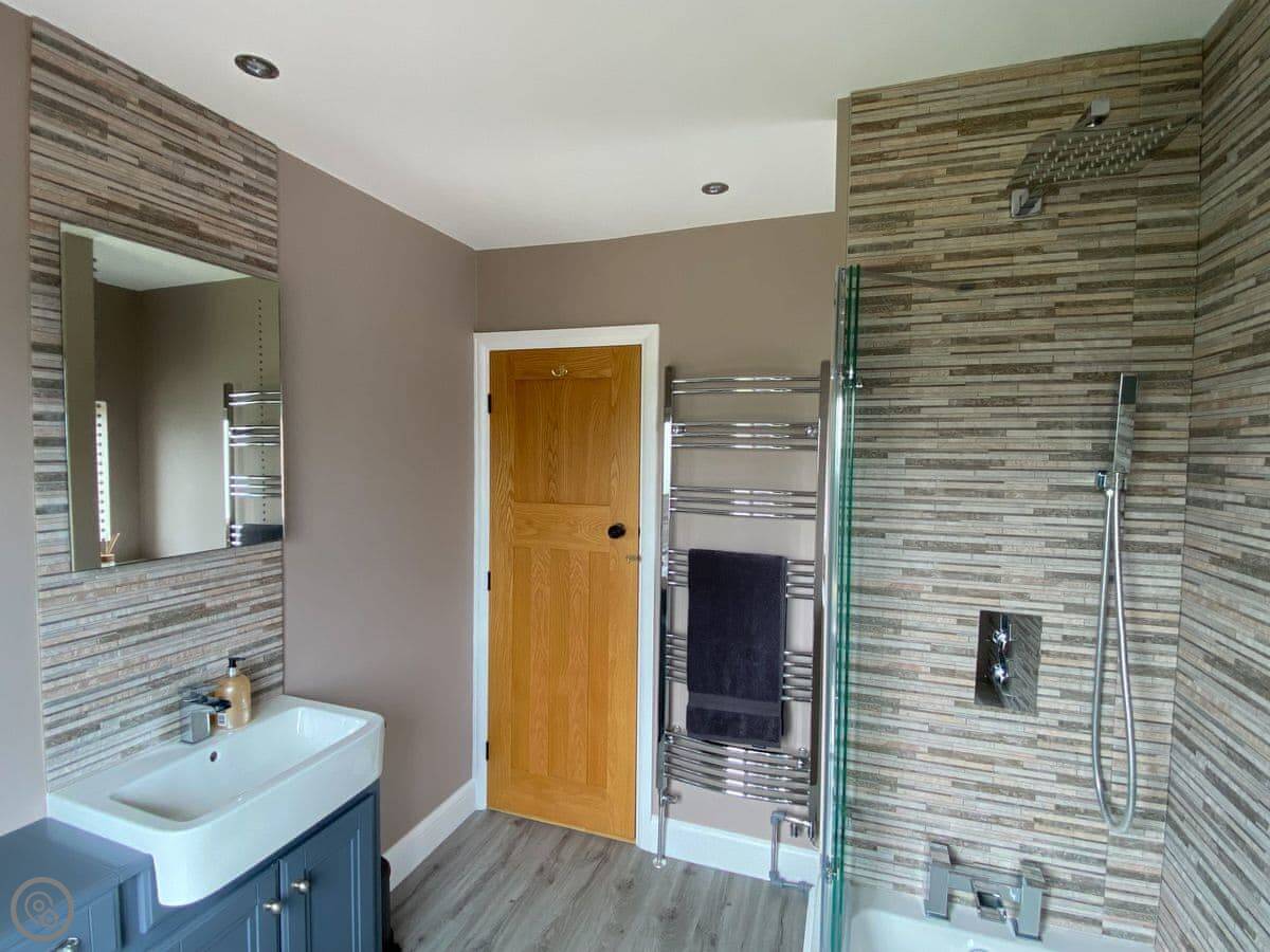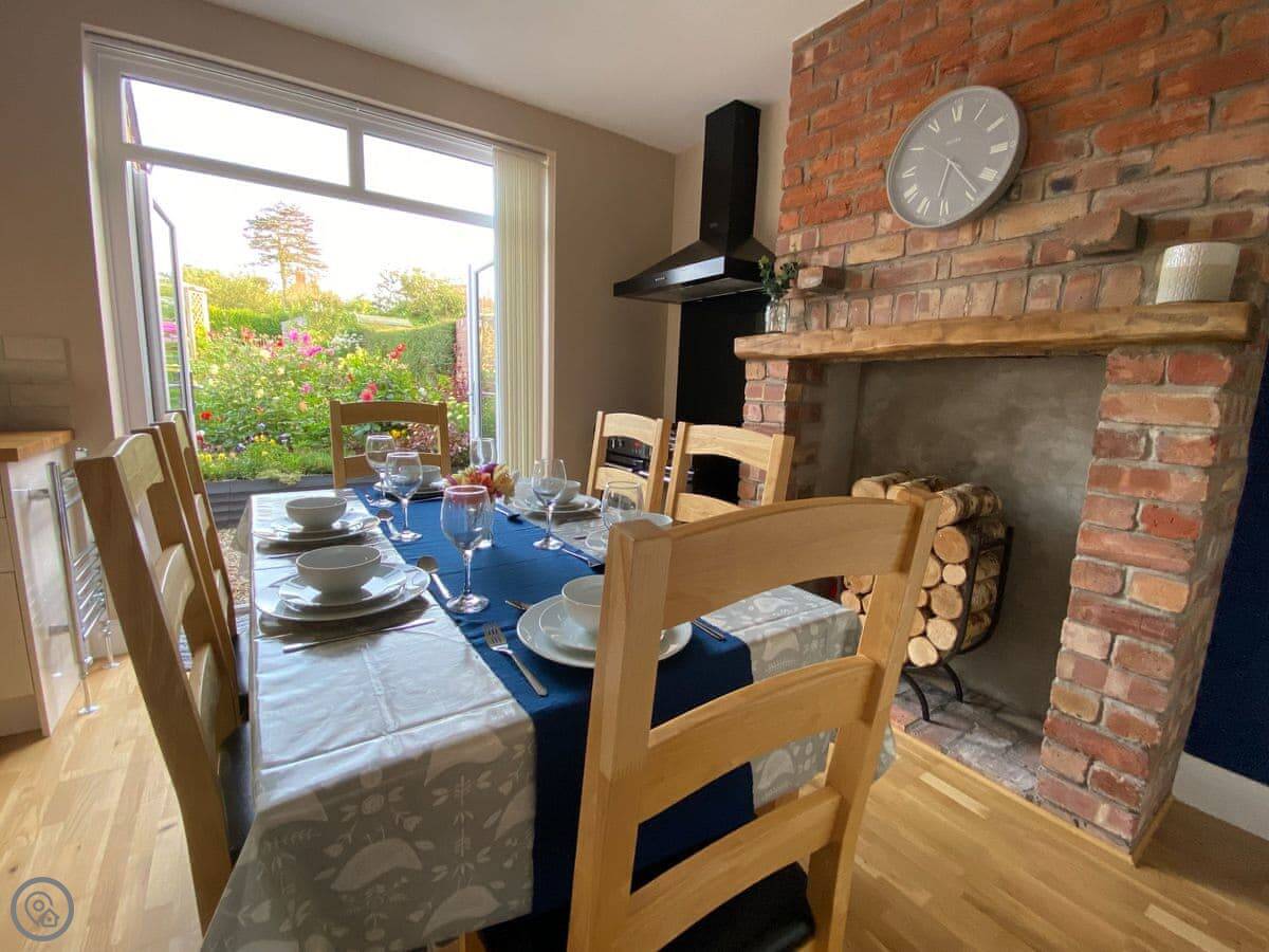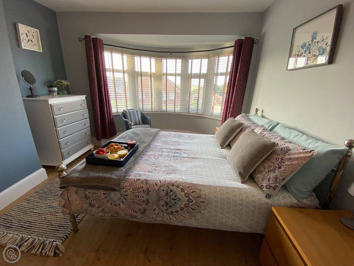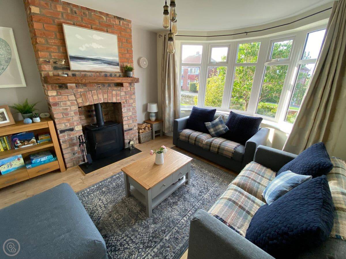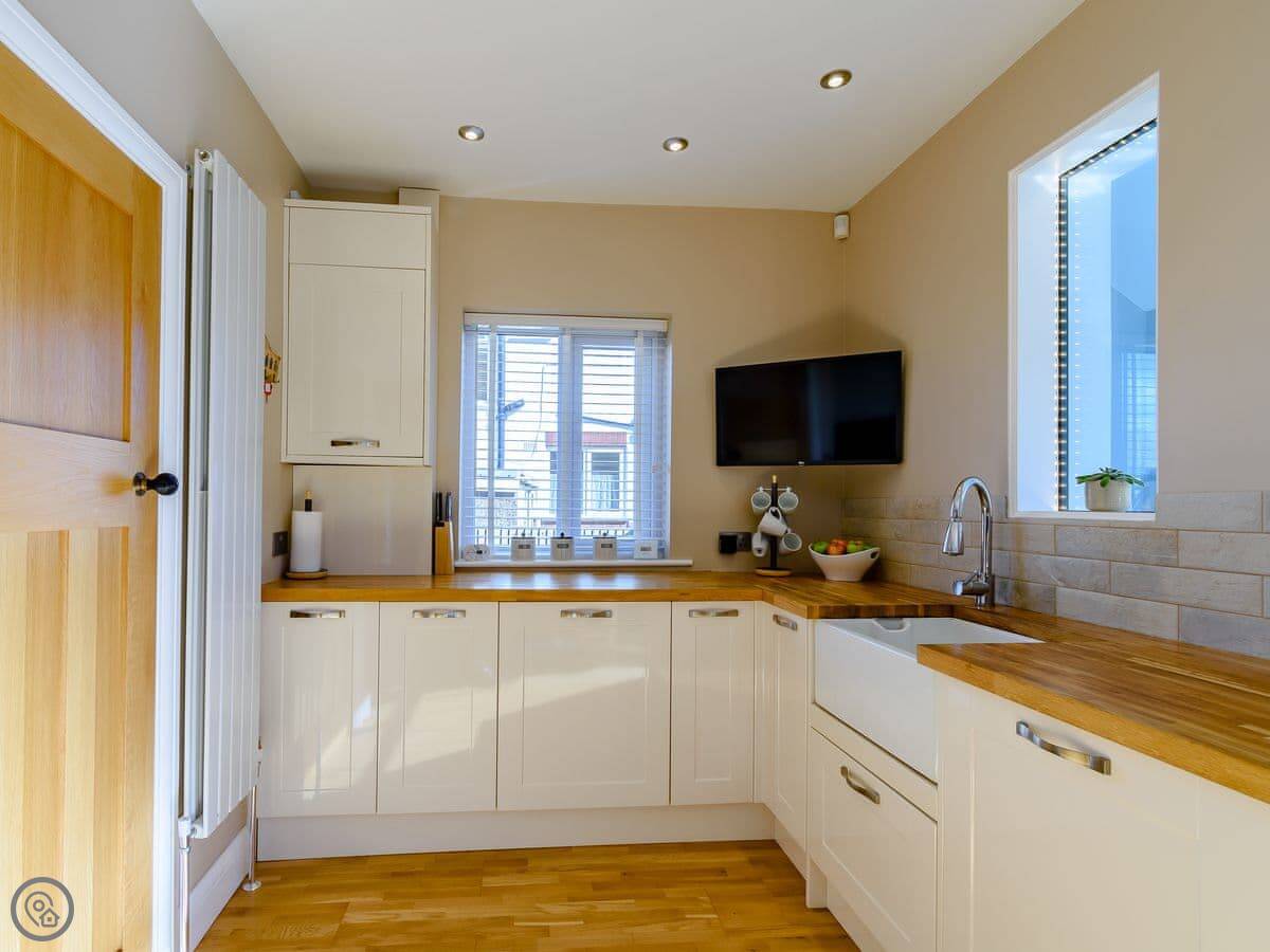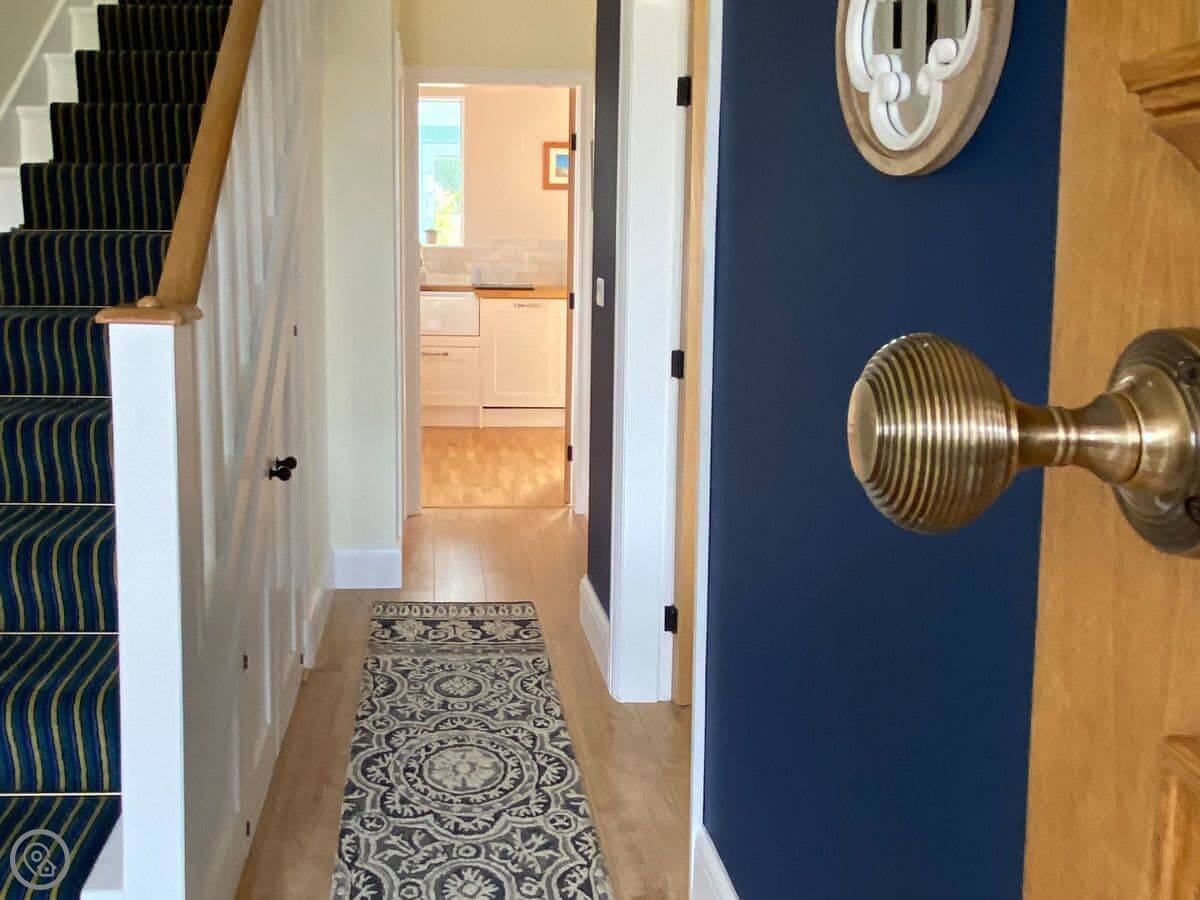 Sea Fever is a fabulous holiday cottage sure to make your holiday one to remember. Beautifully furnished throughout, with careful attention to detail, it has a long private driveway so that you can conveniently park on your doorstep. Inside you step into the hallway which branches out into the rooms. At the front you have the beautiful living room with sofas around the wood burner. There’s nothing like getting cosy in front of real crackling flames. The kitchen is at the rear of the property, with French doors looking out into the stunning garden, which is bursting with colour in the summer. The kitchen has lots of character, with sweeping wooden work tops, table and chairs for a comfortable family dinner and a range cooker beside the feature fireplace. This is a great social space for enjoying meals together, or even having a games night. On sunny days why not dine al fresco in the garden, enjoying the beautiful flowers which are a haven for bees and butterflies. There is a summerhouse out on the lawn, with seats so that you can sit out peacefully in the garden, with only birdsong to break the silence. Also outside you have a utility room adjacent to the kitchen, which is ideal for washing towels and drying wetsuits after a day out at the beach. The ground floor is complete with a convenient toilet. Upstairs you have the family bathroom with a shower over the bath. There are three bedrooms, each room has built in wardrobes for all of your belongings.