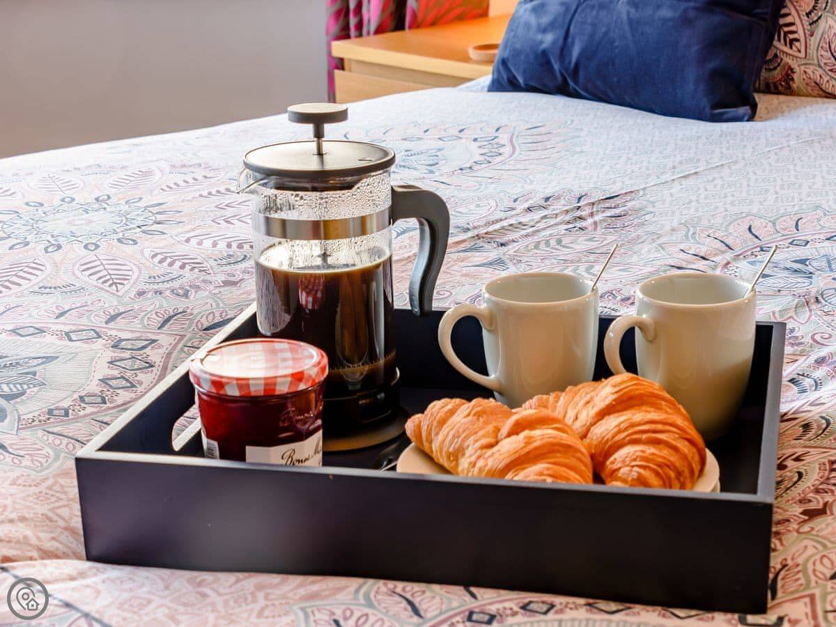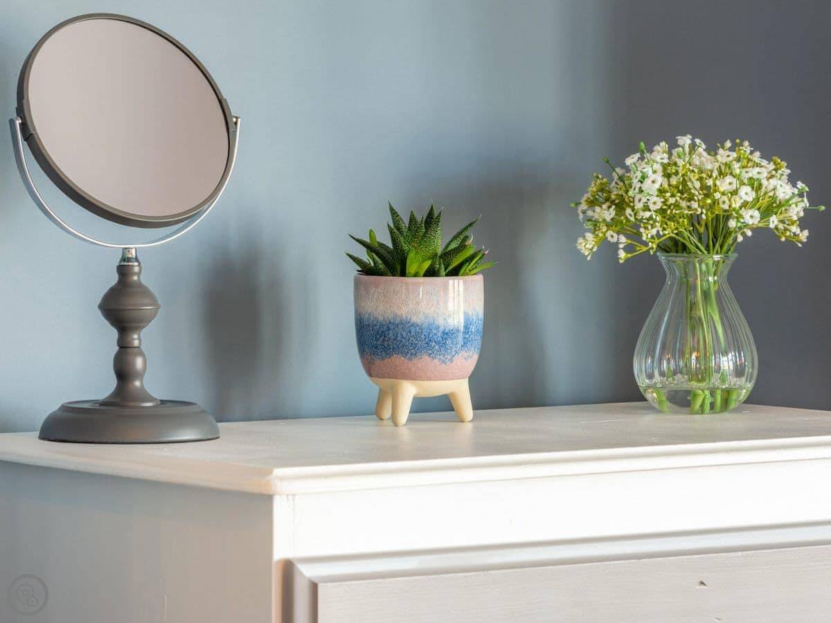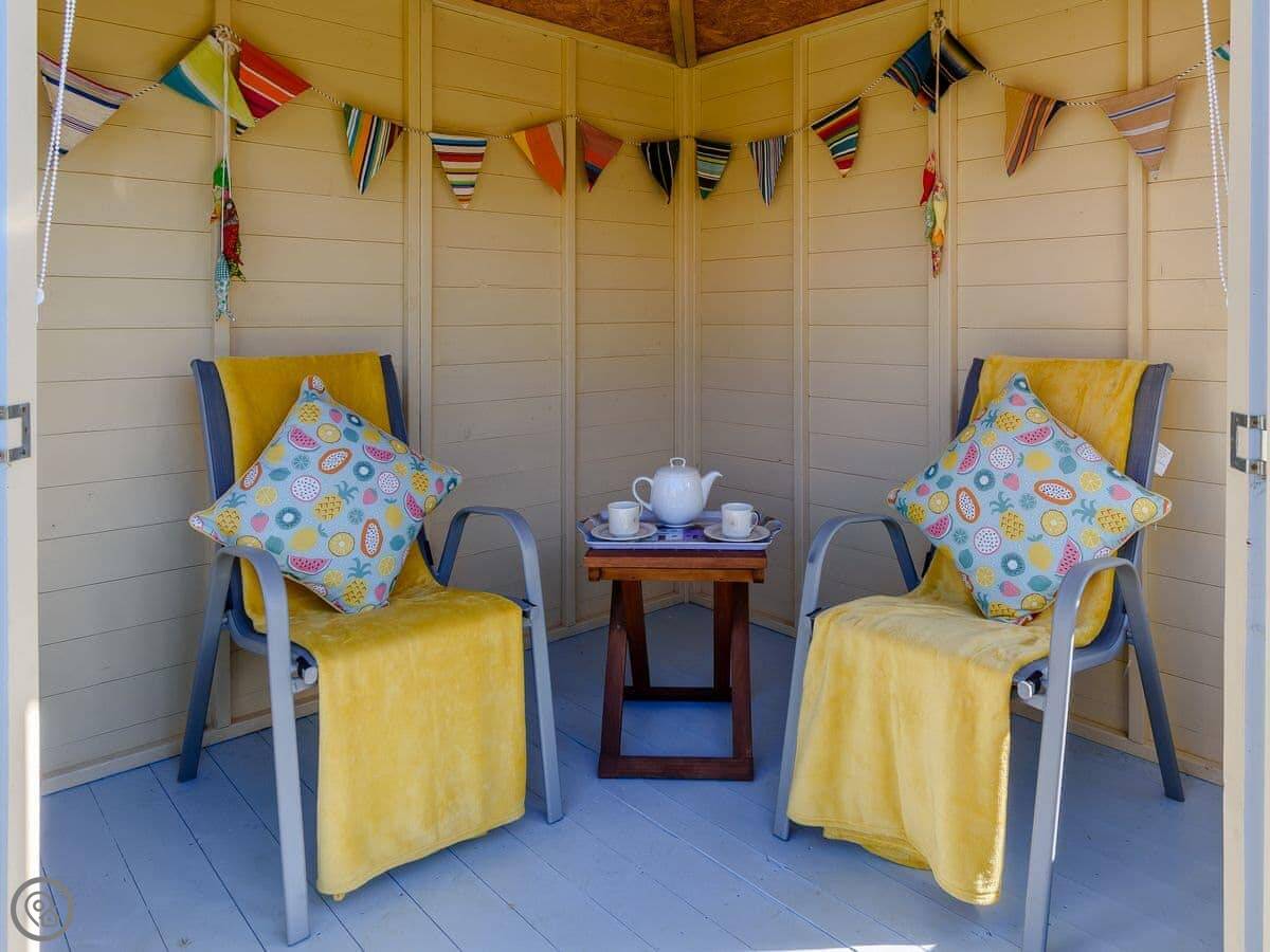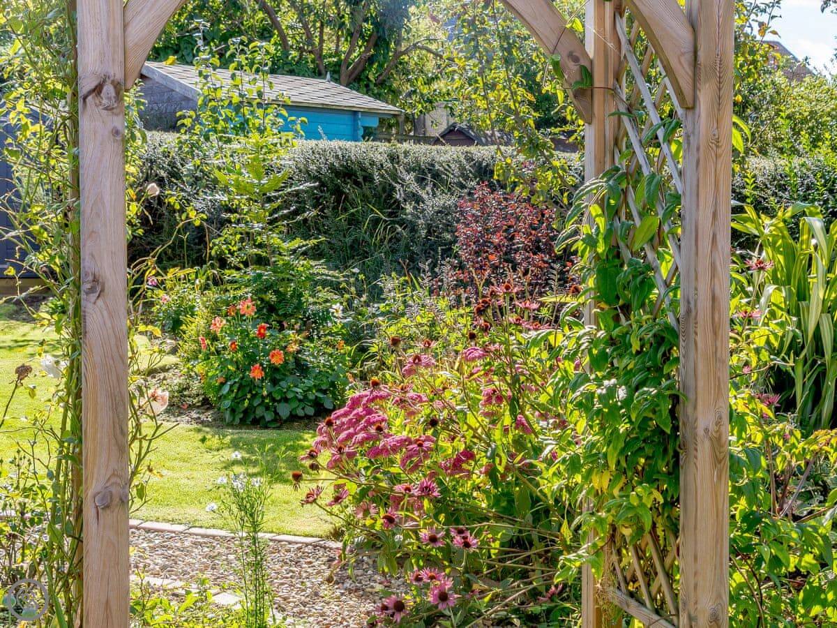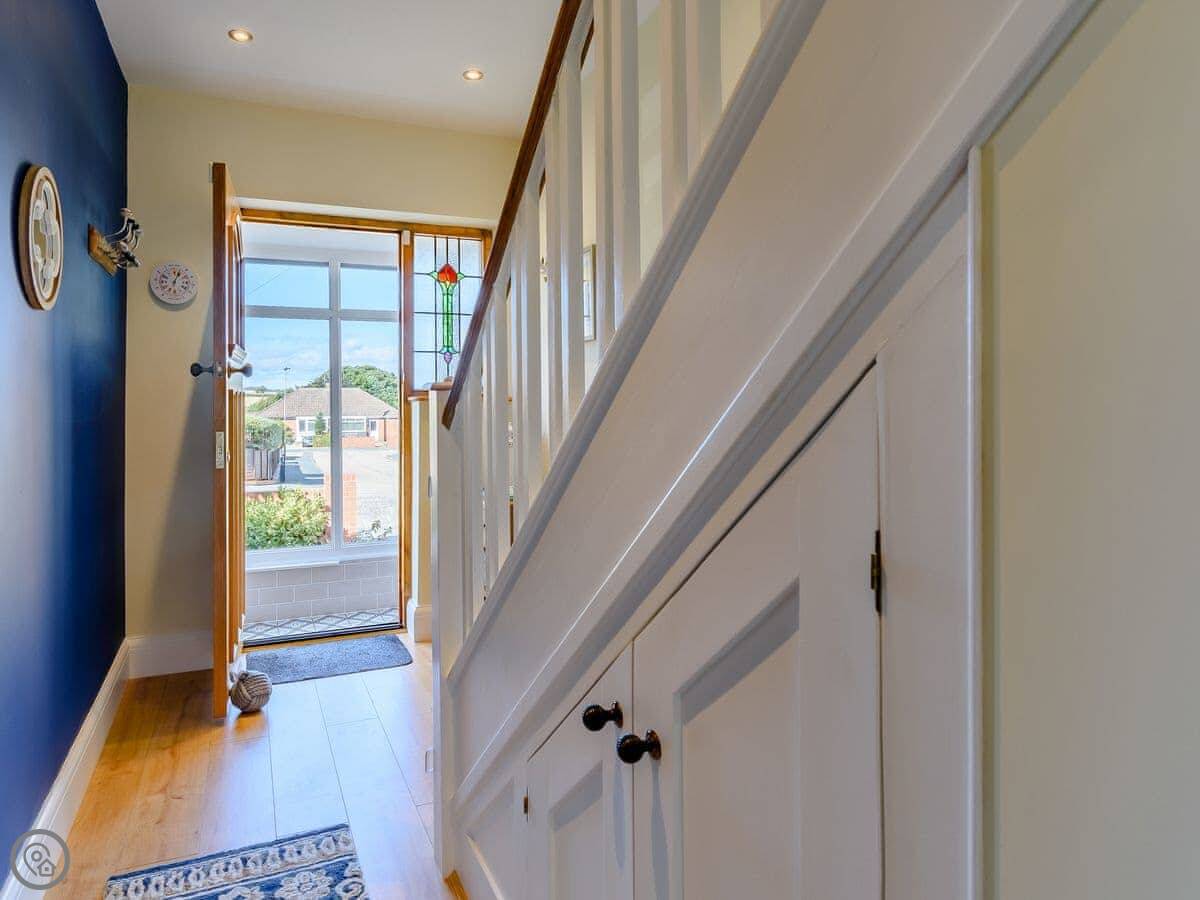 Sea Fever is a fabulous holiday cottage sure to make your holiday one to remember. Beautifully furnished throughout, with careful attention to detail, it has a long private driveway so that you can conveniently park on your doorstep. Inside you step into the hallway which branches out into the rooms. At the front you have the beautiful living room with sofas around the wood burner. There’s nothing like getting cosy in front of real crackling flames. The kitchen is at the rear of the property, with French doors looking out into the stunning garden, which is bursting with colour in the summer. The kitchen has lots of character, with sweeping wooden work tops, table and chairs for a comfortable family dinner and a range cooker beside the feature fireplace. This is a great social space for enjoying meals together, or even having a games night. On sunny days why not dine al fresco in the garden, enjoying the beautiful flowers which are a haven for bees and butterflies. There is a summerhouse out on the lawn, with seats so that you can sit out peacefully in the garden, with only birdsong to break the silence. Also outside you have a utility room adjacent to the kitchen, which is ideal for washing towels and drying wetsuits after a day out at the beach. The ground floor is complete with a convenient toilet. Upstairs you have the family bathroom with a shower over the bath. There are three bedrooms, each room has built in wardrobes for all of your belongings.