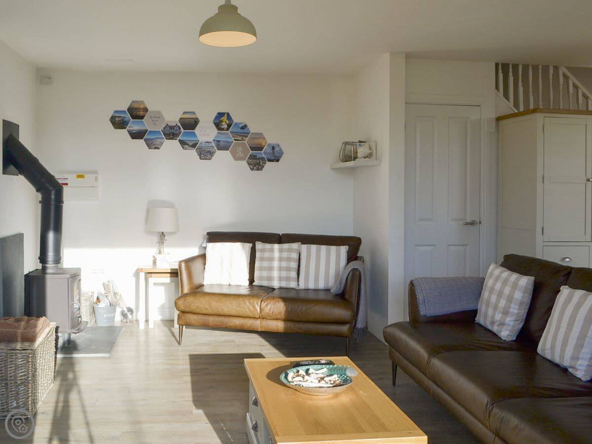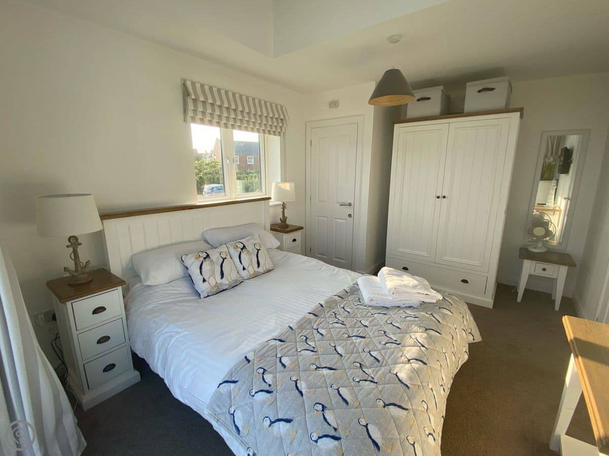 It sleeps four. Two bedrooms: one kingsize, one with bunk beds. It's a 4 Star, so it's well-fitted. The stairs are open-tread, so mind your step.
