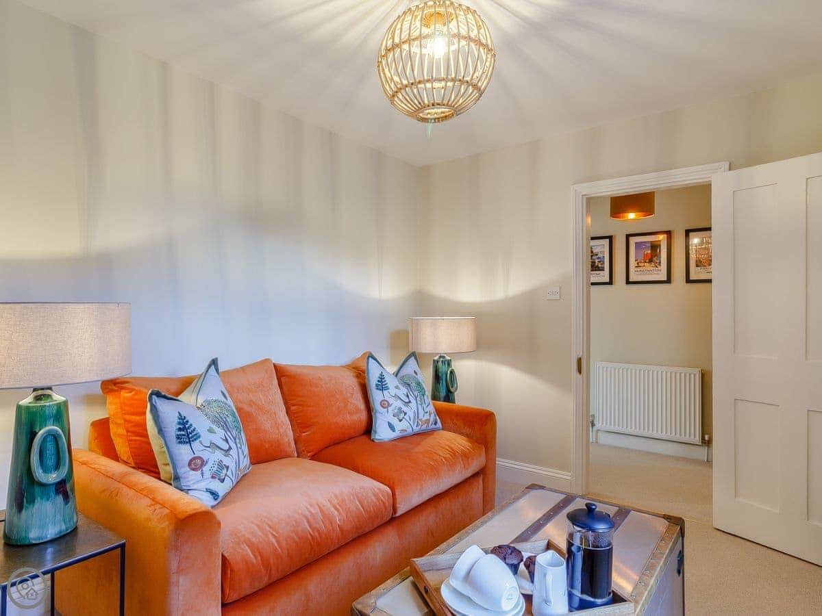 It's got a 5 Star rating. That means it's been finished to a high standard. The owners use it themselves, so it's well looked after. There are two sitting rooms. One has a sofa bed. The kitchen is a good size. The dining area has doors that open to the garden. The garden is enclosed and private.