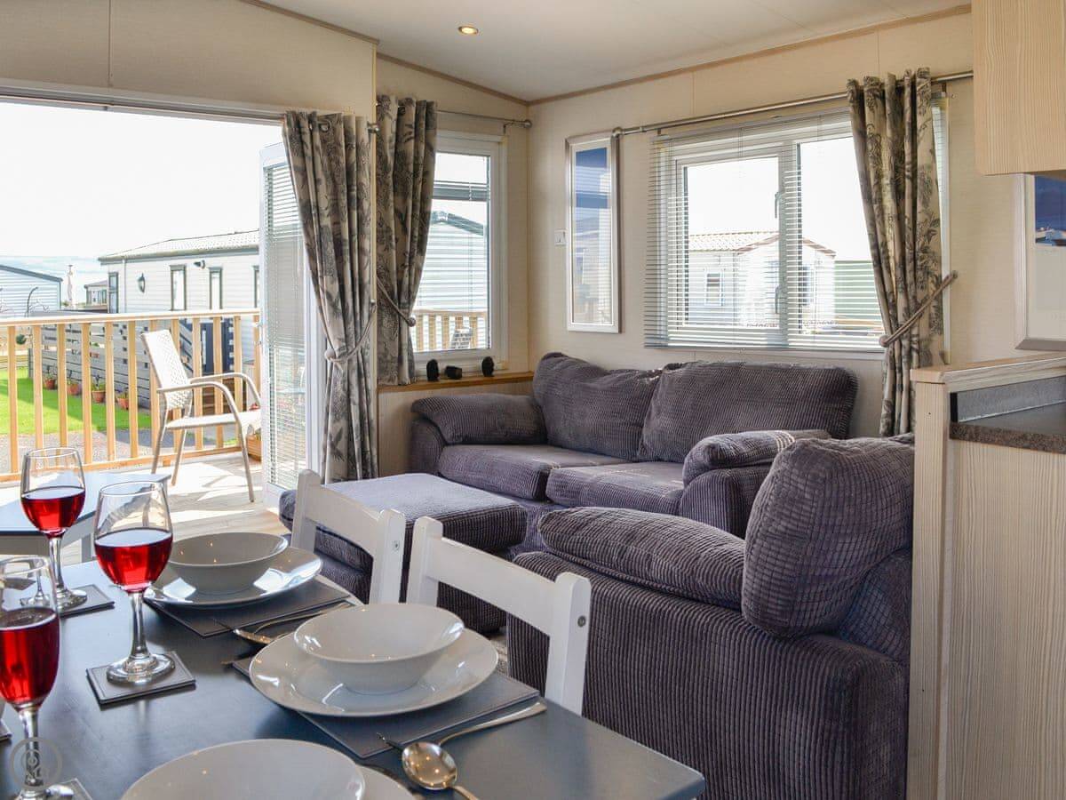 Loch View is a static caravan on the Wig Bay Holiday Park, near the village of Kirkcolm. It's detached and set back a bit from the main road through the park, so it's fairly quiet. You look out over the fields towards Loch Ryan. You can see a good slice of the water from the front windows and the decking.