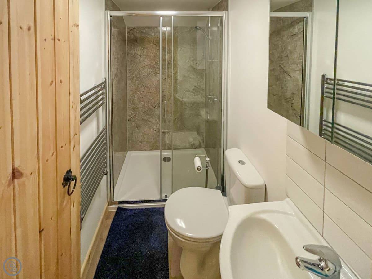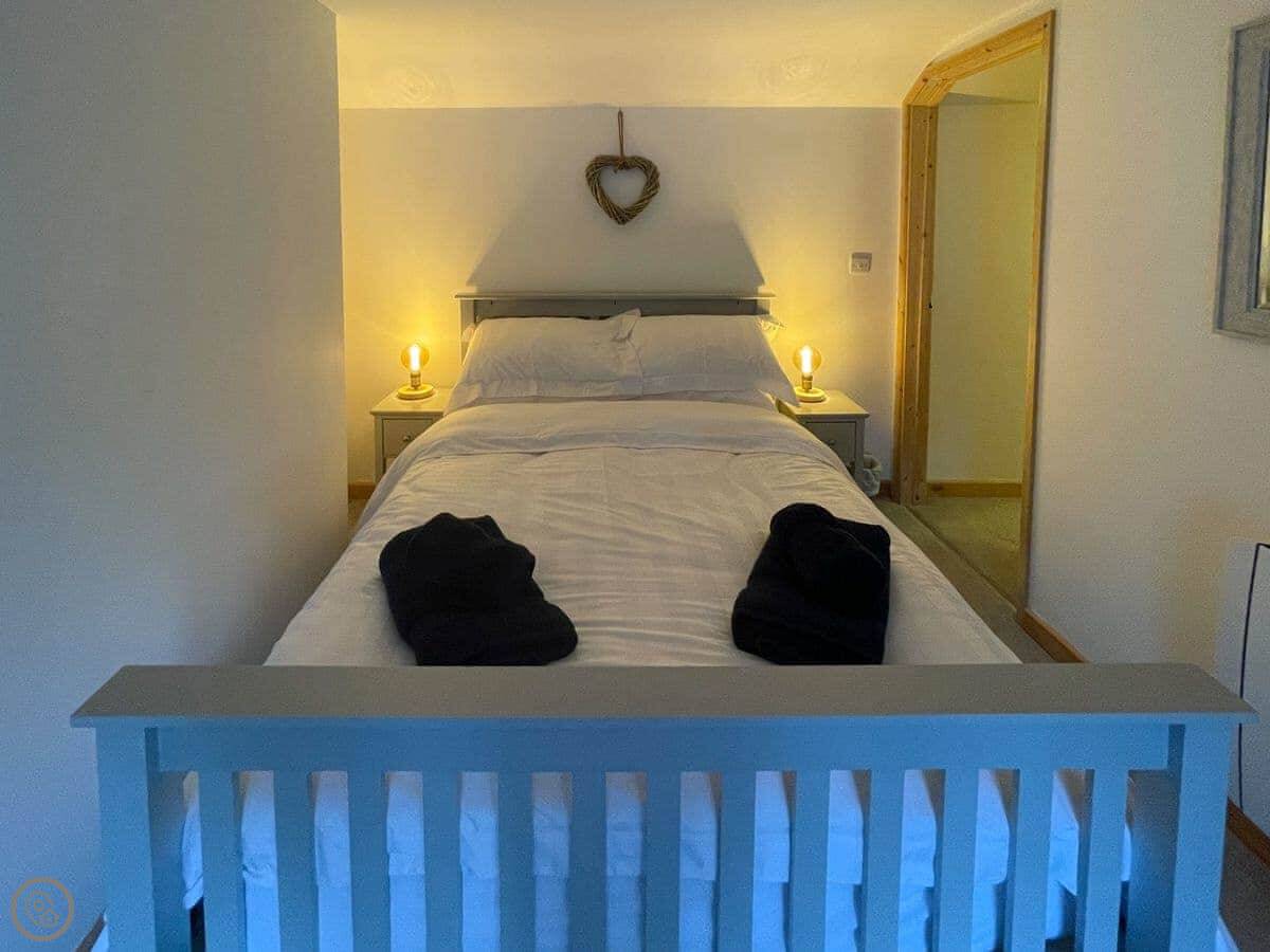 It sleeps five. Three bedrooms, two doubles and a single. There's one bathroom with a walk-in shower. It's got a 5 Star rating, which means it's well-equipped and finished to a high standard.