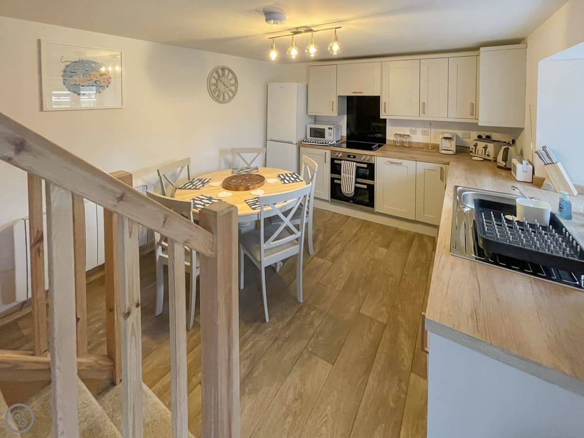 Facilities: it's got everything you'd expect. Washing machine, dishwasher, WiFi, parking on site. Bedding and towels are included. We allow up to two dogs. There's a cot and a highchair if you need them.