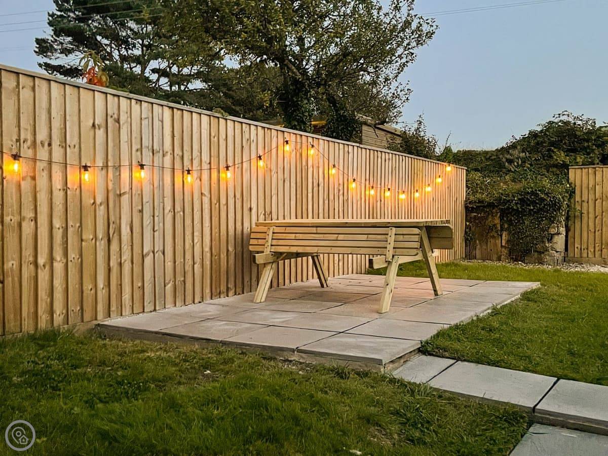 The garden is south-facing, so it gets the sun. It's enclosed by a small fence and a Cornish hedge.