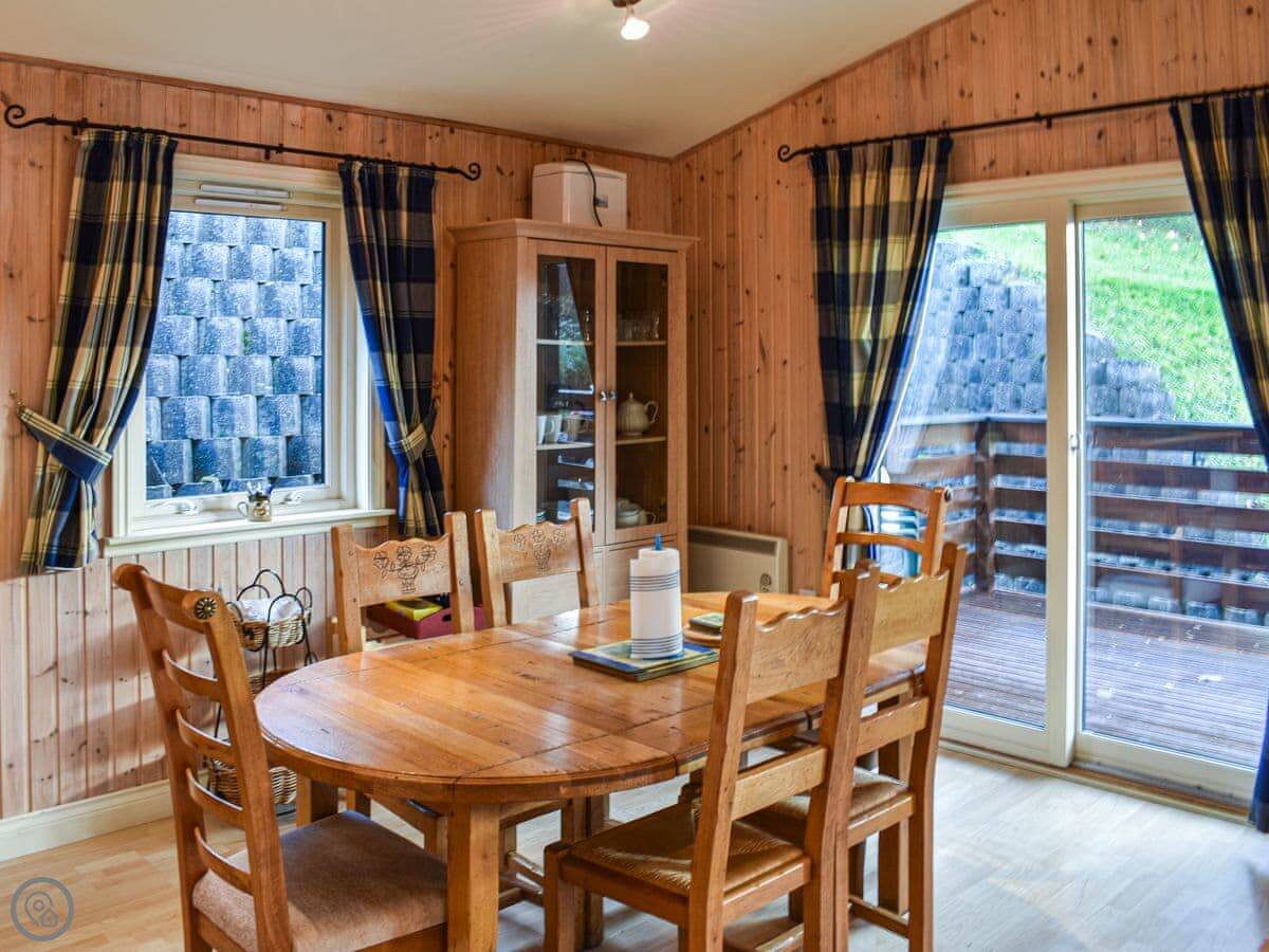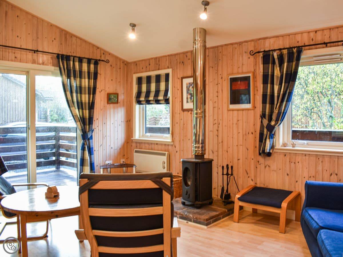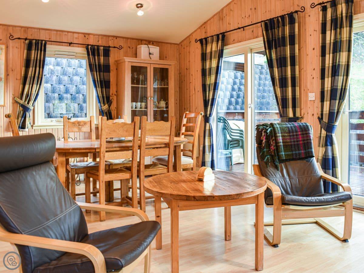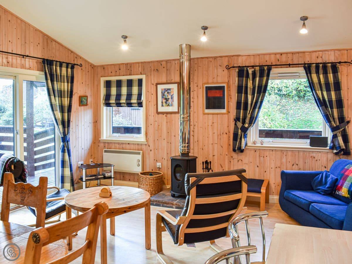There's a big deck outside with seating. You get a good view from it. The whole place is part of a small development of similar lodges, so it's quiet but you're not completely isolated.