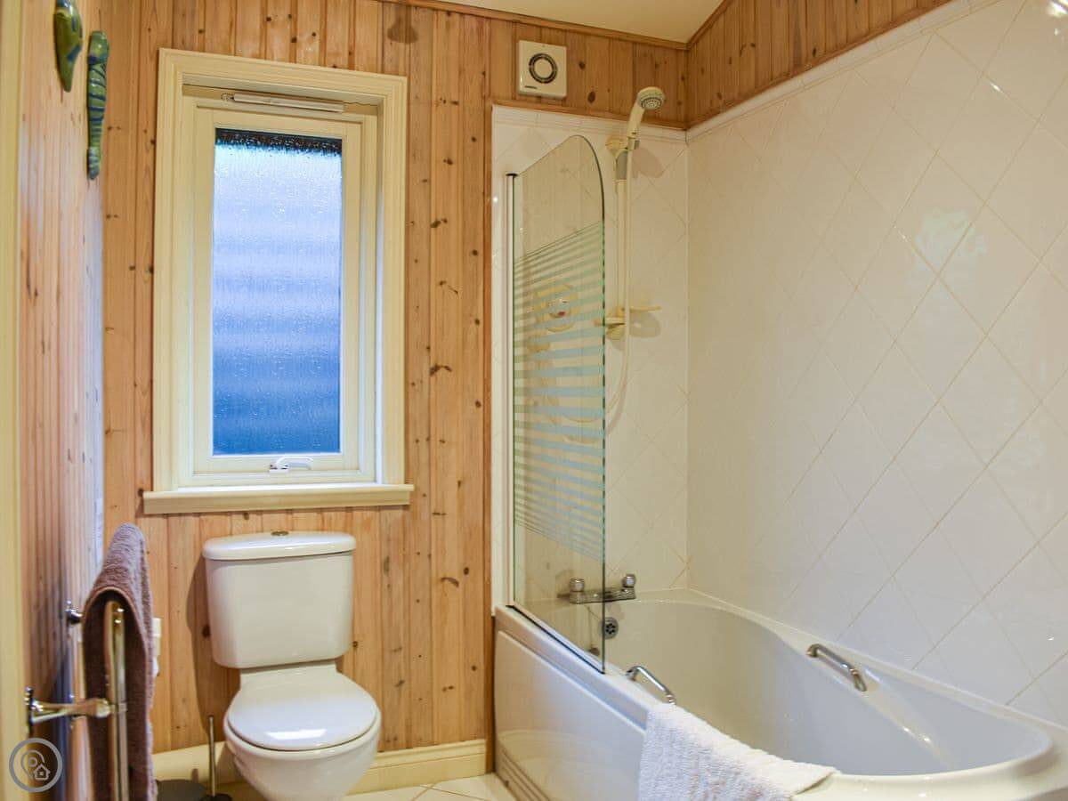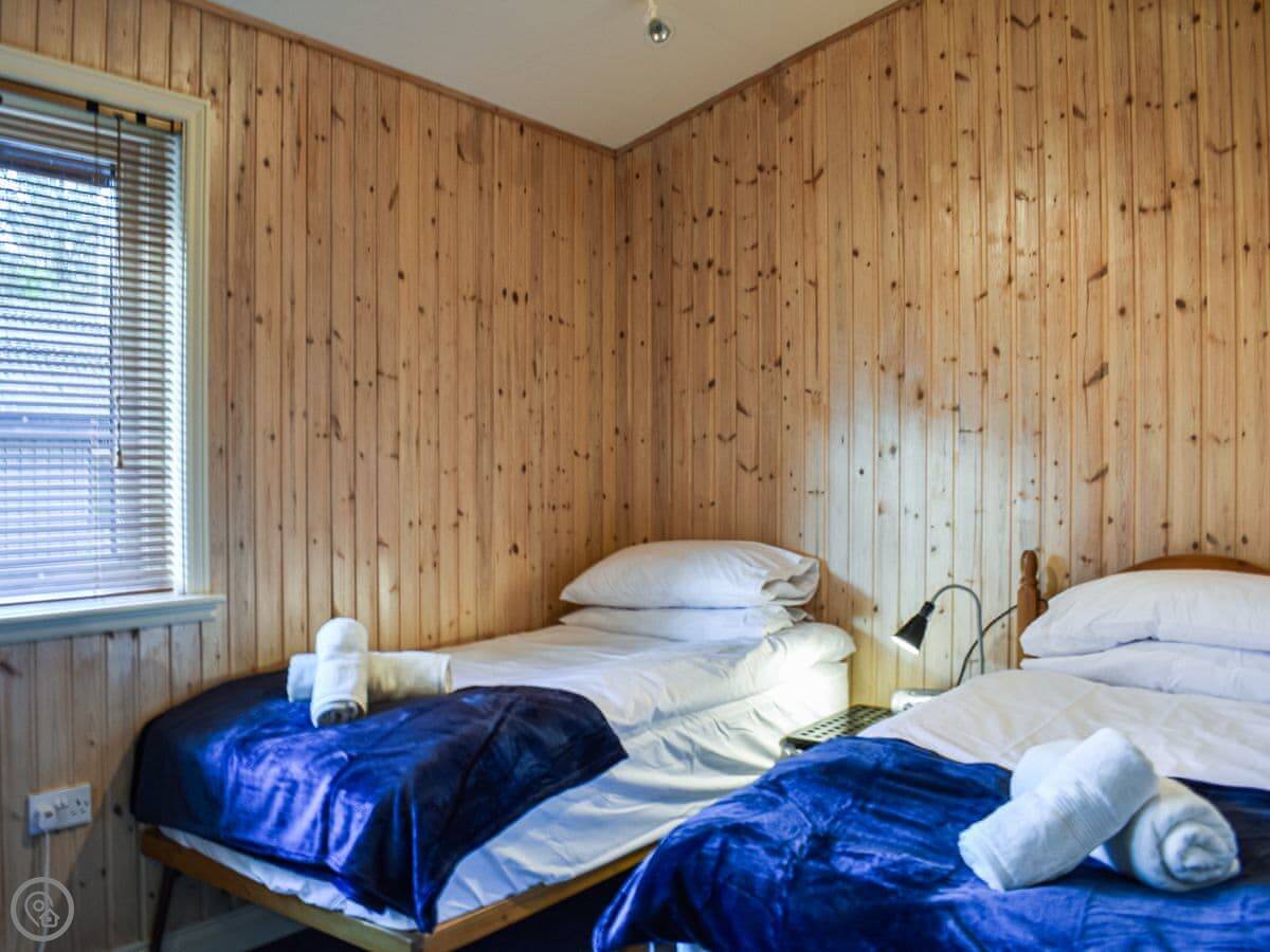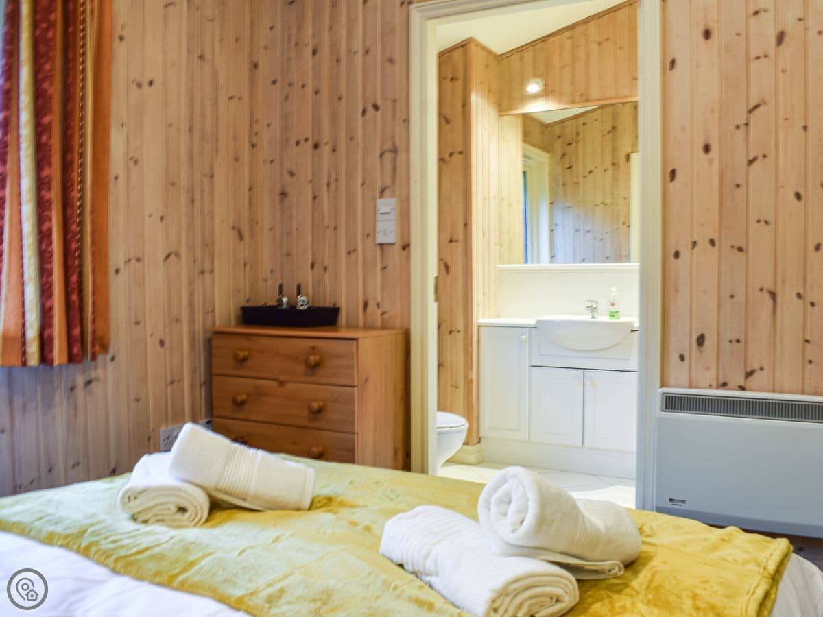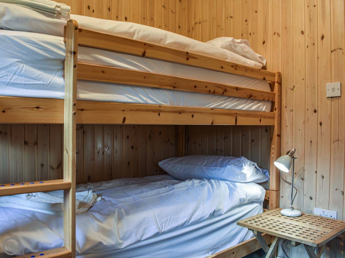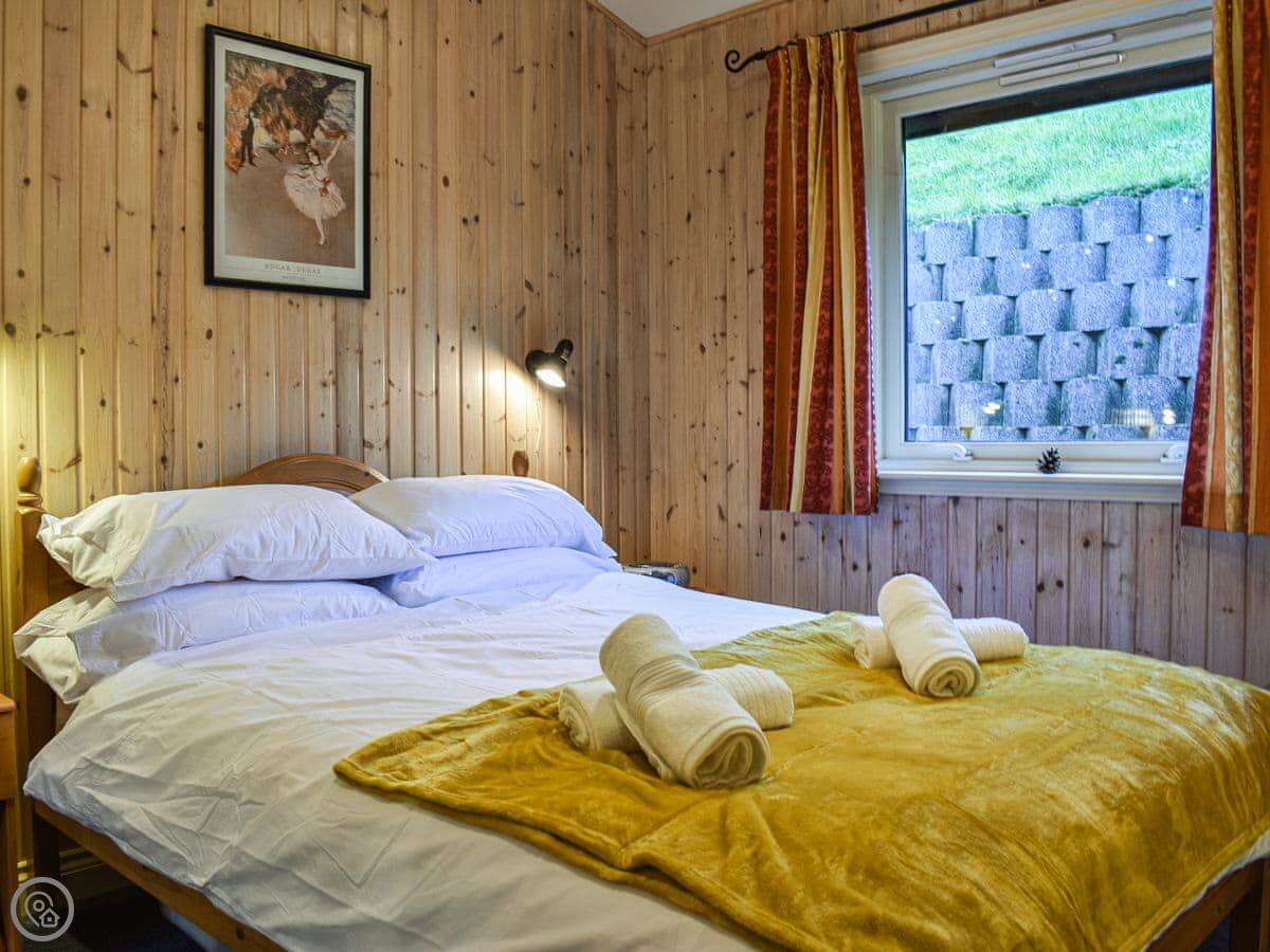There's a big deck outside with seating. You get a good view from it. The whole place is part of a small development of similar lodges, so it's quiet but you're not completely isolated.