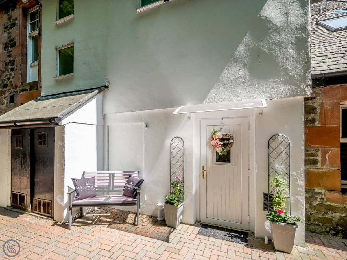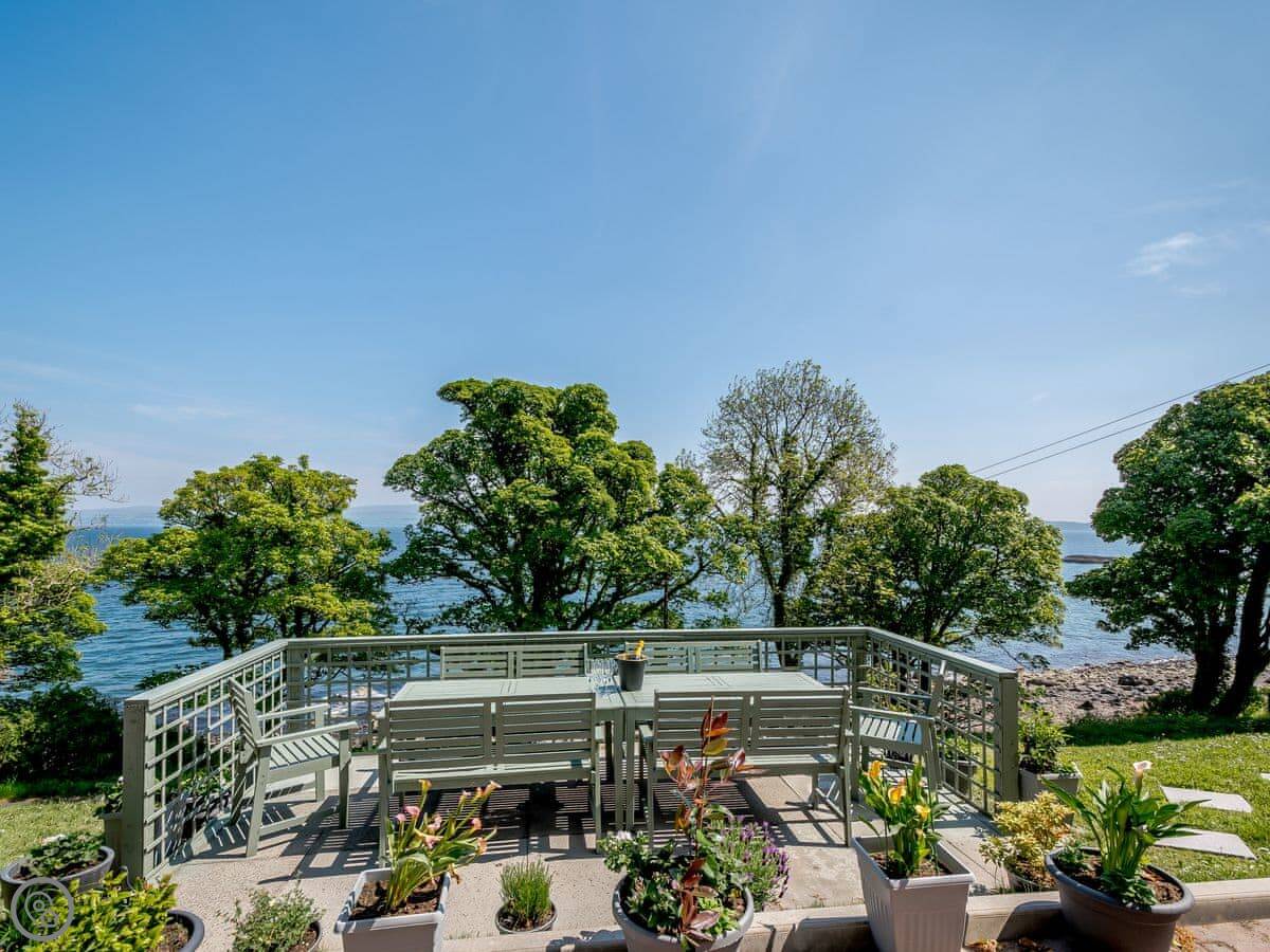 Chandlers Apartment is in Ascog on the Isle of Bute. It's a detached ground floor apartment. The immediate setting is rural, but you're right by the shore. The view from the windows and the patio is over open water.