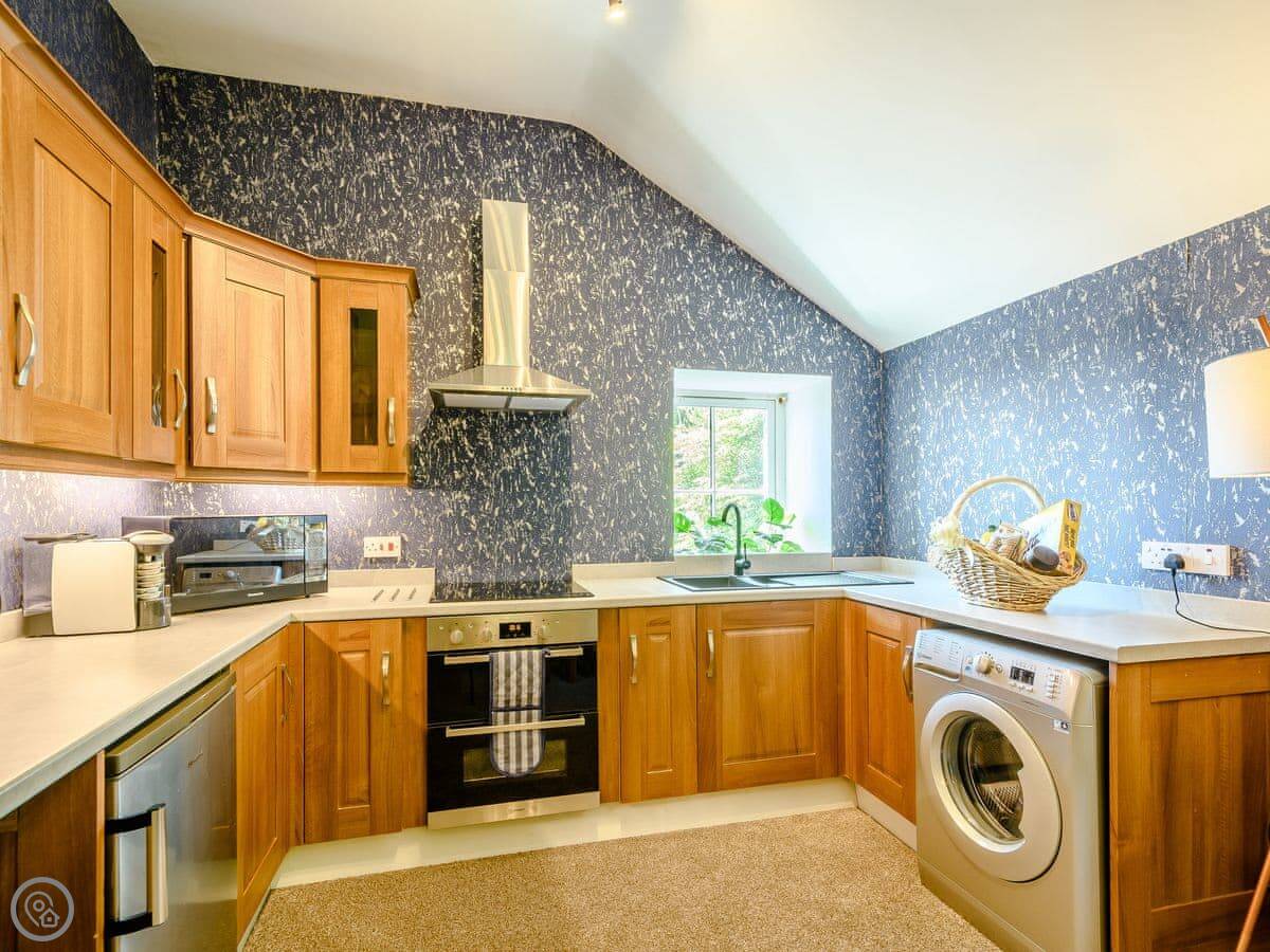 As for facilities: it's open plan inside. There's a washing machine, TV, and WiFi. Bedding and towels are all included. There's a cot and a highchair if you need them. Parking is right there.
