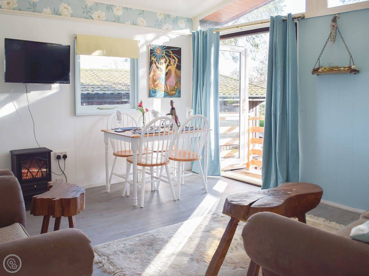 Twit Too Woo is one of two lodges on Penlan holiday park. It's a Scandinavian-style lodge, so it's all wood and big windows. It's detached and has a wraparound deck.