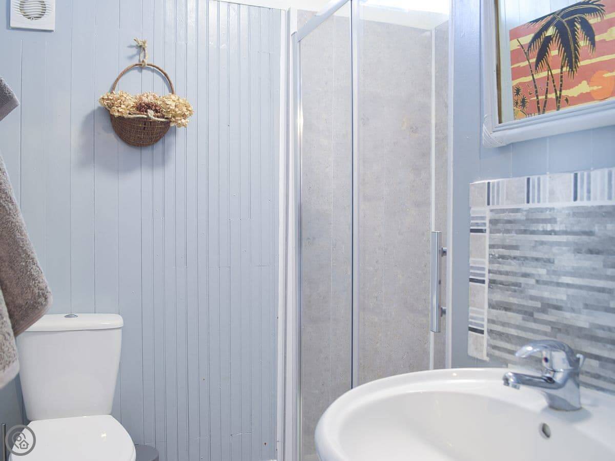 It sleeps five, in two bedrooms. They're both on the ground floor. One bathroom with a shower. It's a 3 Star place, so it's comfortable and clean. The kitchen is galley style, which means it's a bit narrow. It does the job.