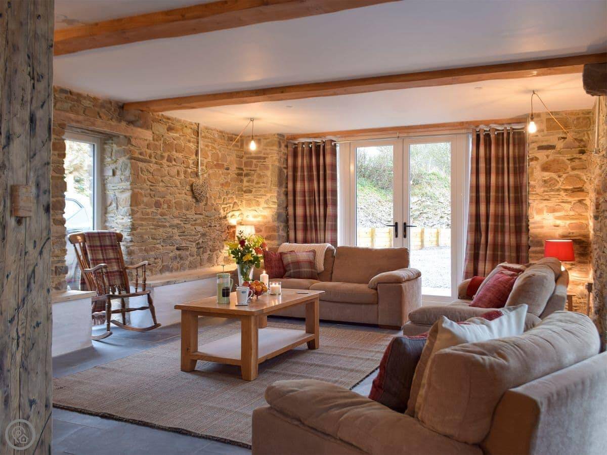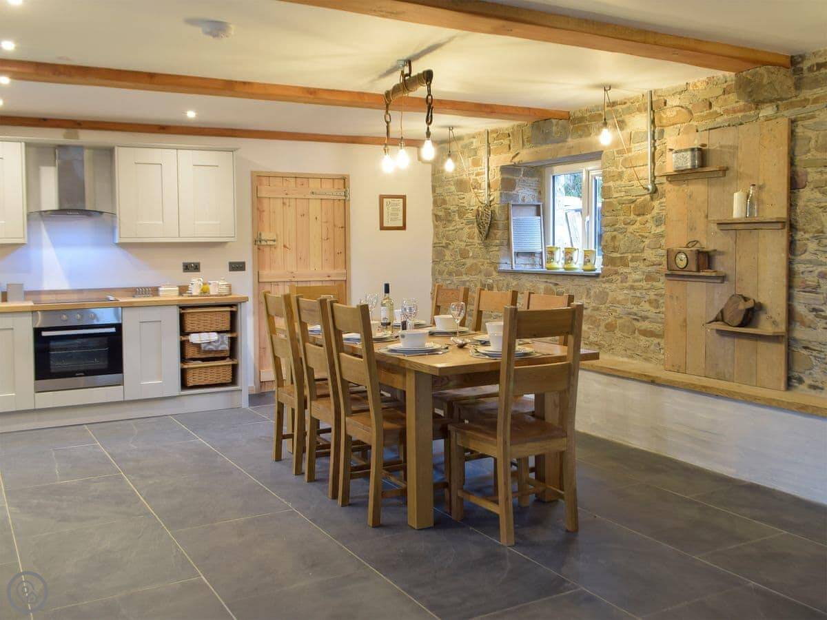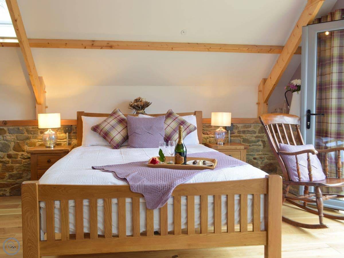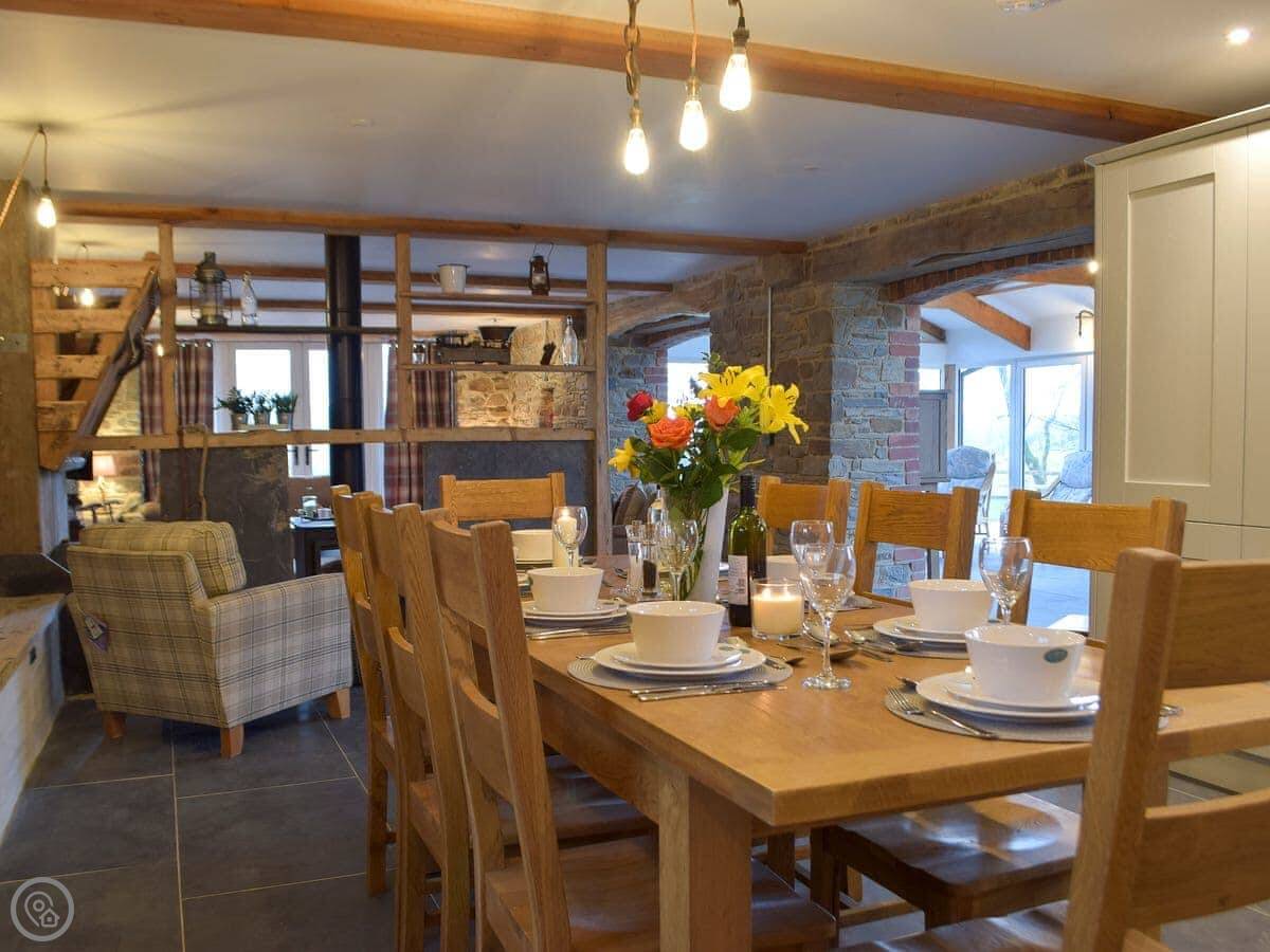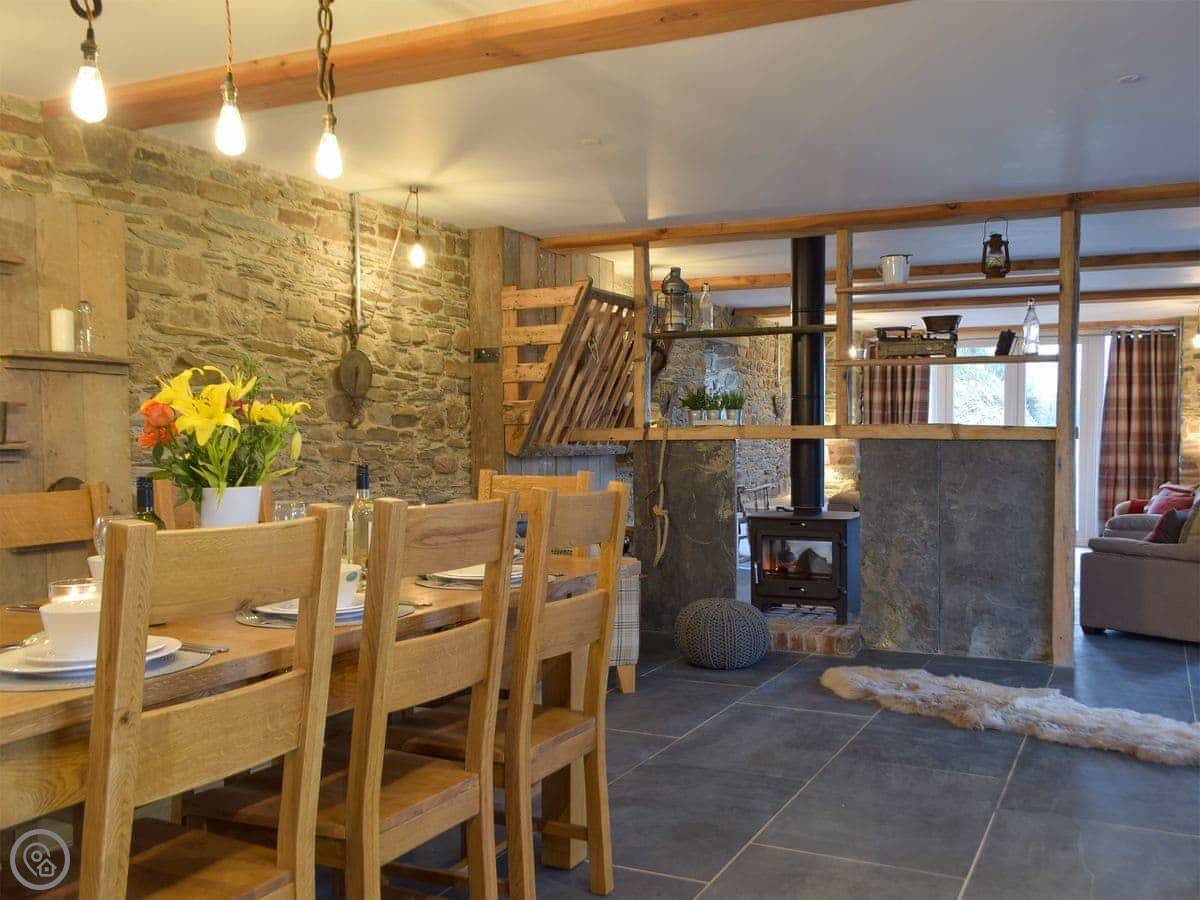 Cwm Hyfryd is near Llanboidy. It's a converted barn, which means stone walls and open beams. The floors are slate in places, so they can be a bit cold on bare feet. It's proper detached and quiet.
