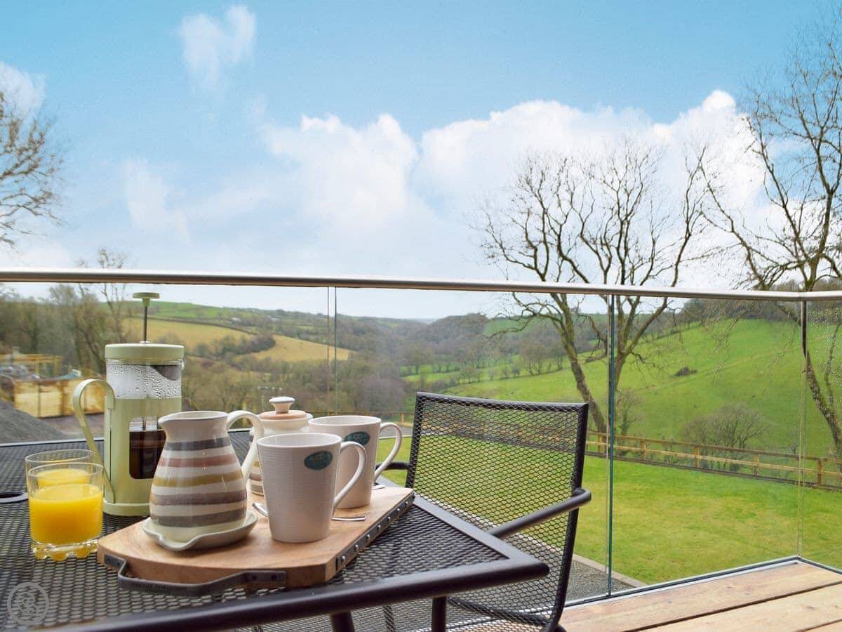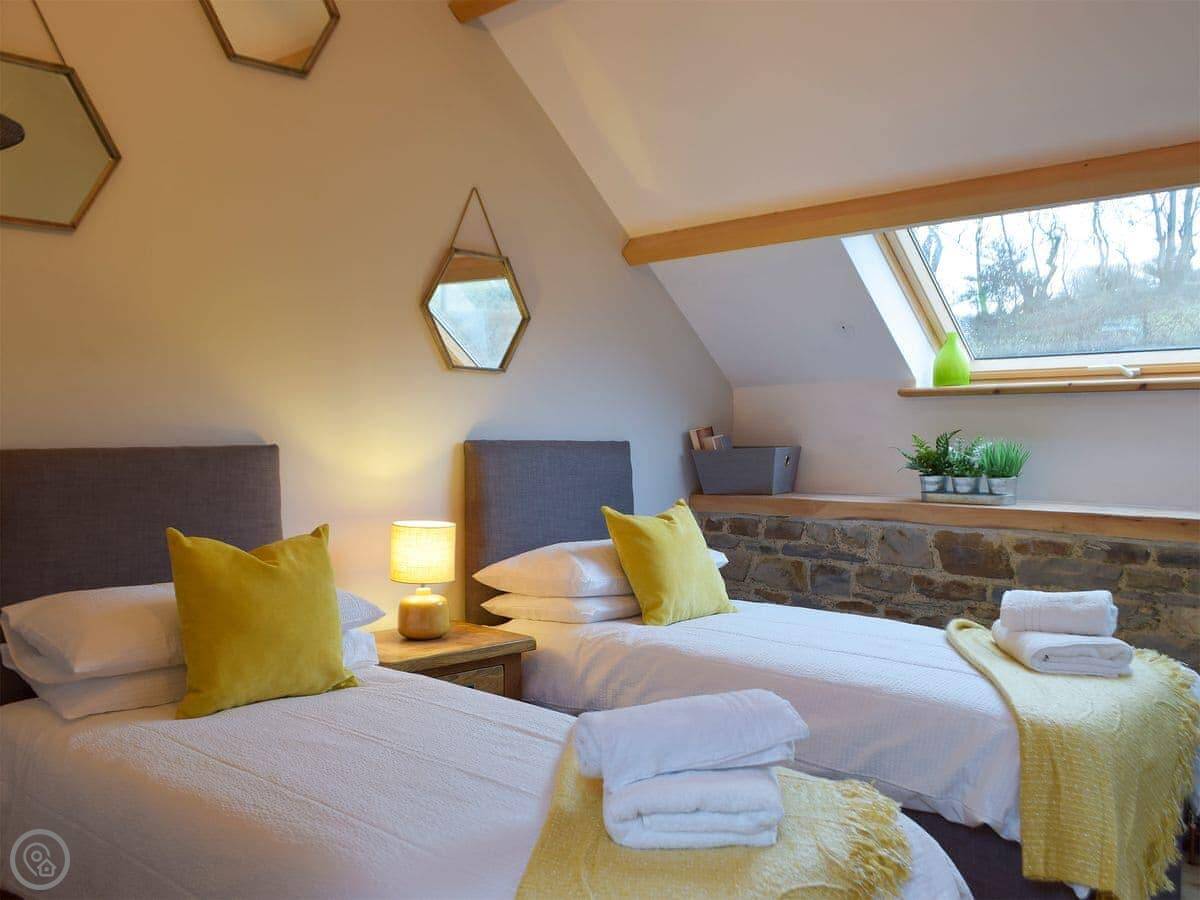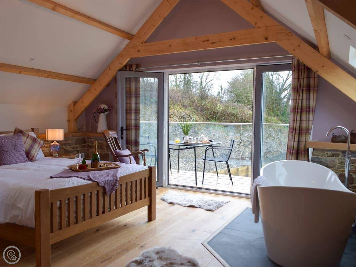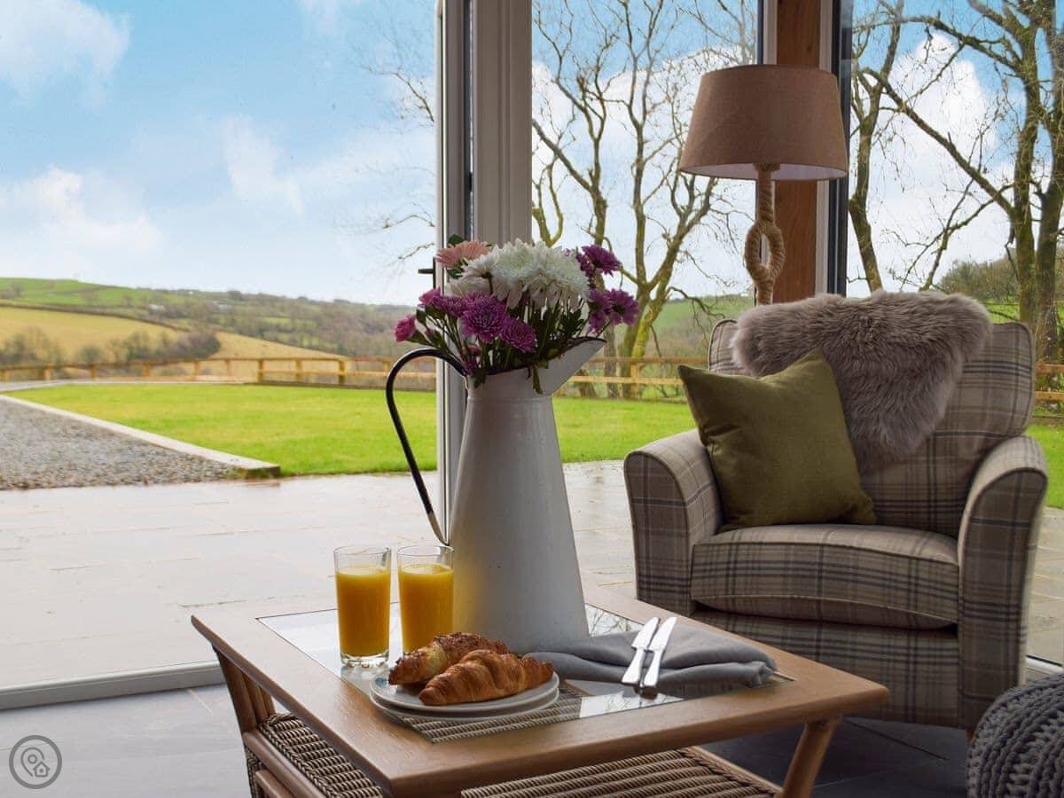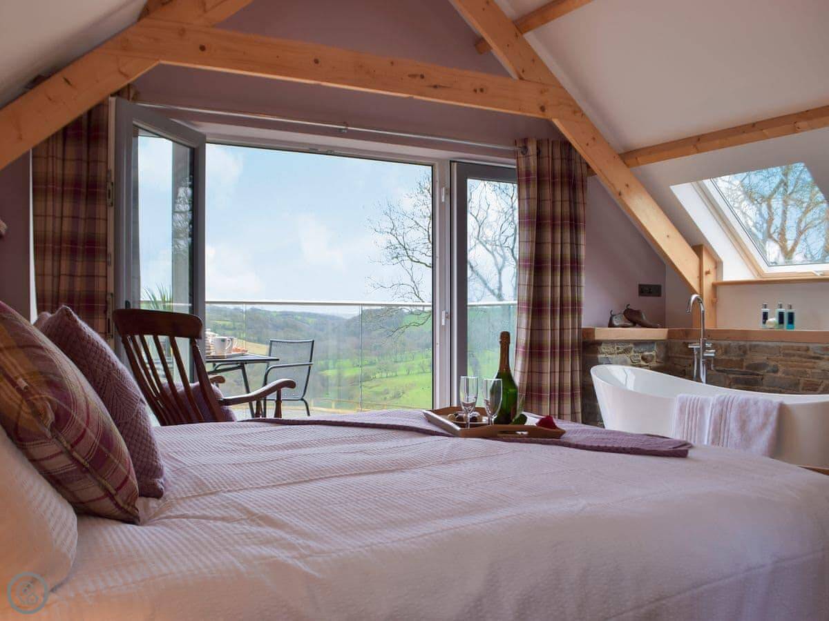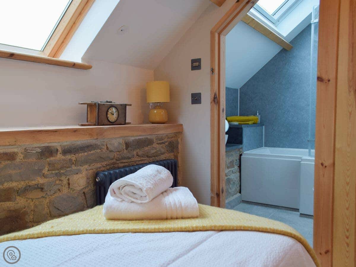 Cwm Hyfryd is near Llanboidy. It's a converted barn, which means stone walls and open beams. The floors are slate in places, so they can be a bit cold on bare feet. It's proper detached and quiet.
