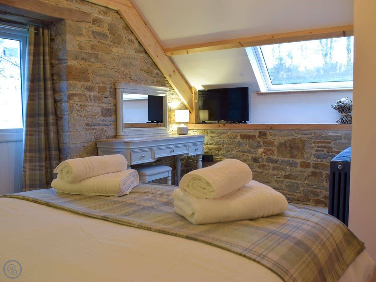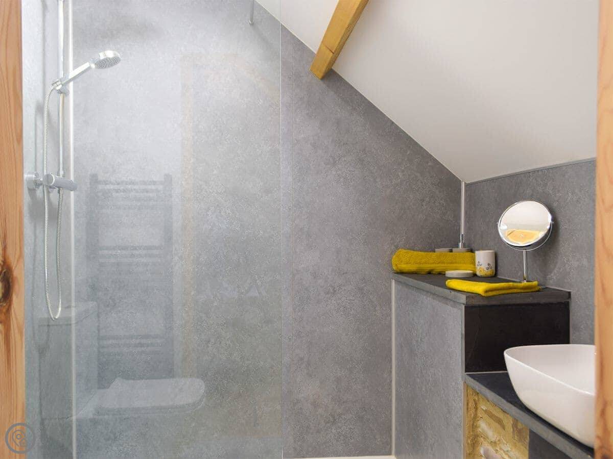It sleeps eight, in four bedrooms. They all have their own en-suite shower rooms, which is handy with a group. The stairs to the first floor are quite steep, barn stairs. There's a ground floor bedroom and shower room as well for easier access.