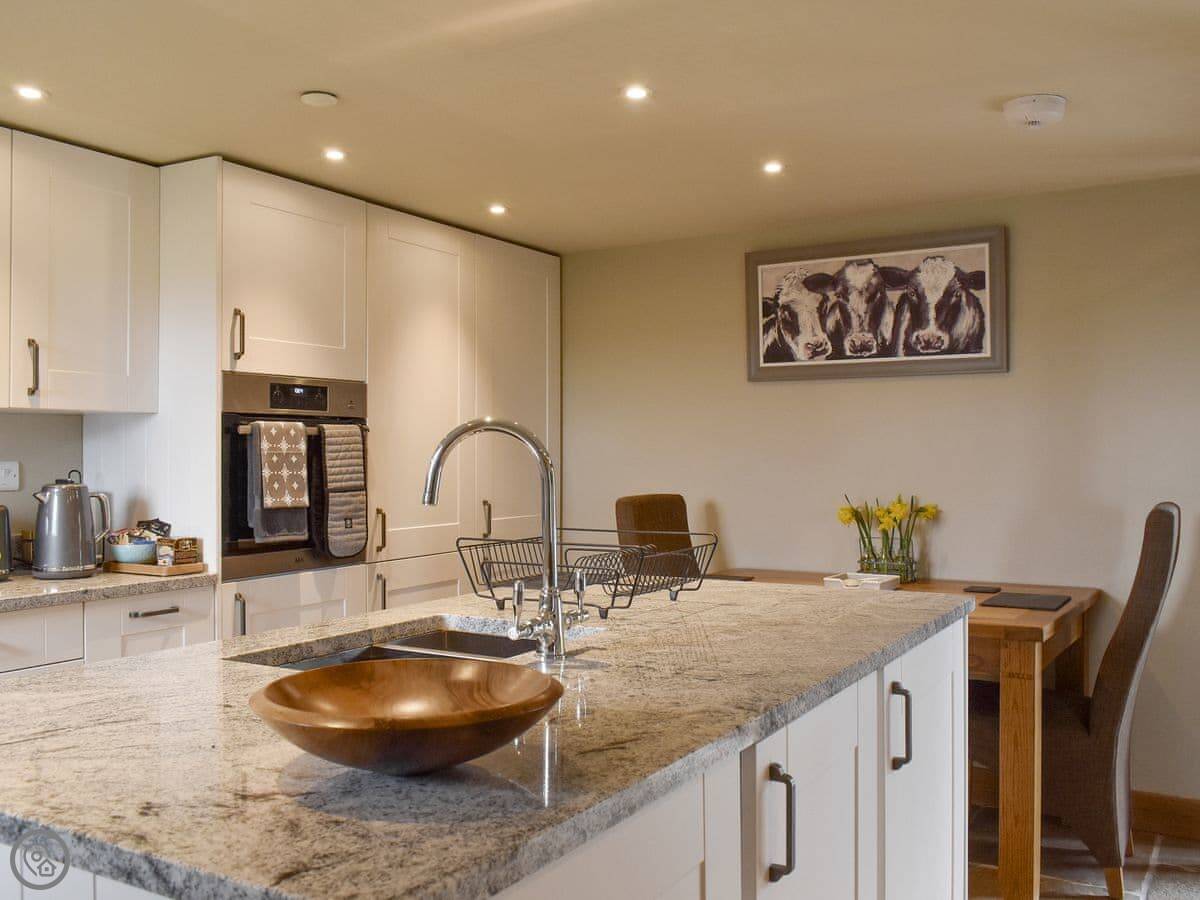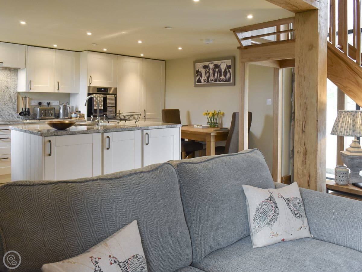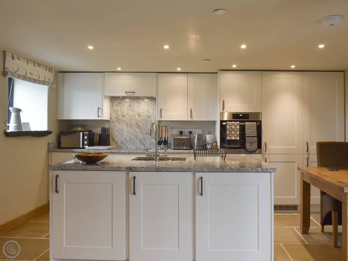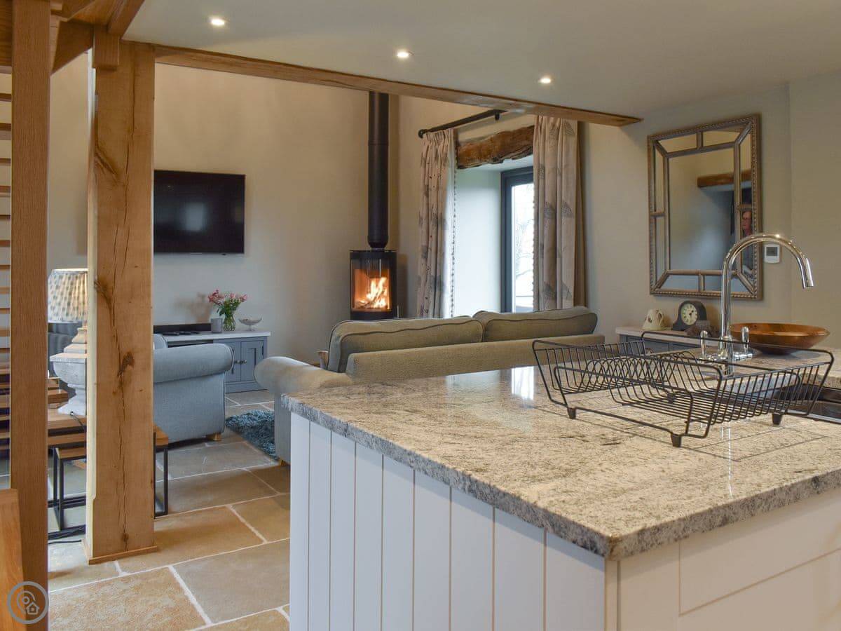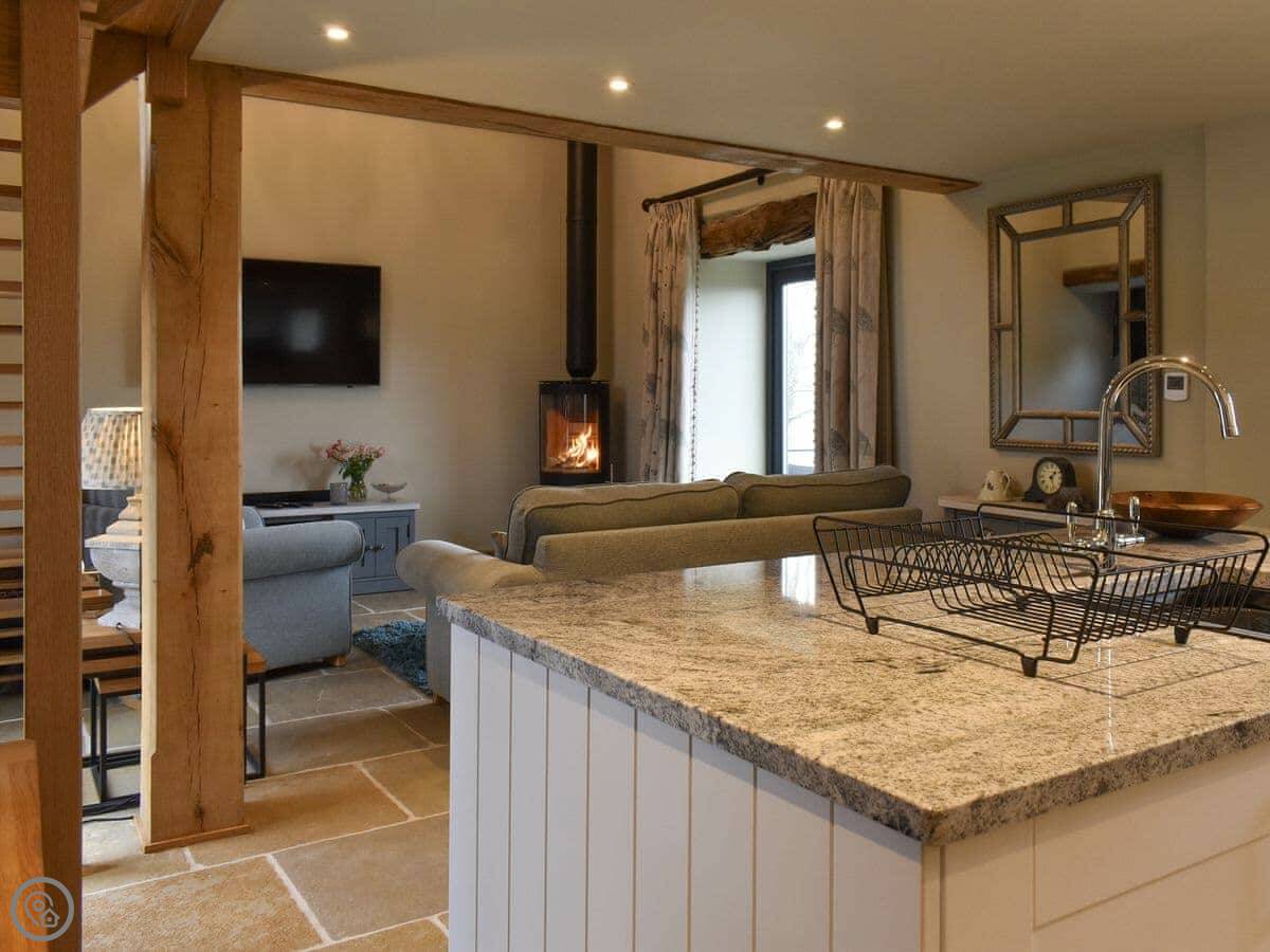 It's a one-bedroom place, just for two people. It's got a 5 Star rating. The kitchen is new and has everything you need, including a washing machine. The living area is all open-plan. There's a wood burner for colder nights.