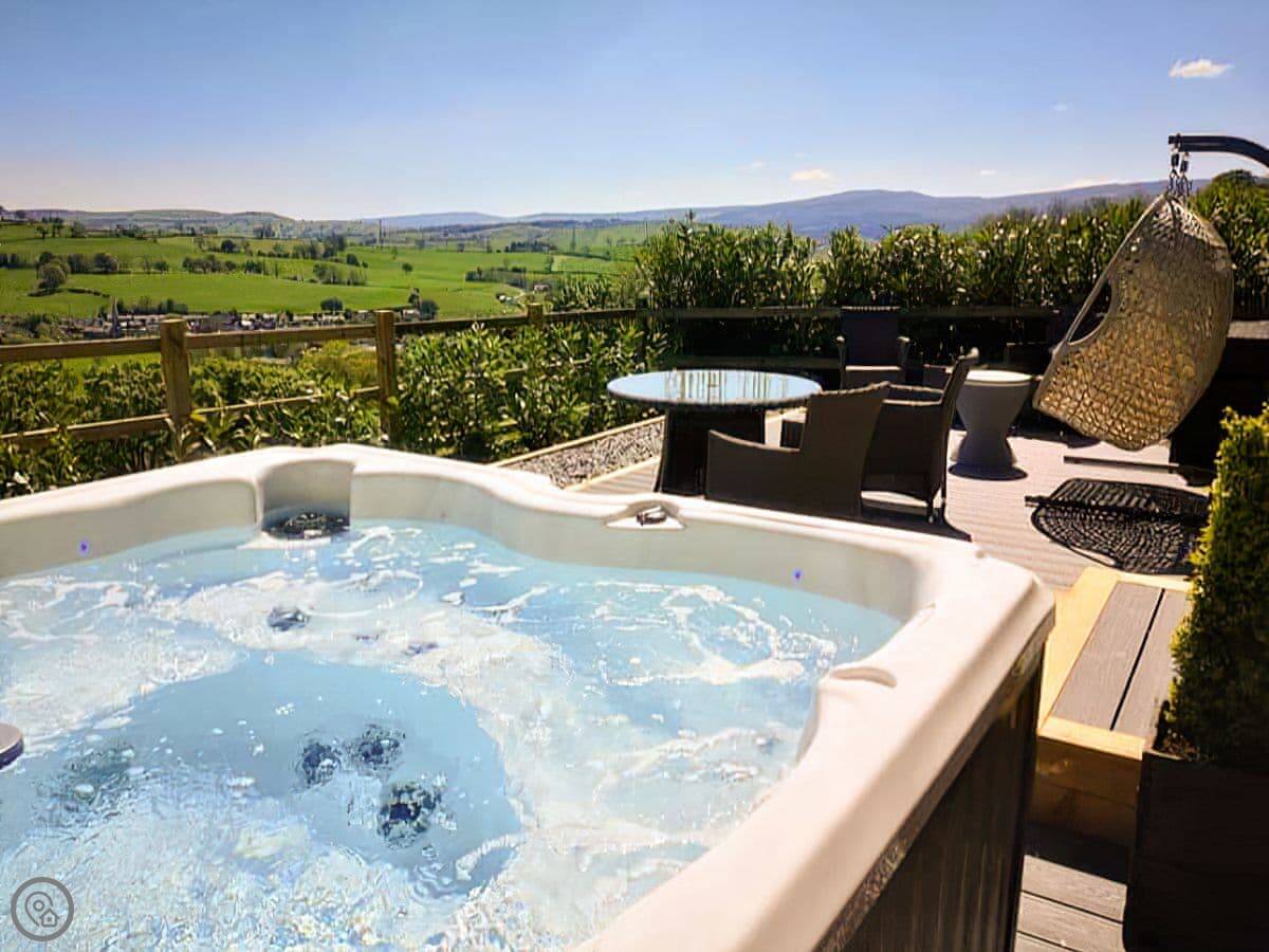 Outside there's a patio garden and a hot tub.