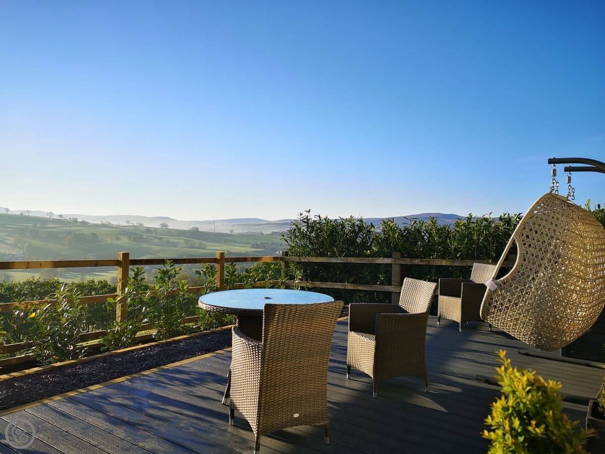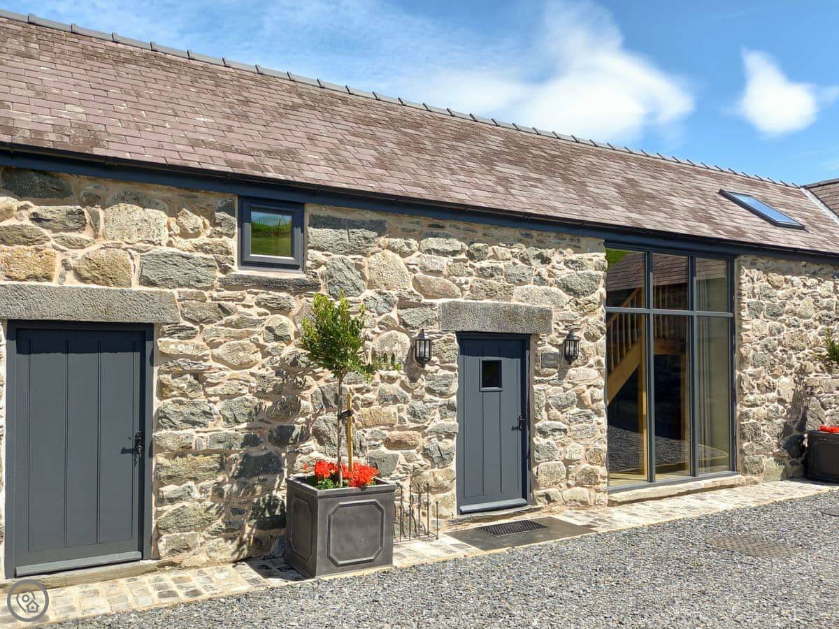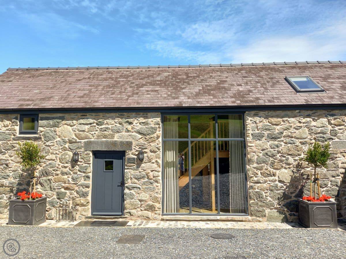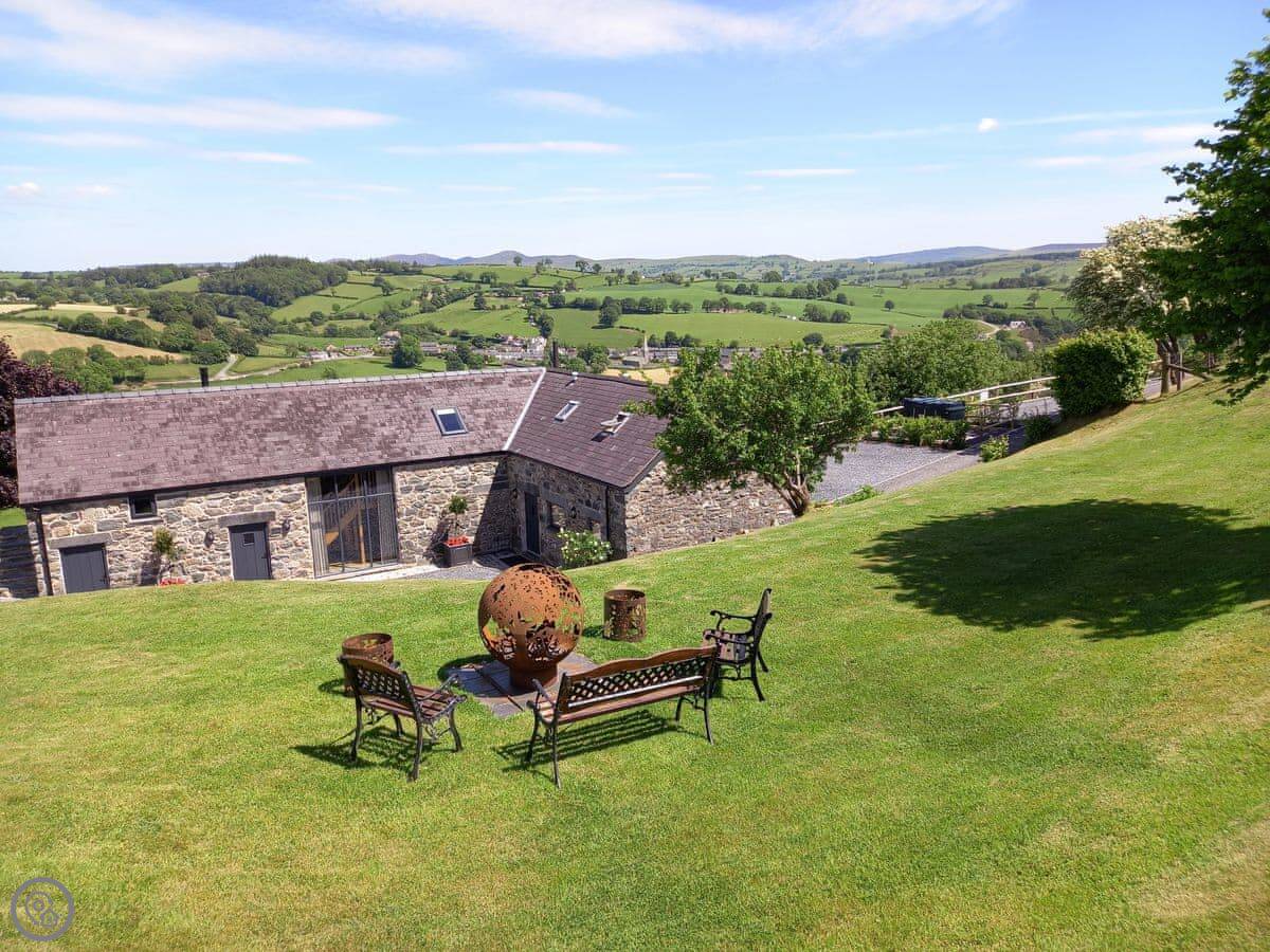 The Shippon is in Gwyddelwern in Denbighshire. It's a converted stone barn. The views from the front, over the village and towards Cadair Berwyn, are very good. You can sit outside on the patio and take it in.