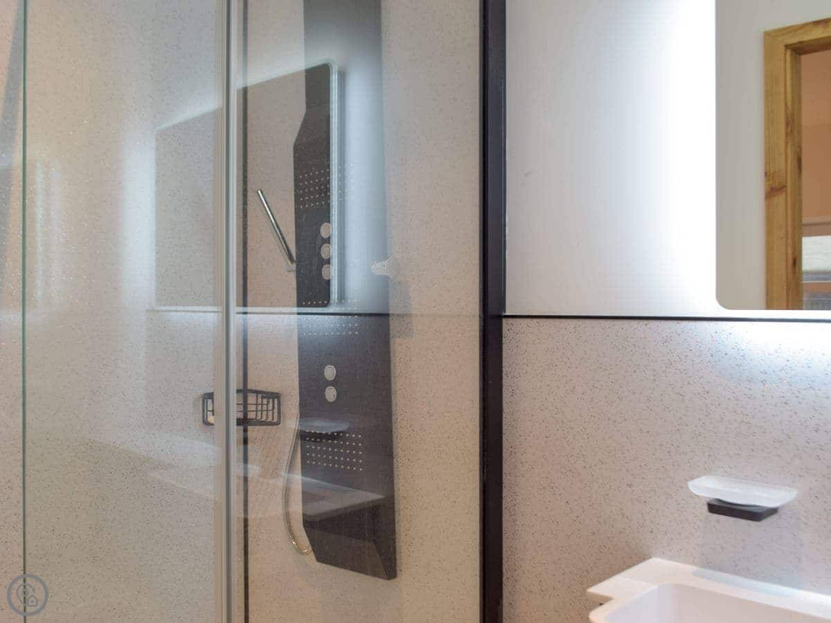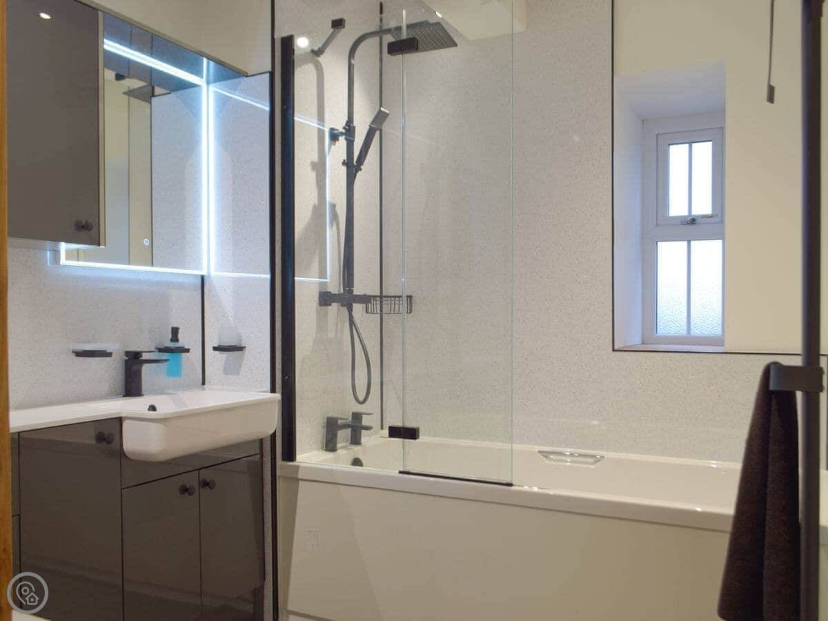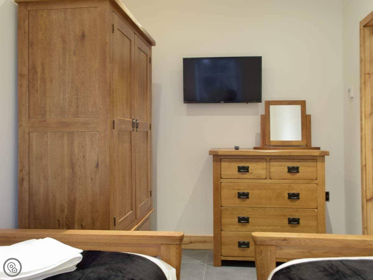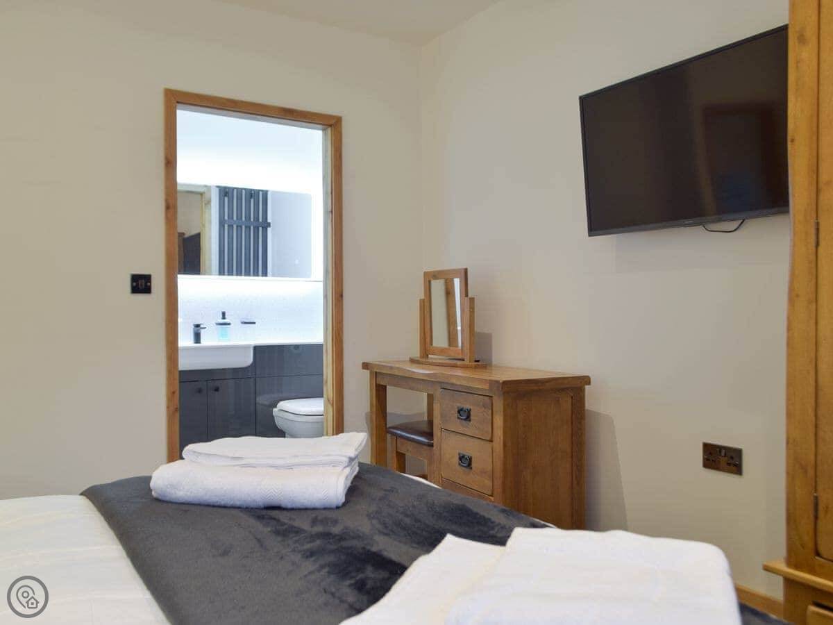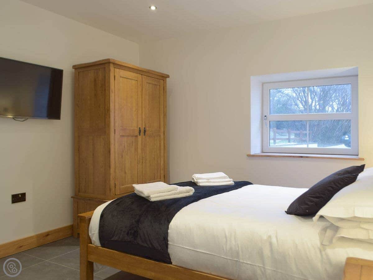 It's a detached stone barn that sleeps four. Two bedrooms, both doubles, and two bathrooms. It's got a 5 Star rating, which means it's well put together and comfortable. It used to be a cow shed, then it was a ruin, but we've rebuilt it properly. It's on our land but it's completely private.