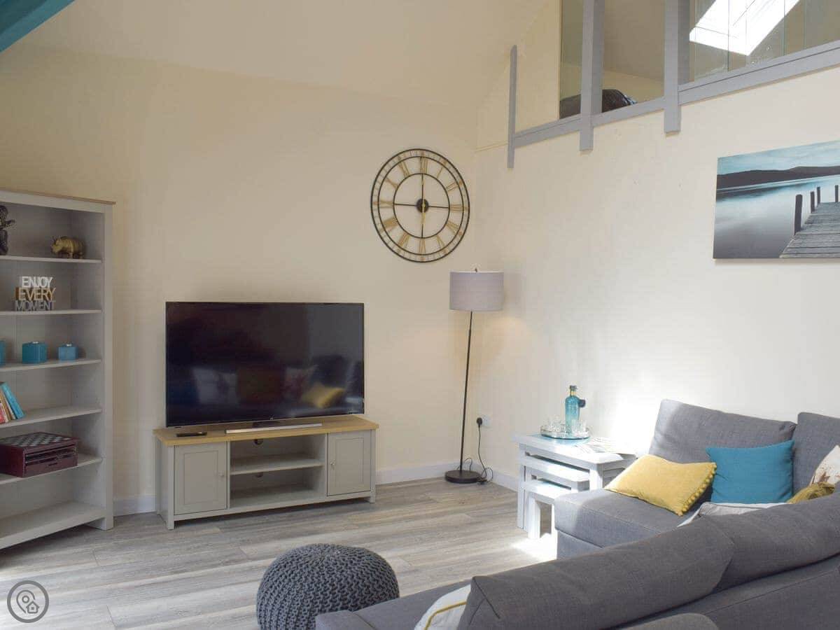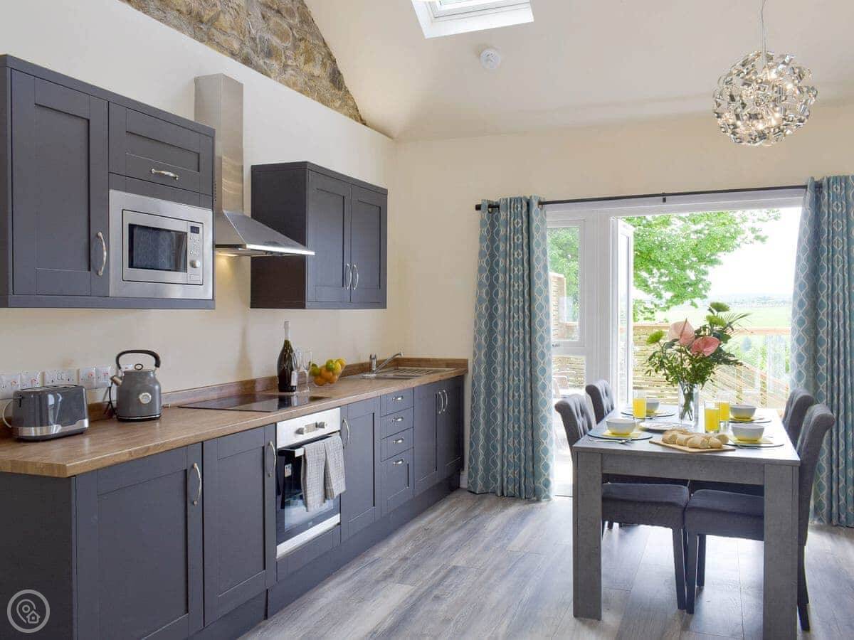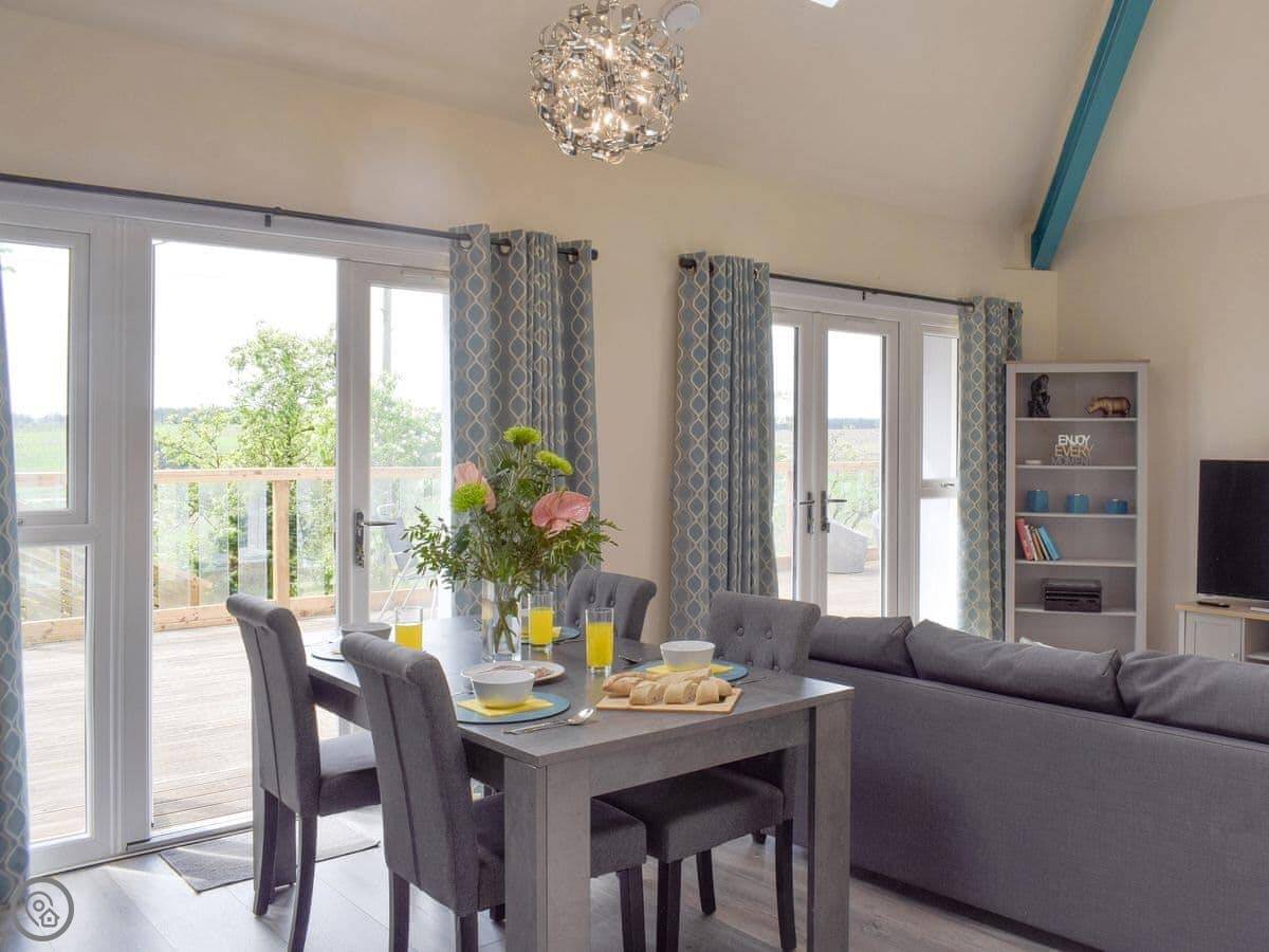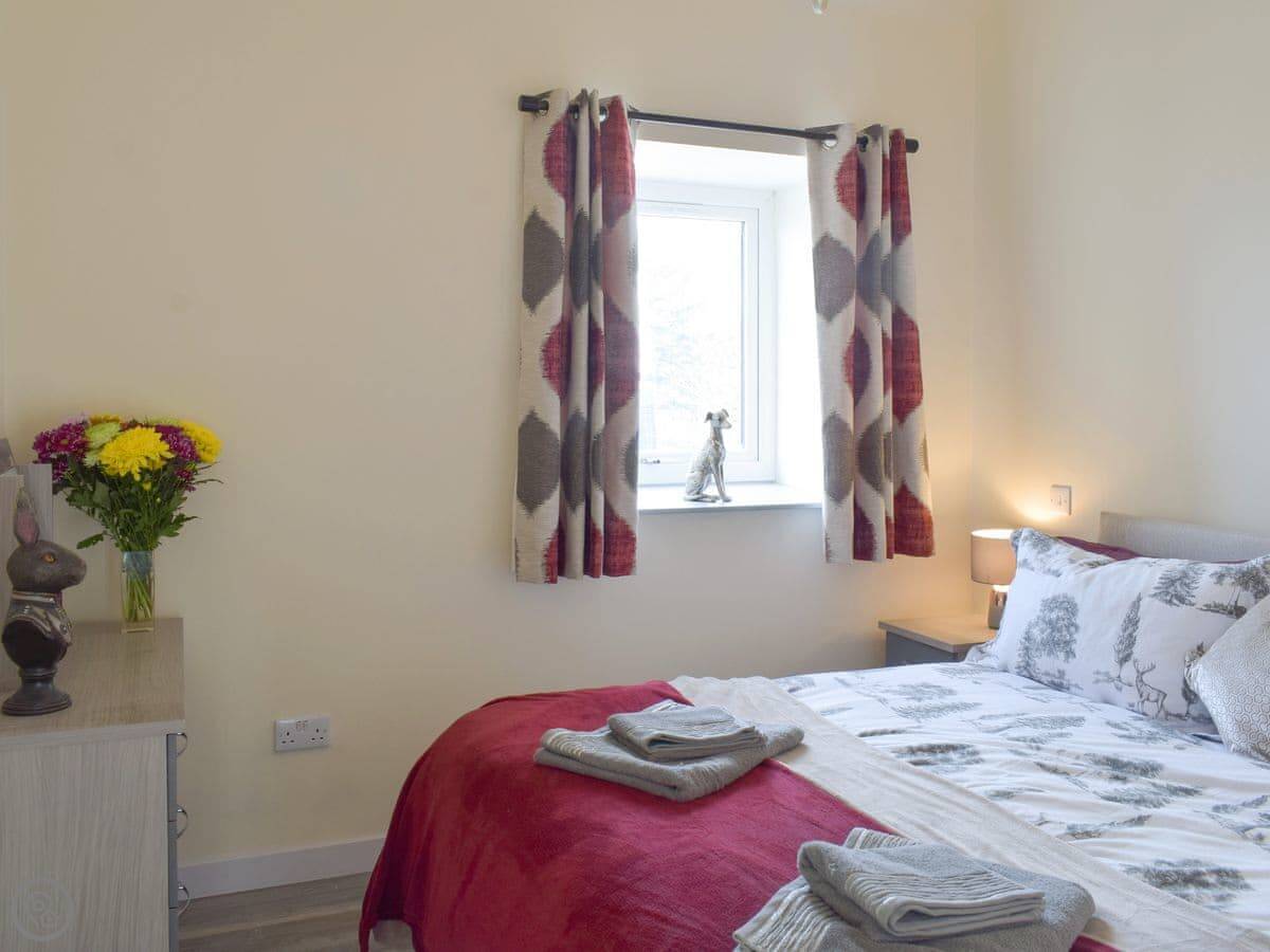 Facilities: It has parking, a patio, WiFi, a TV. Bedding and towels are included. There's a washing machine. It's wheelchair accessible and has a wet room. There's a cot and highchair if you need them. You can bring up to two dogs.