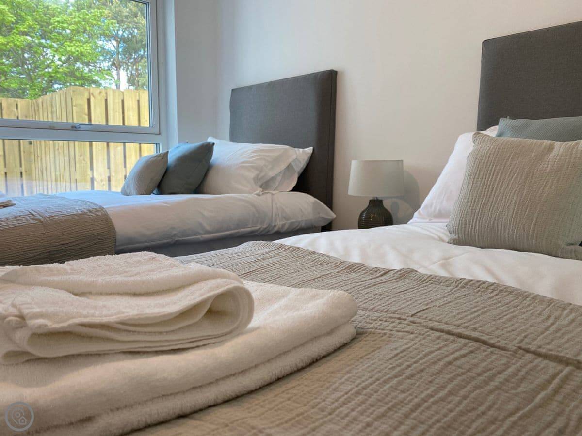 Foreman’s Green, a newly built property in the historic town of Musselburgh, located on the southern edge of Edinburgh is a fabulous luxury "Home Away From Home" which is ideal for groups and families. The ground floor accommodation sleeps up to six people and is one of two self-contained properties on the site, which can be booked on an individual basis or together as part of a larger group gathering. The property is situated next to Musselburgh Golf Links, one of the world’s oldest courses dating back to 1567 where Mary Queen of Scots is believed to have played. Further in the distance Musselburgh’s famous horse racing course can also be seen. With an excellent local bus service and train station just a 15 minute walk away providing guests easy access into Edinburgh city centre. The space is is bright and spacious and as mentioned, presented and equipped to a high luxury standard with a number of beautiful design touches, artefacts and paintings to further enhance your stay. There are three generously-sized and beautifully decorated bedrooms. The large master bedroom features a walk-in cupboard and its own en-suite bath and shower room. The two additional bedrooms come with twin beds which can be joined as double beds and generous closet space. There is a further luxury shower room located in the property’s hallway. Living, dining and entertaining will be pleasurable. Branded appliances give a sense of reliability and quality and if you prefer, the plethora of pubs and restaurants nearby will suit anyone’s taste. The Wi-Fi is accessible throughout the property and free parking is available on site in the driveway or in the adjacent street. Formans Green and Formans Lodge can be booked together to accommodate upto 16 guests.