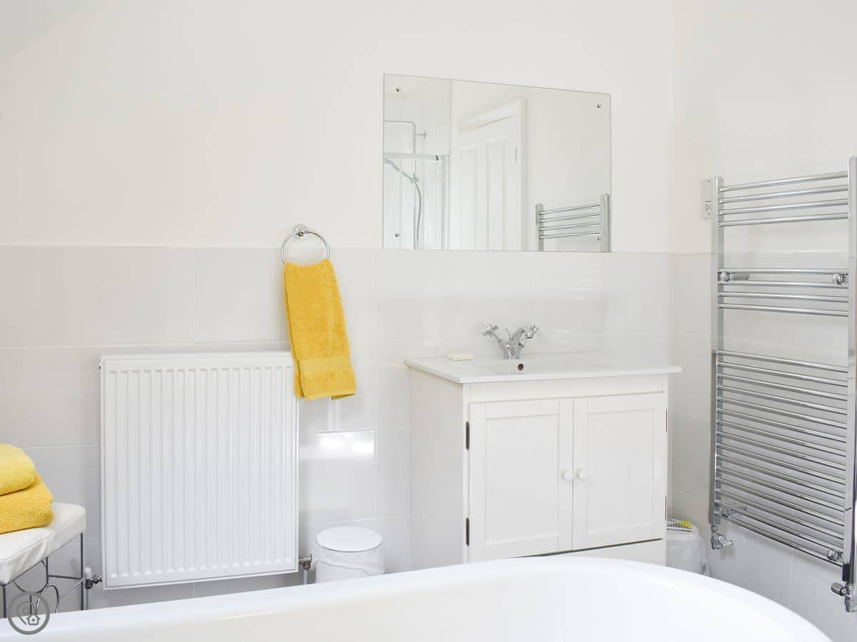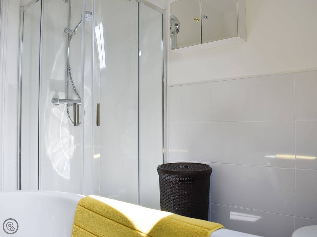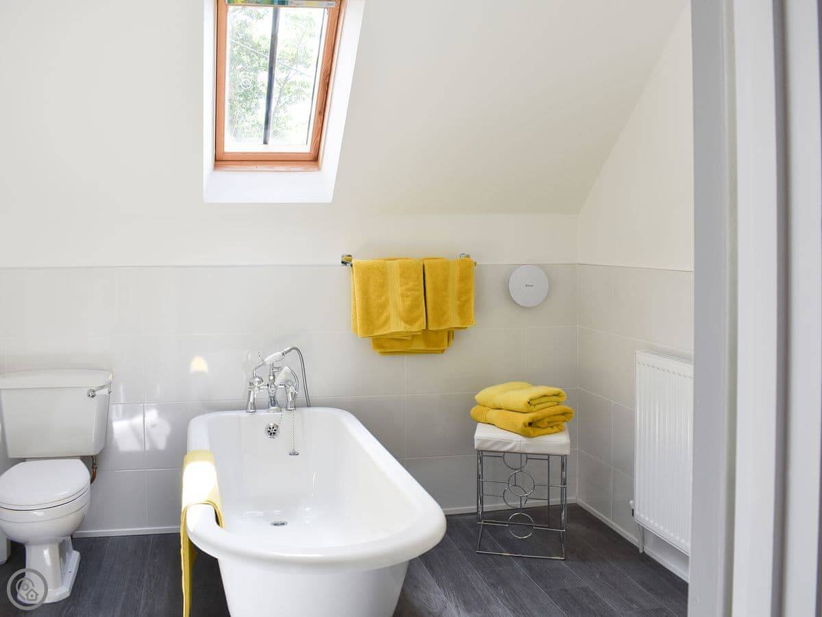 Set within the grounds of the owner’s home, this spacious semi-detached annexe has been finished to a high standard. A large living/dining room is accessed from the hallway. With large L-shaped leather sofa and Smart TV. The shaker style kitchen is well equipped with all your modern appliances, complete with breakfast bar and stools, there is also a separate toilet. A large master bedroom with pitched roof and Velux window and kingsize bed, it includes a small dressing room just off the main room with a single bed suitable as a flexible sleeping for a child. There is a stylish bathroom with freestanding roll-top bath and separate power shower finish off the first floor accommodation.
