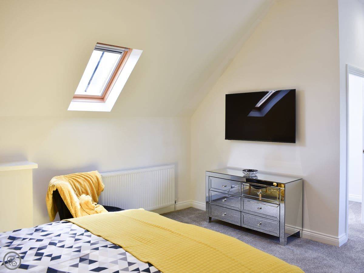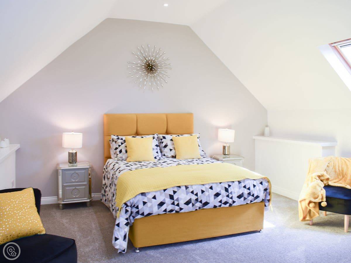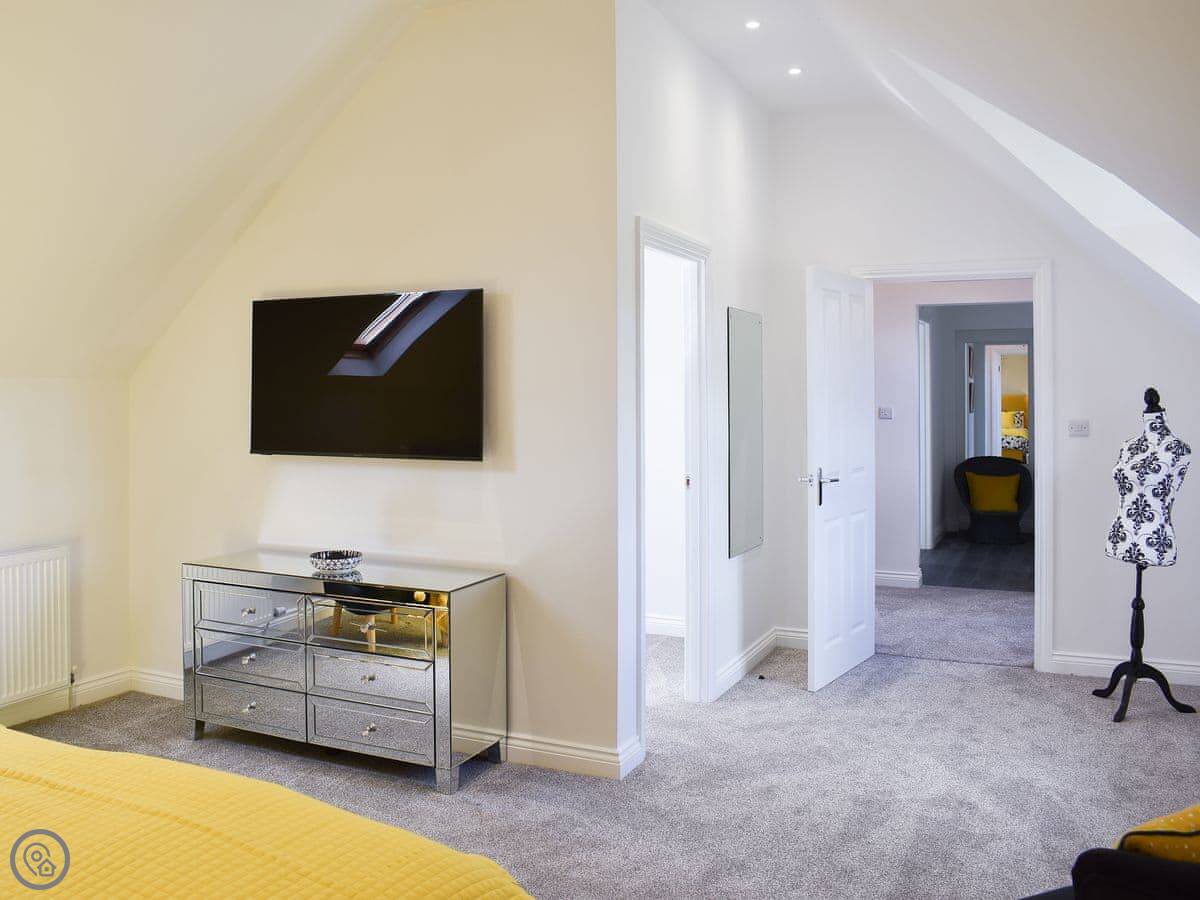 Set within the grounds of the owner’s home, this spacious semi-detached annexe has been finished to a high standard. A large living/dining room is accessed from the hallway. With large L-shaped leather sofa and Smart TV. The shaker style kitchen is well equipped with all your modern appliances, complete with breakfast bar and stools, there is also a separate toilet. A large master bedroom with pitched roof and Velux window and kingsize bed, it includes a small dressing room just off the main room with a single bed suitable as a flexible sleeping for a child. There is a stylish bathroom with freestanding roll-top bath and separate power shower finish off the first floor accommodation.