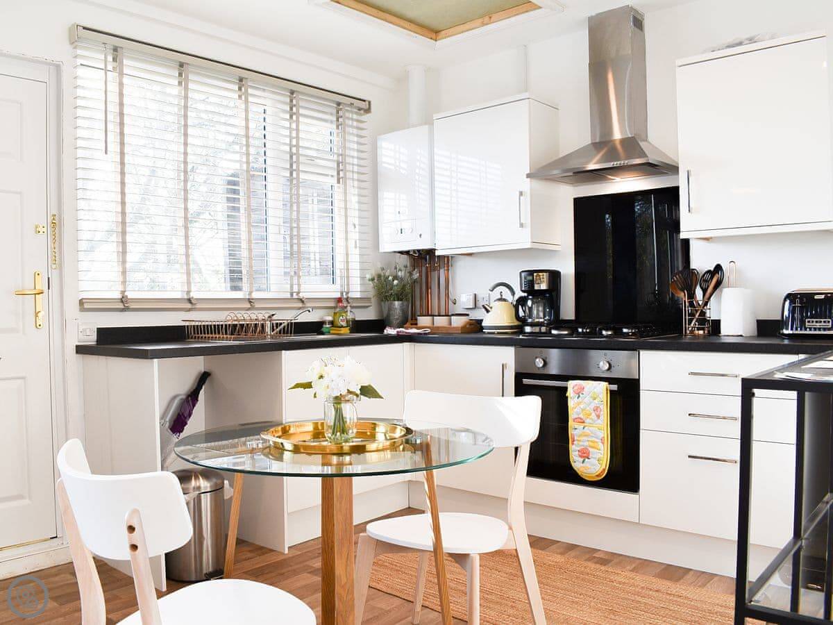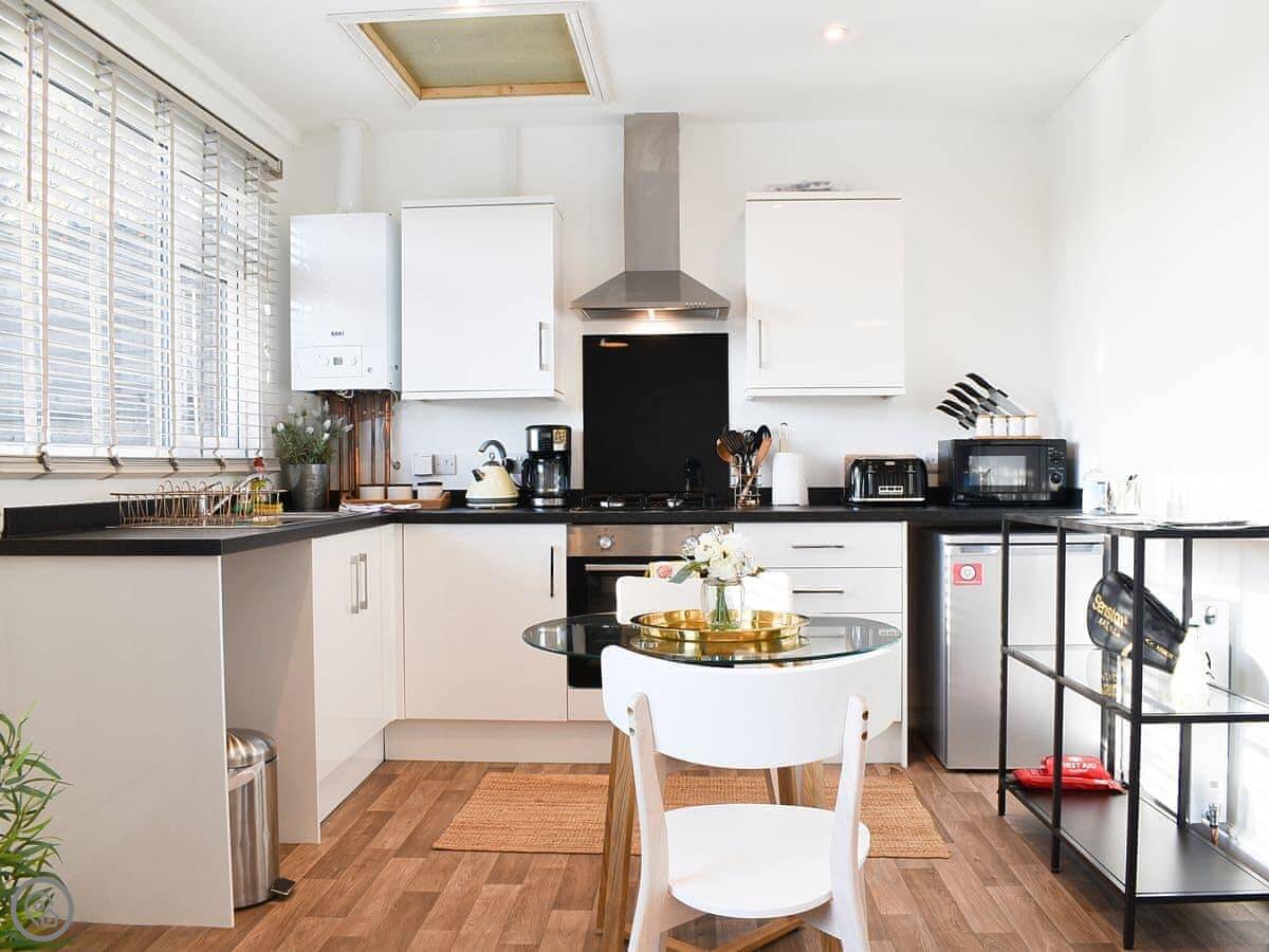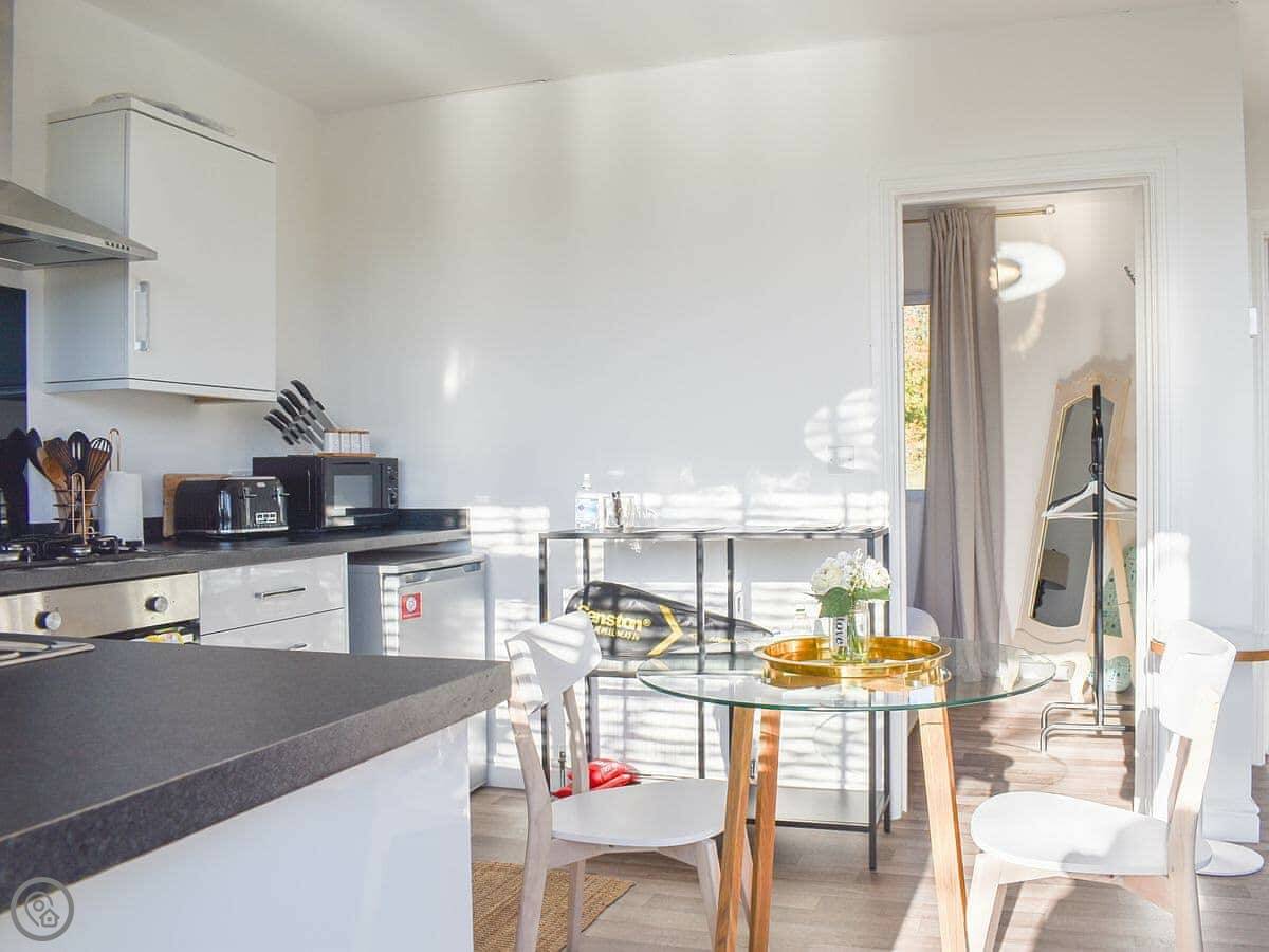 For facilities, you've got a dishwasher, a TV, WiFi, and parking right next to the hut. Bedding and towels are included. There's a cot and a highchair if you need them, but strictly no pets.