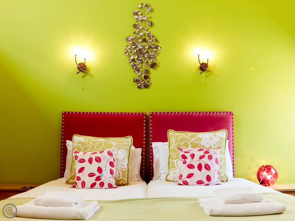 It sleeps four, in two bedrooms. Both bedrooms are kingsize and both have their own bathrooms. That's handy. The beds can be split into twins if you need that. It's got a 4 Star rating.