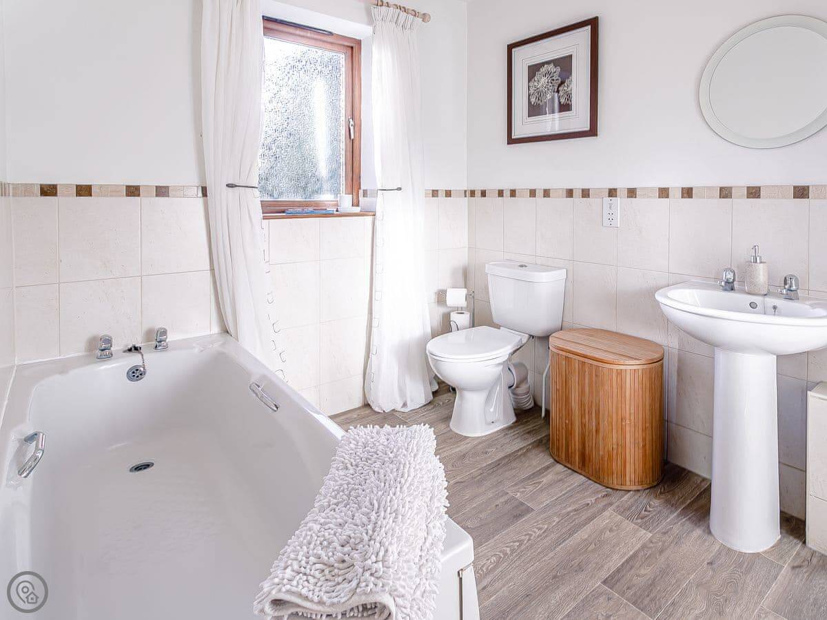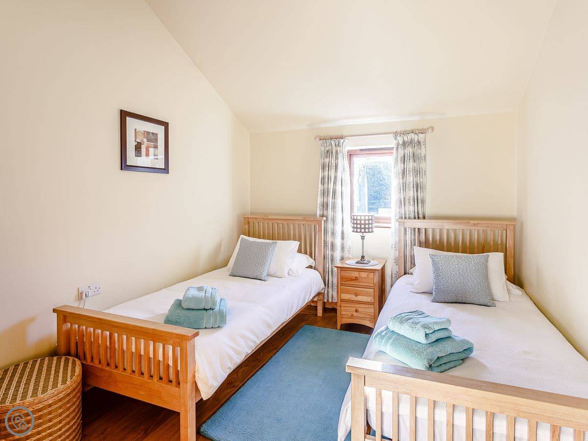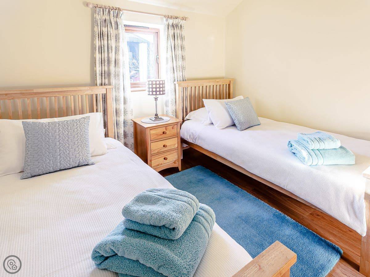 It’s all on the ground floor. Sleeps four in two bedrooms. There's one bathroom with a shower. It’s got a 4 Star rating, so it’s comfortable and well-equipped. Because it’s all on one level and the entrance is level too, it suits people who find stairs difficult. The garden is enclosed, so it's secure for dogs or kids.