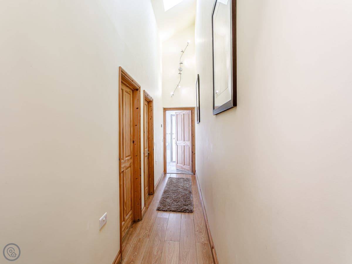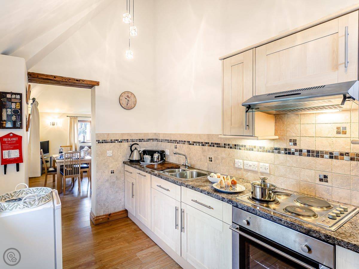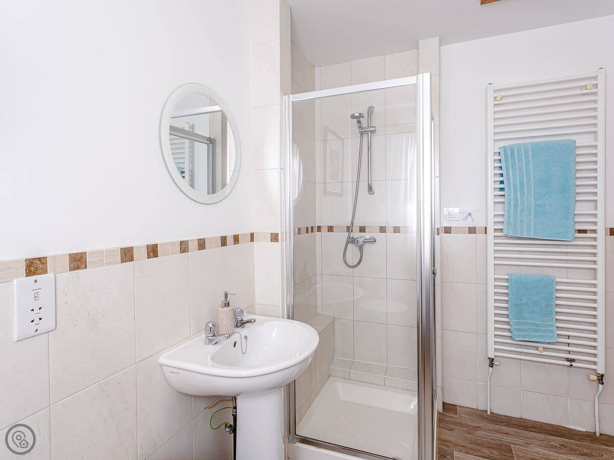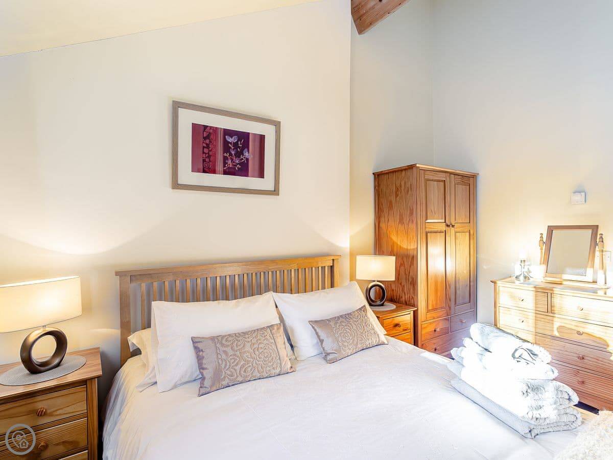 It’s all on the ground floor. Sleeps four in two bedrooms. There's one bathroom with a shower. It’s got a 4 Star rating, so it’s comfortable and well-equipped. Because it’s all on one level and the entrance is level too, it suits people who find stairs difficult. The garden is enclosed, so it's secure for dogs or kids.