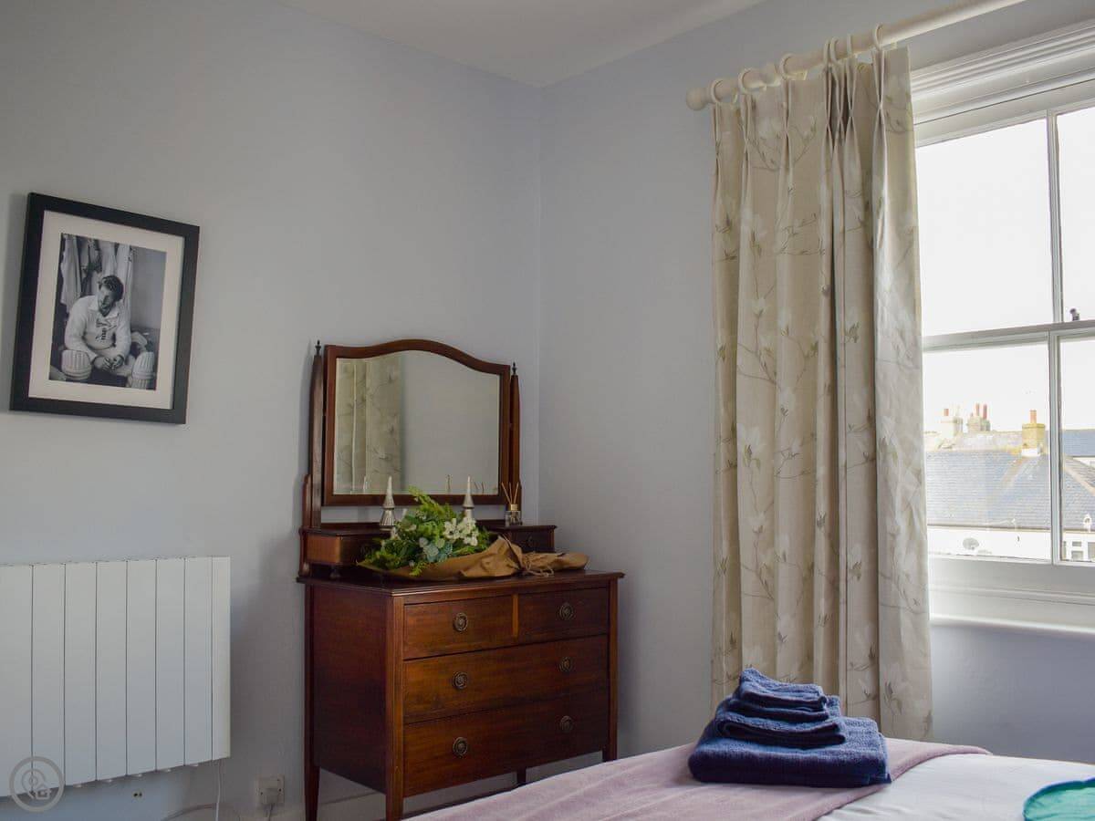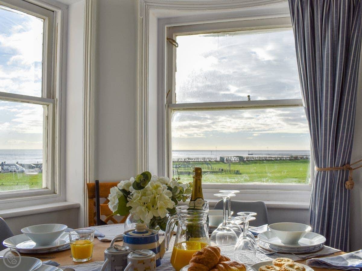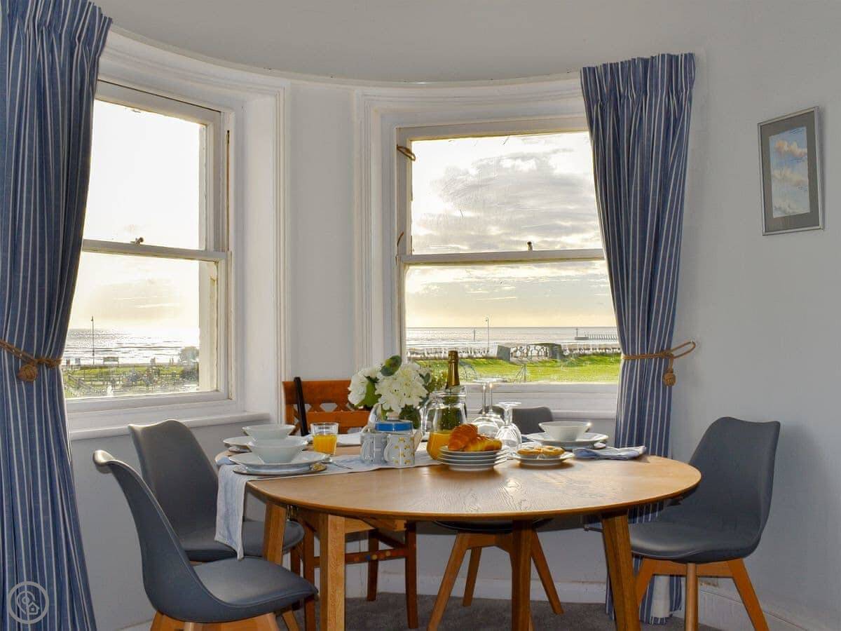 Guillemots is a seafront apartment on the first floor of an old Georgian house in Littlehampton. It looks straight out over the beach. The beach is sandy and it's about a minute's walk from the door.