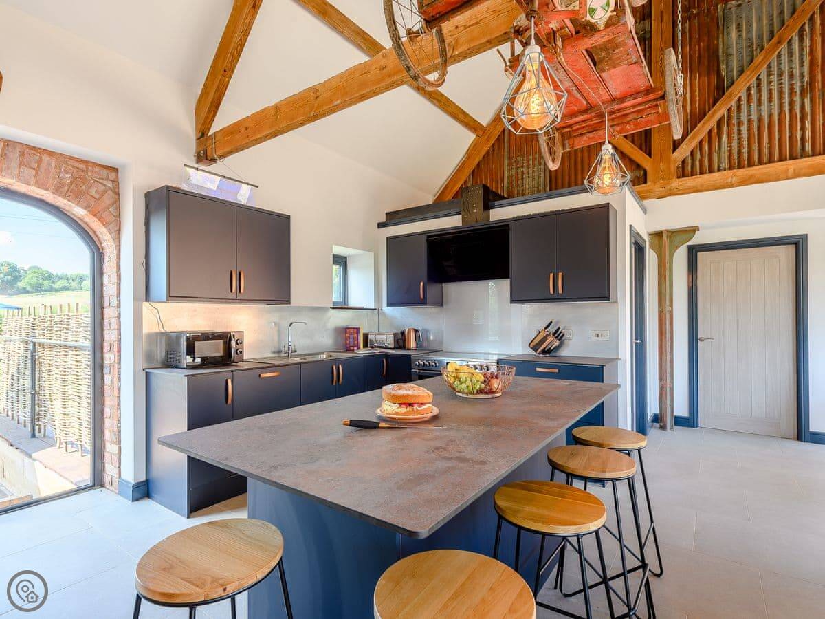 The Red Lion pub is a five minute walk from the barn. The Leaf café is about three minutes. For a bigger shop, Gloucester is about twenty minutes away by car.
